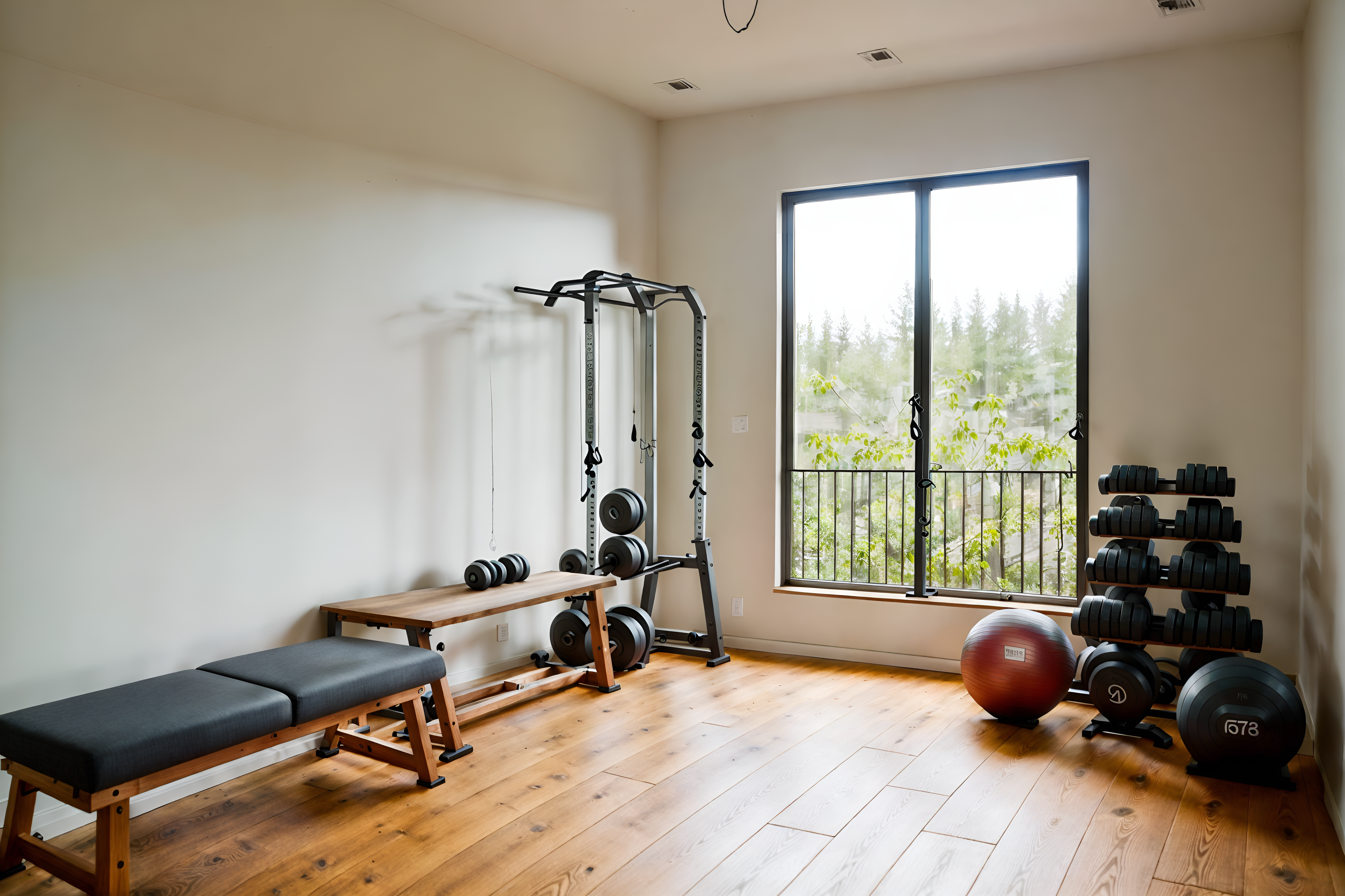 photo from pinterest of airbnb-style interior designed (fitness gym interior) with squat rack and dumbbell stand and crosstrainer and bench press and exercise bicycle and squat rack. . with natural materials and elements and simple color palette and neutral walls and textures and open and natural lighting and scandinavian style and simple, clean lines and simplistic furniture and practicality and functionality and natural materials and elements. . cinematic photo, highly detailed, cinematic lighting, ultra-detailed, ultrarealistic, photorealism, 8k. trending on pinterest. airbnb interior design style. masterpiece, cinematic light, ultrarealistic+, photorealistic+, 8k, raw photo, realistic, sharp focus on eyes, (symmetrical eyes), (intact eyes), hyperrealistic, highest quality, best quality, , highly detailed, masterpiece, best quality, extremely detailed 8k wallpaper, masterpiece, best quality, ultra-detailed, best shadow, detailed background, detailed face, detailed eyes, high contrast, best illumination, detailed face, dulux, caustic, dynamic angle, detailed glow. dramatic lighting. highly detailed, insanely detailed hair, symmetrical, intricate details, professionally retouched, 8k high definition. strong bokeh. award winning photo.