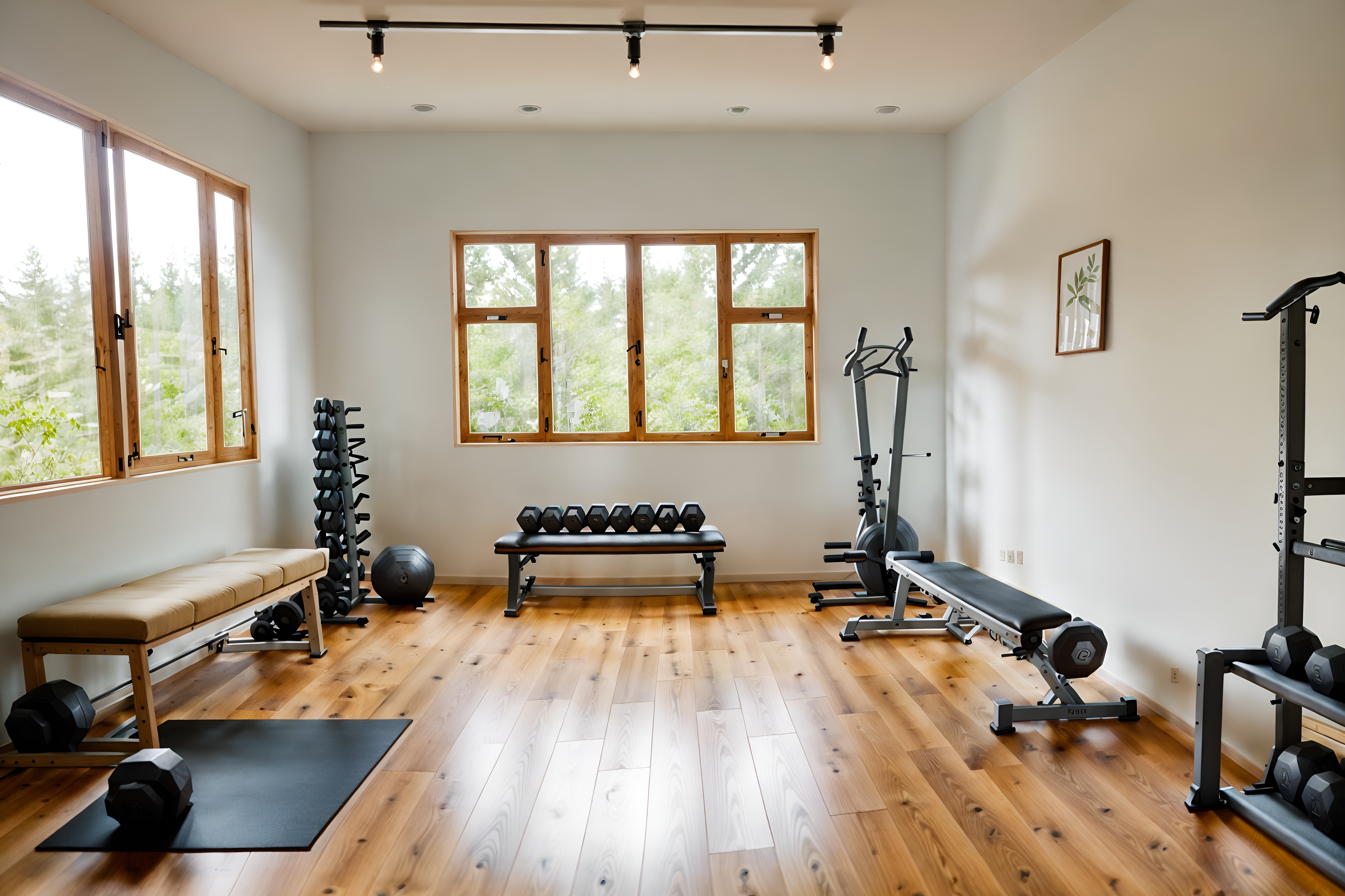 photo from pinterest of airbnb-style interior designed (fitness gym interior) with squat rack and dumbbell stand and crosstrainer and bench press and exercise bicycle and squat rack. . with natural materials and elements and simple color palette and neutral walls and textures and open and natural lighting and scandinavian style and simple, clean lines and simplistic furniture and practicality and functionality and natural materials and elements. . cinematic photo, highly detailed, cinematic lighting, ultra-detailed, ultrarealistic, photorealism, 8k. trending on pinterest. airbnb interior design style. masterpiece, cinematic light, ultrarealistic+, photorealistic+, 8k, raw photo, realistic, sharp focus on eyes, (symmetrical eyes), (intact eyes), hyperrealistic, highest quality, best quality, , highly detailed, masterpiece, best quality, extremely detailed 8k wallpaper, masterpiece, best quality, ultra-detailed, best shadow, detailed background, detailed face, detailed eyes, high contrast, best illumination, detailed face, dulux, caustic, dynamic angle, detailed glow. dramatic lighting. highly detailed, insanely detailed hair, symmetrical, intricate details, professionally retouched, 8k high definition. strong bokeh. award winning photo.