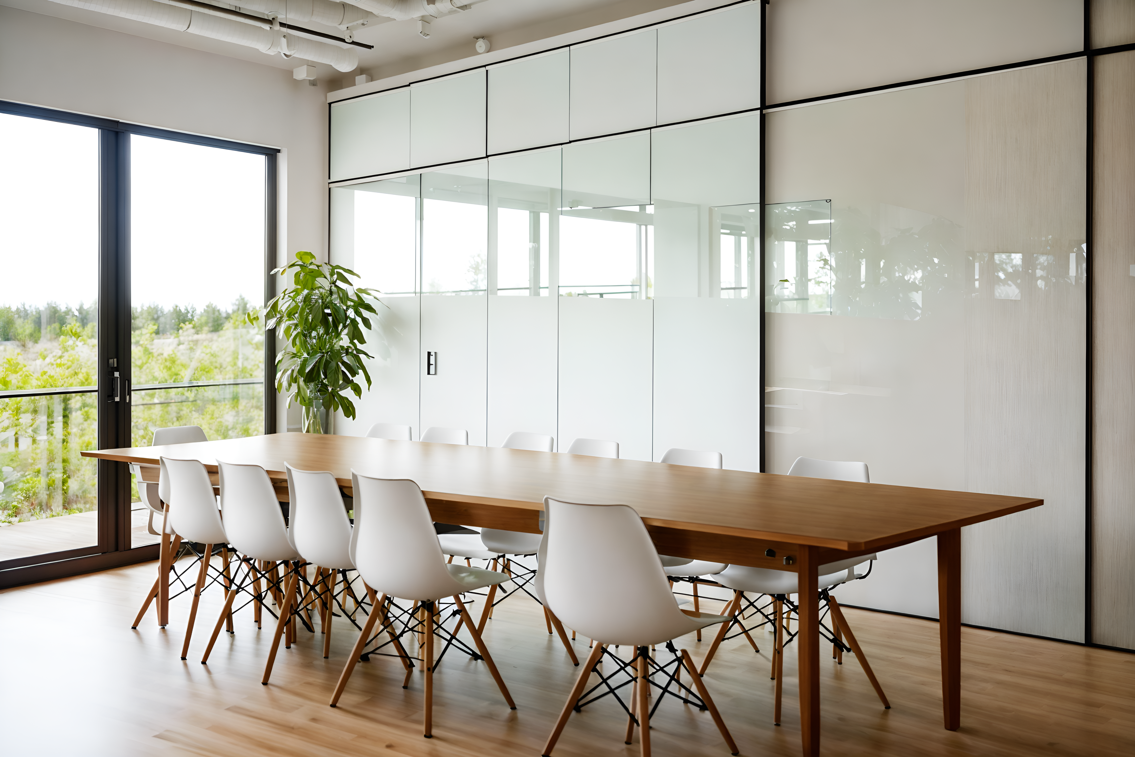 photo from pinterest of airbnb-style interior designed (meeting room interior) with glass walls and cabinets and plant and office chairs and glass doors and boardroom table and painting or photo on wall and vase. . with natural materials and elements and simple, clean lines and simplistic furniture and scandinavian style and open and natural lighting and neutral walls and textures and practicality and functionality and simple color palette and natural materials and elements. . cinematic photo, highly detailed, cinematic lighting, ultra-detailed, ultrarealistic, photorealism, 8k. trending on pinterest. airbnb interior design style. masterpiece, cinematic light, ultrarealistic+, photorealistic+, 8k, raw photo, realistic, sharp focus on eyes, (symmetrical eyes), (intact eyes), hyperrealistic, highest quality, best quality, , highly detailed, masterpiece, best quality, extremely detailed 8k wallpaper, masterpiece, best quality, ultra-detailed, best shadow, detailed background, detailed face, detailed eyes, high contrast, best illumination, detailed face, dulux, caustic, dynamic angle, detailed glow. dramatic lighting. highly detailed, insanely detailed hair, symmetrical, intricate details, professionally retouched, 8k high definition. strong bokeh. award winning photo.