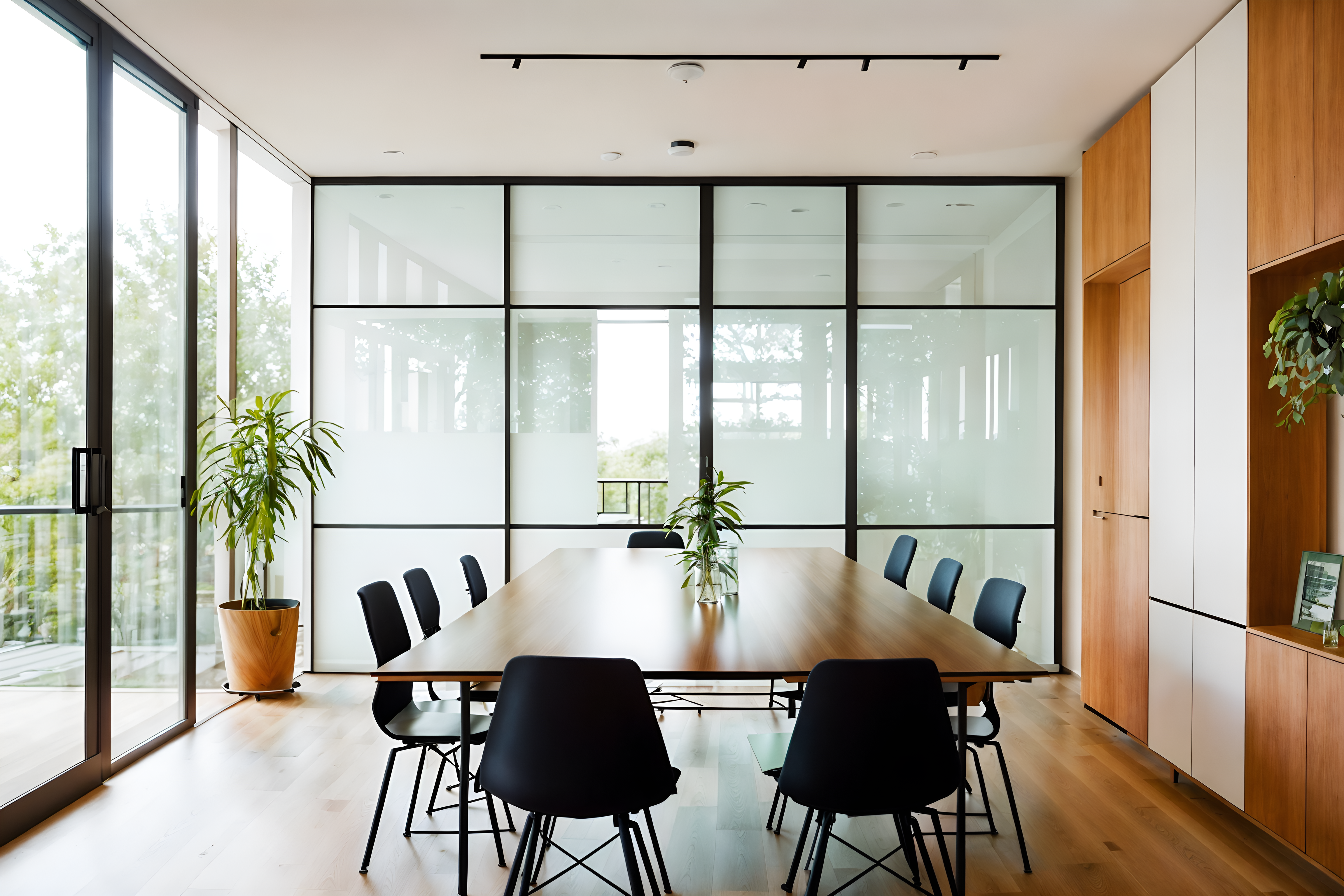 photo from pinterest of airbnb-style interior designed (meeting room interior) with glass walls and cabinets and plant and office chairs and glass doors and boardroom table and painting or photo on wall and vase. . with natural materials and elements and simple, clean lines and simplistic furniture and scandinavian style and open and natural lighting and neutral walls and textures and practicality and functionality and simple color palette and natural materials and elements. . cinematic photo, highly detailed, cinematic lighting, ultra-detailed, ultrarealistic, photorealism, 8k. trending on pinterest. airbnb interior design style. masterpiece, cinematic light, ultrarealistic+, photorealistic+, 8k, raw photo, realistic, sharp focus on eyes, (symmetrical eyes), (intact eyes), hyperrealistic, highest quality, best quality, , highly detailed, masterpiece, best quality, extremely detailed 8k wallpaper, masterpiece, best quality, ultra-detailed, best shadow, detailed background, detailed face, detailed eyes, high contrast, best illumination, detailed face, dulux, caustic, dynamic angle, detailed glow. dramatic lighting. highly detailed, insanely detailed hair, symmetrical, intricate details, professionally retouched, 8k high definition. strong bokeh. award winning photo.