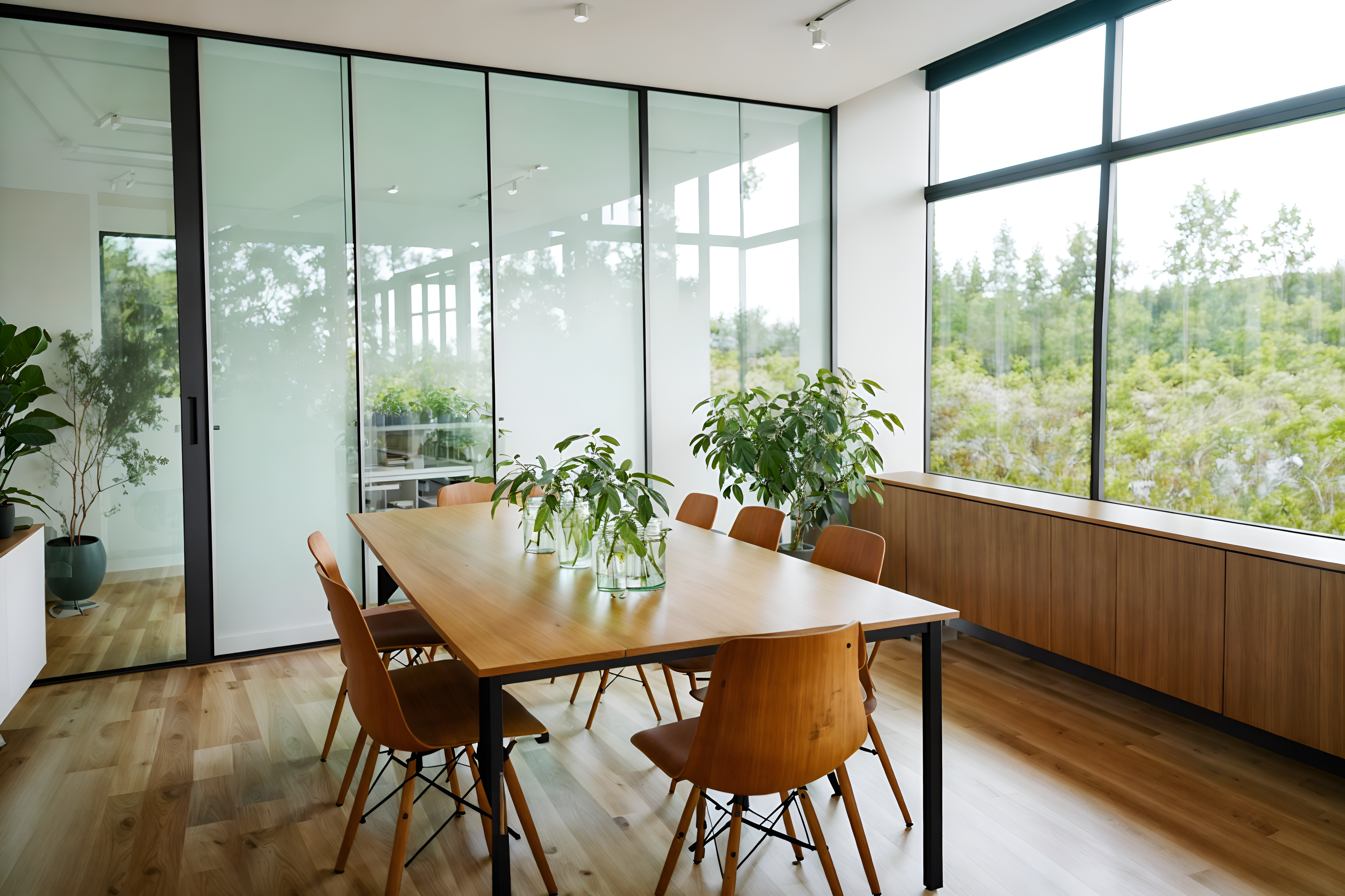 photo from pinterest of airbnb-style interior designed (meeting room interior) with glass walls and cabinets and plant and office chairs and glass doors and boardroom table and painting or photo on wall and vase. . with natural materials and elements and simple, clean lines and simplistic furniture and scandinavian style and open and natural lighting and neutral walls and textures and practicality and functionality and simple color palette and natural materials and elements. . cinematic photo, highly detailed, cinematic lighting, ultra-detailed, ultrarealistic, photorealism, 8k. trending on pinterest. airbnb interior design style. masterpiece, cinematic light, ultrarealistic+, photorealistic+, 8k, raw photo, realistic, sharp focus on eyes, (symmetrical eyes), (intact eyes), hyperrealistic, highest quality, best quality, , highly detailed, masterpiece, best quality, extremely detailed 8k wallpaper, masterpiece, best quality, ultra-detailed, best shadow, detailed background, detailed face, detailed eyes, high contrast, best illumination, detailed face, dulux, caustic, dynamic angle, detailed glow. dramatic lighting. highly detailed, insanely detailed hair, symmetrical, intricate details, professionally retouched, 8k high definition. strong bokeh. award winning photo.