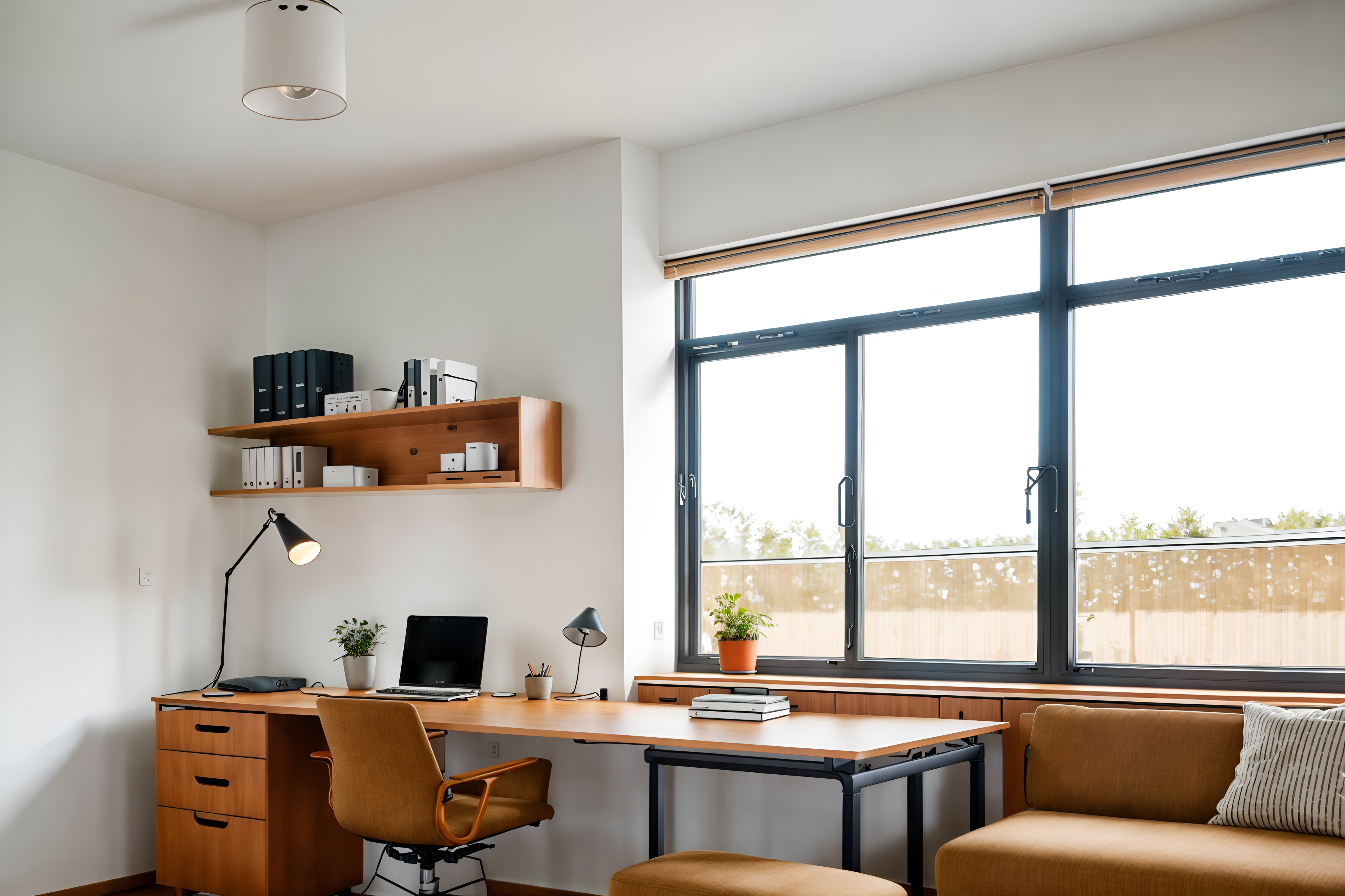 photo from pinterest of airbnb-style interior designed (office interior) with desk lamps and office chairs and office desks and windows and lounge chairs and seating area with sofa and cabinets and computer desks. . with simple color palette and open and natural lighting and neutral walls and textures and simple, clean lines and simplistic furniture and scandinavian style and natural materials and elements and practicality and functionality and simple color palette. . cinematic photo, highly detailed, cinematic lighting, ultra-detailed, ultrarealistic, photorealism, 8k. trending on pinterest. airbnb interior design style. masterpiece, cinematic light, ultrarealistic+, photorealistic+, 8k, raw photo, realistic, sharp focus on eyes, (symmetrical eyes), (intact eyes), hyperrealistic, highest quality, best quality, , highly detailed, masterpiece, best quality, extremely detailed 8k wallpaper, masterpiece, best quality, ultra-detailed, best shadow, detailed background, detailed face, detailed eyes, high contrast, best illumination, detailed face, dulux, caustic, dynamic angle, detailed glow. dramatic lighting. highly detailed, insanely detailed hair, symmetrical, intricate details, professionally retouched, 8k high definition. strong bokeh. award winning photo.