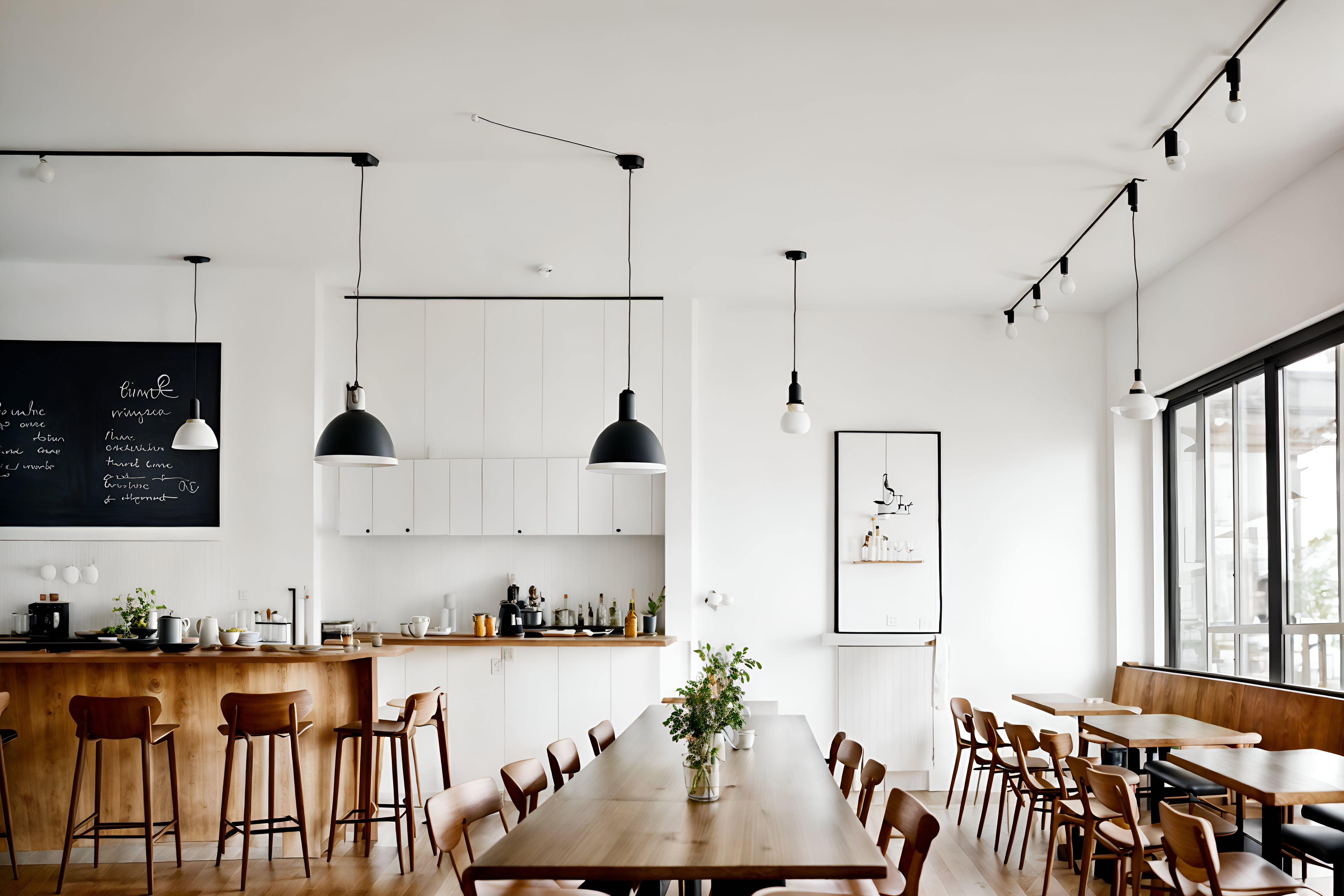 photo from pinterest of airbnb-style interior designed (restaurant interior) with restaurant bar and restaurant dining tables and restaurant chairs and restaurant decor and restaurant bar. . with simple, clean lines and simplistic furniture and simple color palette and practicality and functionality and open and natural lighting and scandinavian style and natural materials and elements and neutral walls and textures and simple, clean lines and simplistic furniture. . cinematic photo, highly detailed, cinematic lighting, ultra-detailed, ultrarealistic, photorealism, 8k. trending on pinterest. airbnb interior design style. masterpiece, cinematic light, ultrarealistic+, photorealistic+, 8k, raw photo, realistic, sharp focus on eyes, (symmetrical eyes), (intact eyes), hyperrealistic, highest quality, best quality, , highly detailed, masterpiece, best quality, extremely detailed 8k wallpaper, masterpiece, best quality, ultra-detailed, best shadow, detailed background, detailed face, detailed eyes, high contrast, best illumination, detailed face, dulux, caustic, dynamic angle, detailed glow. dramatic lighting. highly detailed, insanely detailed hair, symmetrical, intricate details, professionally retouched, 8k high definition. strong bokeh. award winning photo.