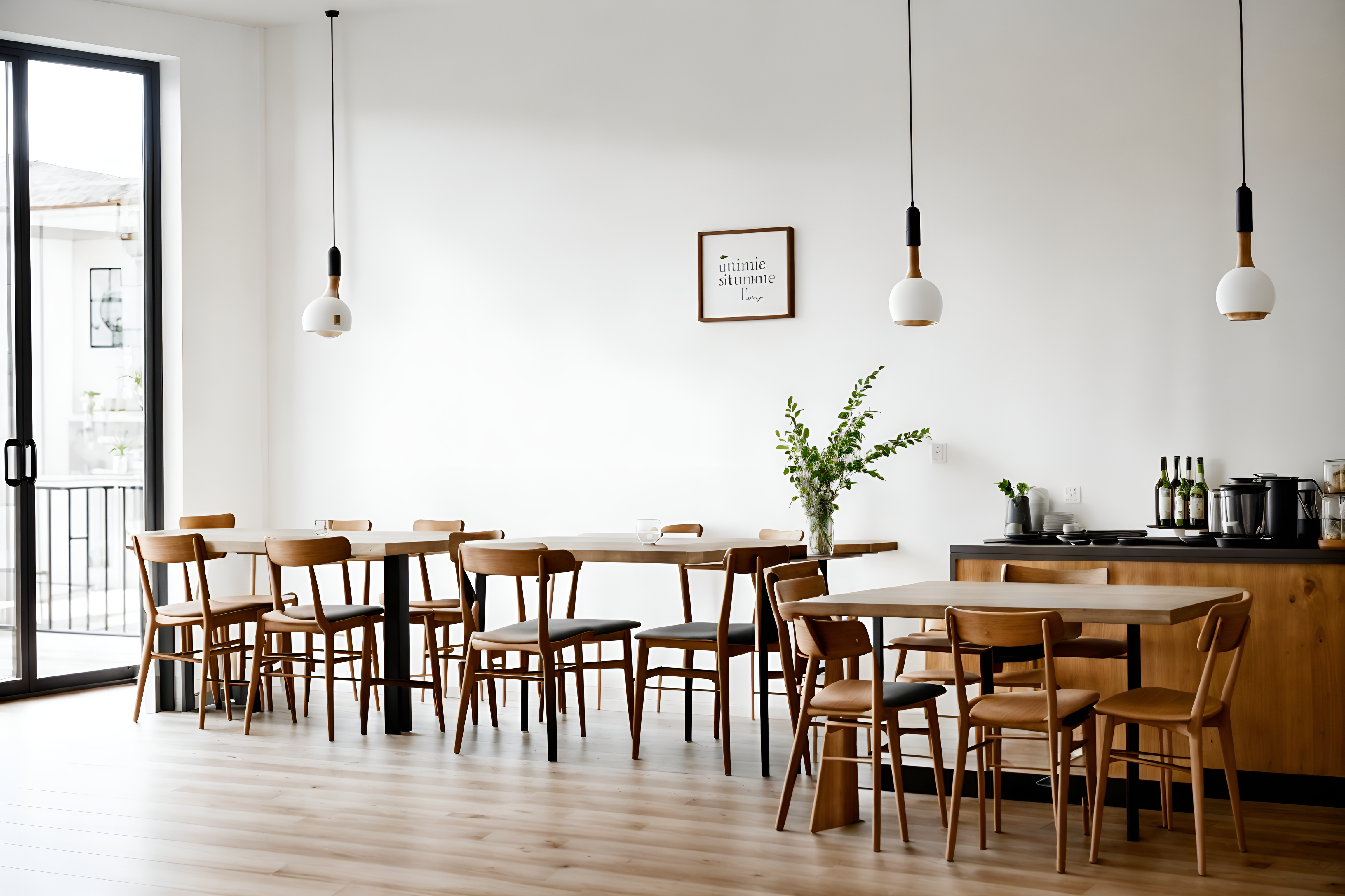 photo from pinterest of airbnb-style interior designed (restaurant interior) with restaurant bar and restaurant dining tables and restaurant chairs and restaurant decor and restaurant bar. . with simple, clean lines and simplistic furniture and simple color palette and practicality and functionality and open and natural lighting and scandinavian style and natural materials and elements and neutral walls and textures and simple, clean lines and simplistic furniture. . cinematic photo, highly detailed, cinematic lighting, ultra-detailed, ultrarealistic, photorealism, 8k. trending on pinterest. airbnb interior design style. masterpiece, cinematic light, ultrarealistic+, photorealistic+, 8k, raw photo, realistic, sharp focus on eyes, (symmetrical eyes), (intact eyes), hyperrealistic, highest quality, best quality, , highly detailed, masterpiece, best quality, extremely detailed 8k wallpaper, masterpiece, best quality, ultra-detailed, best shadow, detailed background, detailed face, detailed eyes, high contrast, best illumination, detailed face, dulux, caustic, dynamic angle, detailed glow. dramatic lighting. highly detailed, insanely detailed hair, symmetrical, intricate details, professionally retouched, 8k high definition. strong bokeh. award winning photo.
