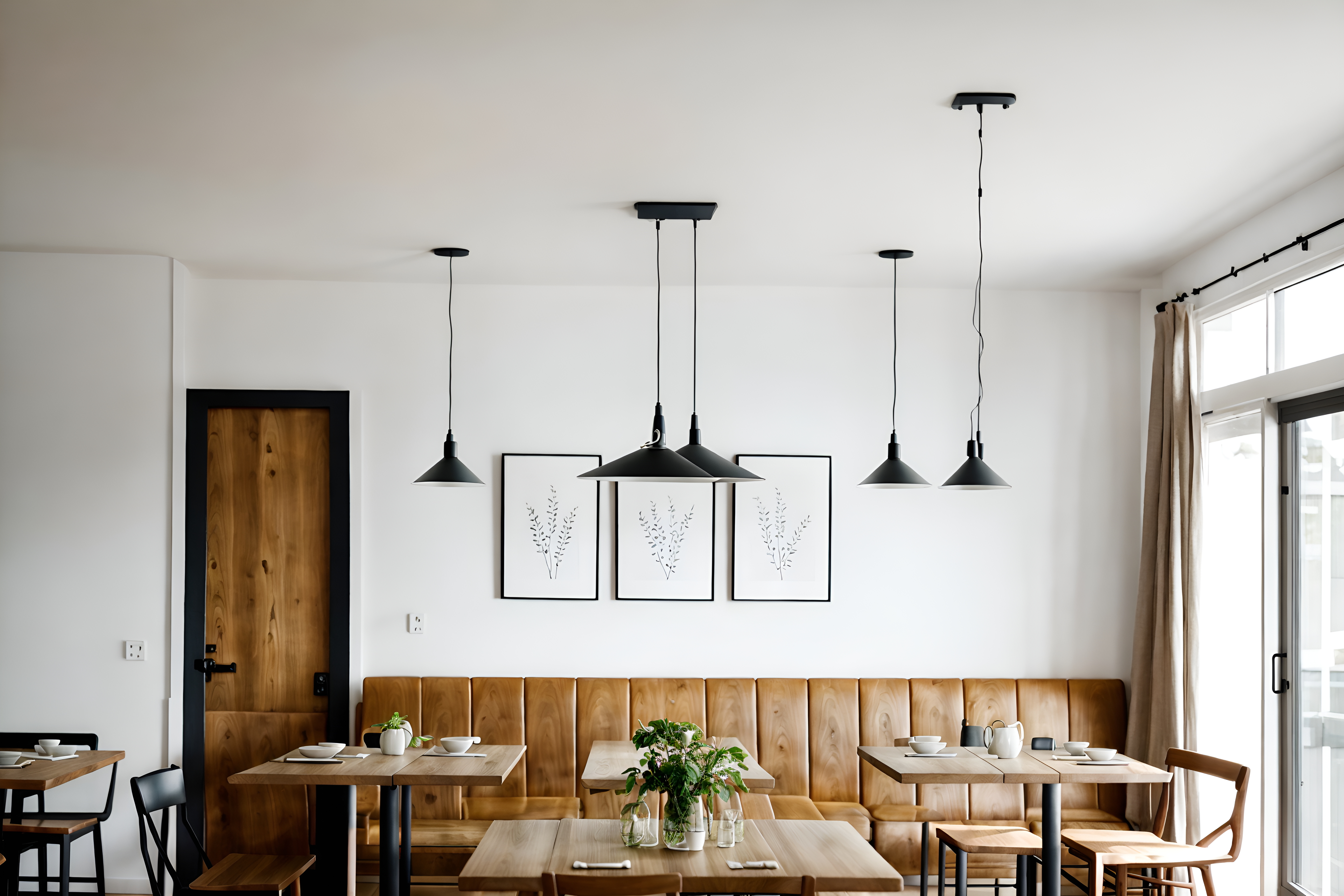 airbnb restaurantsinterior decorate this restaurant with airbnb style. . . with restaurant decor and restaurant bar and restaurant dining tables and restaurant chairs and restaurant decor. . with scandinavian style and simple color palette and neutral walls and textures and practicality and functionality and open and natural lighting and natural materials and elements and simple, clean lines and simplistic furniture and scandinavian style. . .