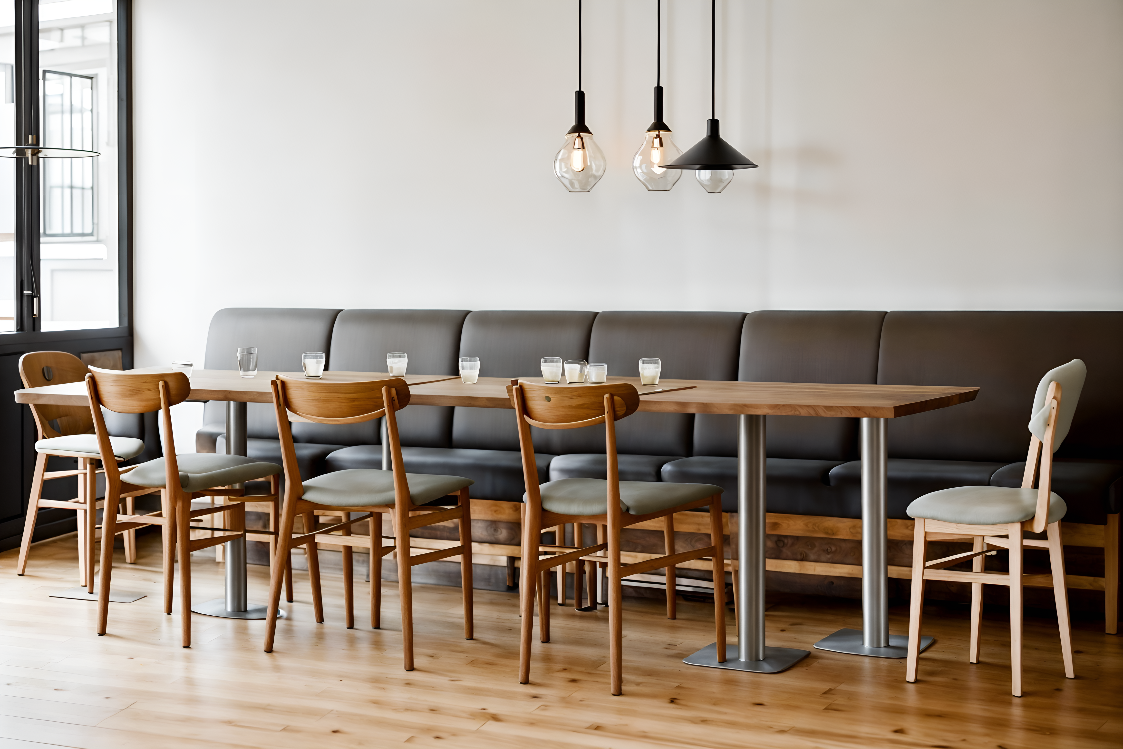 photo from pinterest of airbnb-style interior designed (restaurant interior) with restaurant bar and restaurant dining tables and restaurant chairs and restaurant decor and restaurant bar. . with simple, clean lines and simplistic furniture and simple color palette and practicality and functionality and open and natural lighting and scandinavian style and natural materials and elements and neutral walls and textures and simple, clean lines and simplistic furniture. . cinematic photo, highly detailed, cinematic lighting, ultra-detailed, ultrarealistic, photorealism, 8k. trending on pinterest. airbnb interior design style. masterpiece, cinematic light, ultrarealistic+, photorealistic+, 8k, raw photo, realistic, sharp focus on eyes, (symmetrical eyes), (intact eyes), hyperrealistic, highest quality, best quality, , highly detailed, masterpiece, best quality, extremely detailed 8k wallpaper, masterpiece, best quality, ultra-detailed, best shadow, detailed background, detailed face, detailed eyes, high contrast, best illumination, detailed face, dulux, caustic, dynamic angle, detailed glow. dramatic lighting. highly detailed, insanely detailed hair, symmetrical, intricate details, professionally retouched, 8k high definition. strong bokeh. award winning photo.