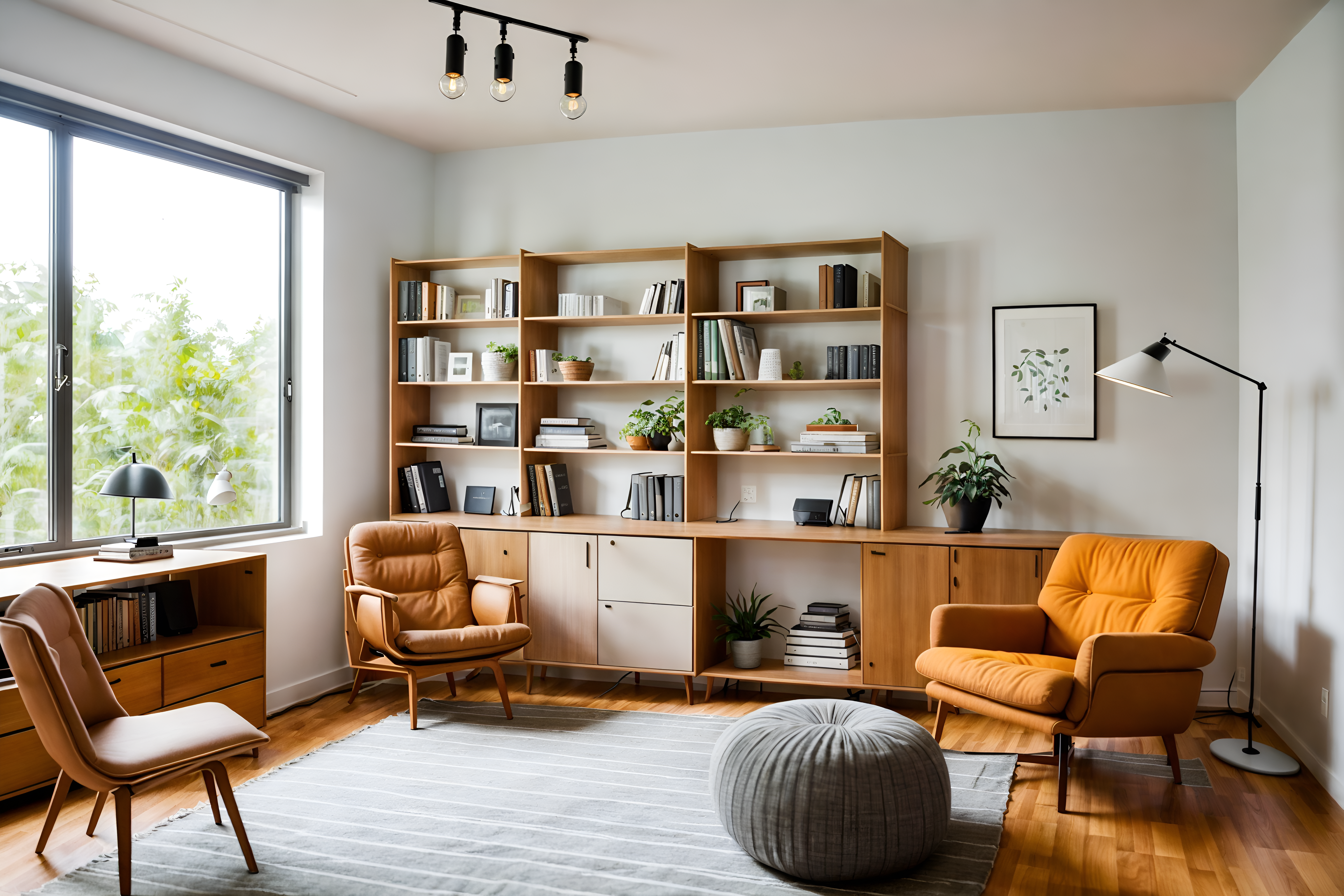 photo from pinterest of airbnb-style interior designed (study room interior) with bookshelves and desk lamp and lounge chair and plant and office chair and writing desk and cabinets and bookshelves. . with practicality and functionality and simple, clean lines and simplistic furniture and simple color palette and open and natural lighting and natural materials and elements and neutral walls and textures and scandinavian style and practicality and functionality. . cinematic photo, highly detailed, cinematic lighting, ultra-detailed, ultrarealistic, photorealism, 8k. trending on pinterest. airbnb interior design style. masterpiece, cinematic light, ultrarealistic+, photorealistic+, 8k, raw photo, realistic, sharp focus on eyes, (symmetrical eyes), (intact eyes), hyperrealistic, highest quality, best quality, , highly detailed, masterpiece, best quality, extremely detailed 8k wallpaper, masterpiece, best quality, ultra-detailed, best shadow, detailed background, detailed face, detailed eyes, high contrast, best illumination, detailed face, dulux, caustic, dynamic angle, detailed glow. dramatic lighting. highly detailed, insanely detailed hair, symmetrical, intricate details, professionally retouched, 8k high definition. strong bokeh. award winning photo.