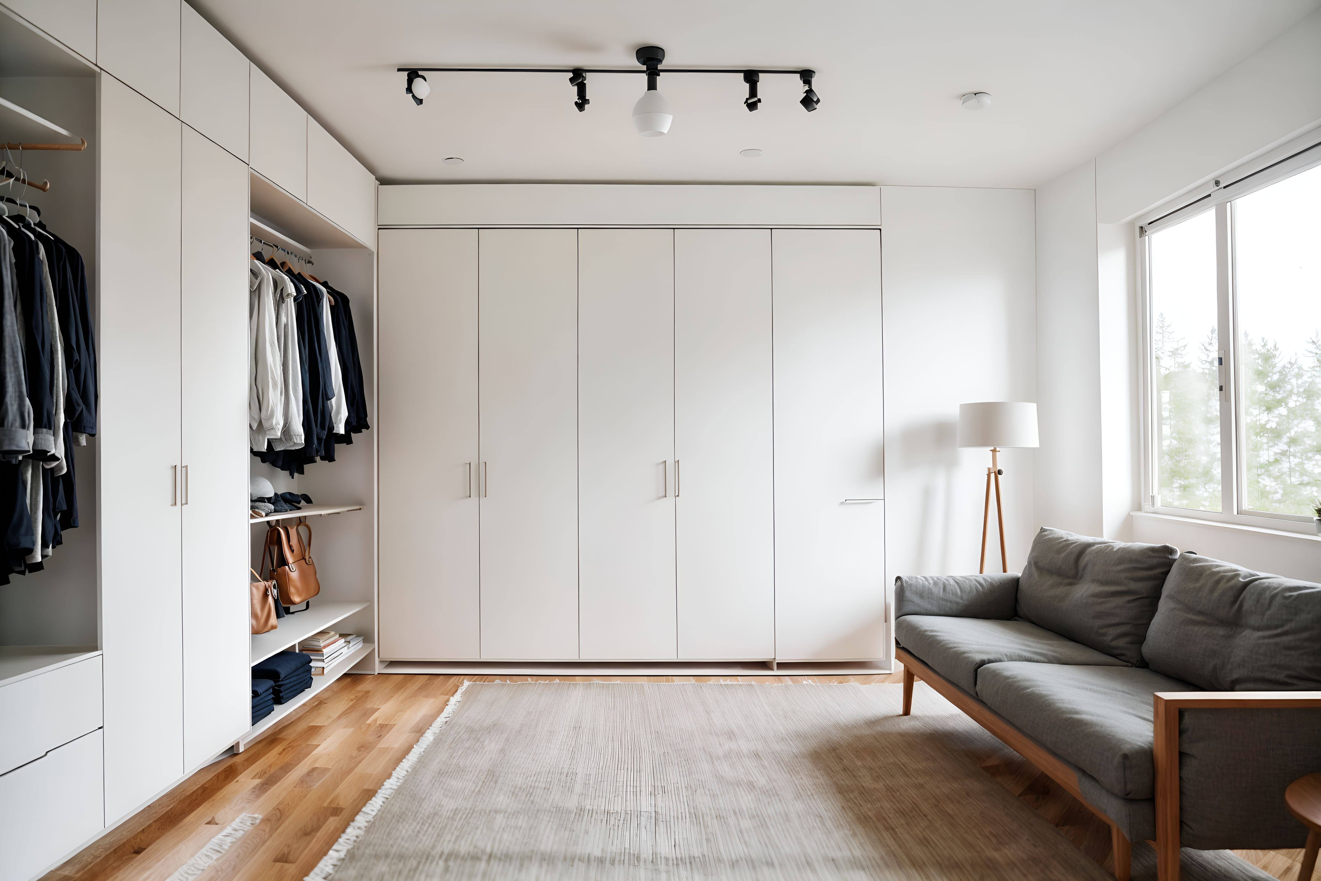 photo from pinterest of airbnb-style interior designed (walk in closet interior) . with practicality and functionality and simple color palette and open and natural lighting and scandinavian style and natural materials and elements and neutral walls and textures and simple, clean lines and simplistic furniture and practicality and functionality. . cinematic photo, highly detailed, cinematic lighting, ultra-detailed, ultrarealistic, photorealism, 8k. trending on pinterest. airbnb interior design style. masterpiece, cinematic light, ultrarealistic+, photorealistic+, 8k, raw photo, realistic, sharp focus on eyes, (symmetrical eyes), (intact eyes), hyperrealistic, highest quality, best quality, , highly detailed, masterpiece, best quality, extremely detailed 8k wallpaper, masterpiece, best quality, ultra-detailed, best shadow, detailed background, detailed face, detailed eyes, high contrast, best illumination, detailed face, dulux, caustic, dynamic angle, detailed glow. dramatic lighting. highly detailed, insanely detailed hair, symmetrical, intricate details, professionally retouched, 8k high definition. strong bokeh. award winning photo.