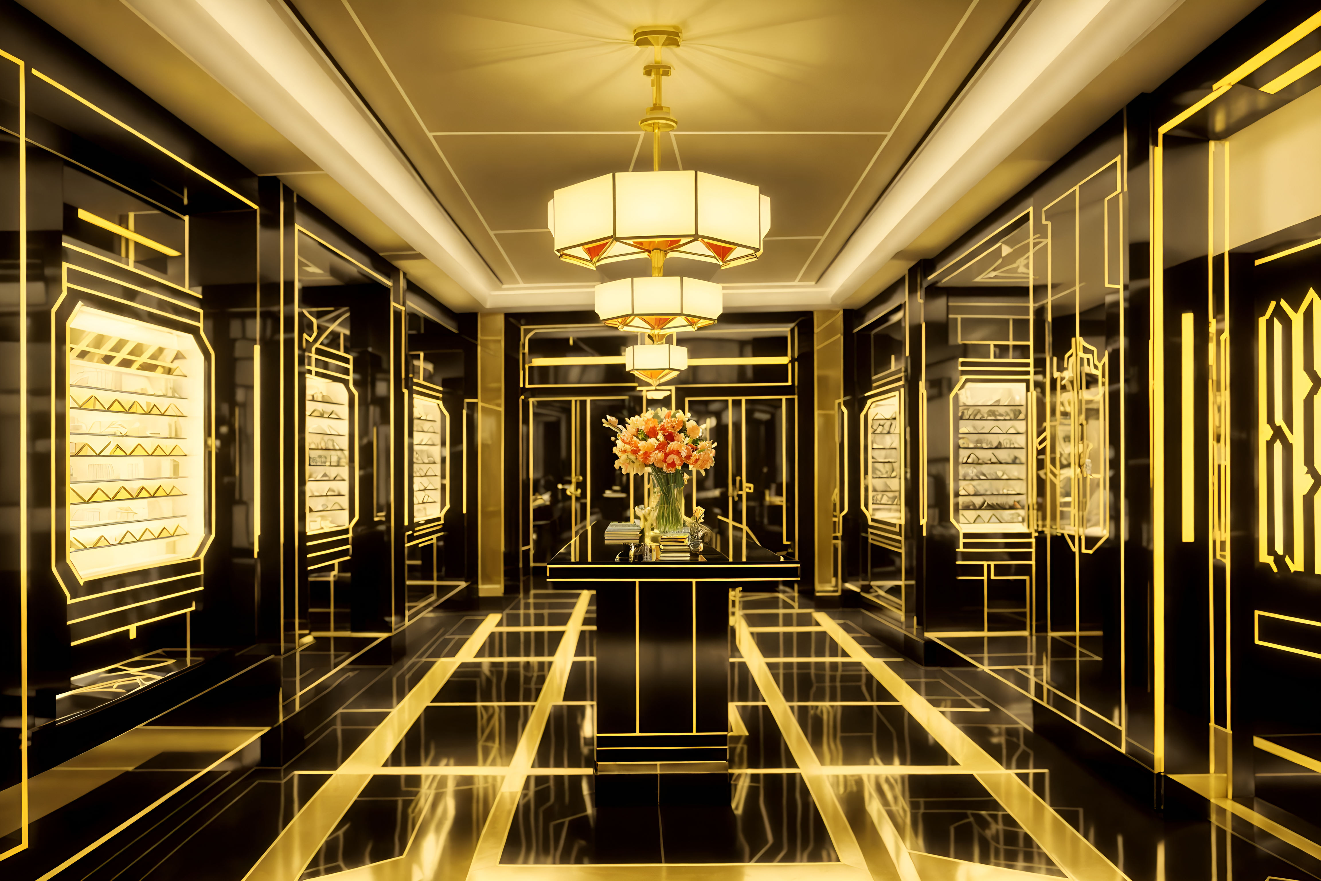 photo from pinterest of art deco-style interior designed (clothing store interior) . with angular shapes and rich colors and symmetrical designs and stream-lined forms and exuberant shapes and bright and cheerful colors and glamour and smooth lines. . cinematic photo, highly detailed, cinematic lighting, ultra-detailed, ultrarealistic, photorealism, 8k. trending on pinterest. art deco interior design style. masterpiece, cinematic light, ultrarealistic+, photorealistic+, 8k, raw photo, realistic, sharp focus on eyes, (symmetrical eyes), (intact eyes), hyperrealistic, highest quality, best quality, , highly detailed, masterpiece, best quality, extremely detailed 8k wallpaper, masterpiece, best quality, ultra-detailed, best shadow, detailed background, detailed face, detailed eyes, high contrast, best illumination, detailed face, dulux, caustic, dynamic angle, detailed glow. dramatic lighting. highly detailed, insanely detailed hair, symmetrical, intricate details, professionally retouched, 8k high definition. strong bokeh. award winning photo.