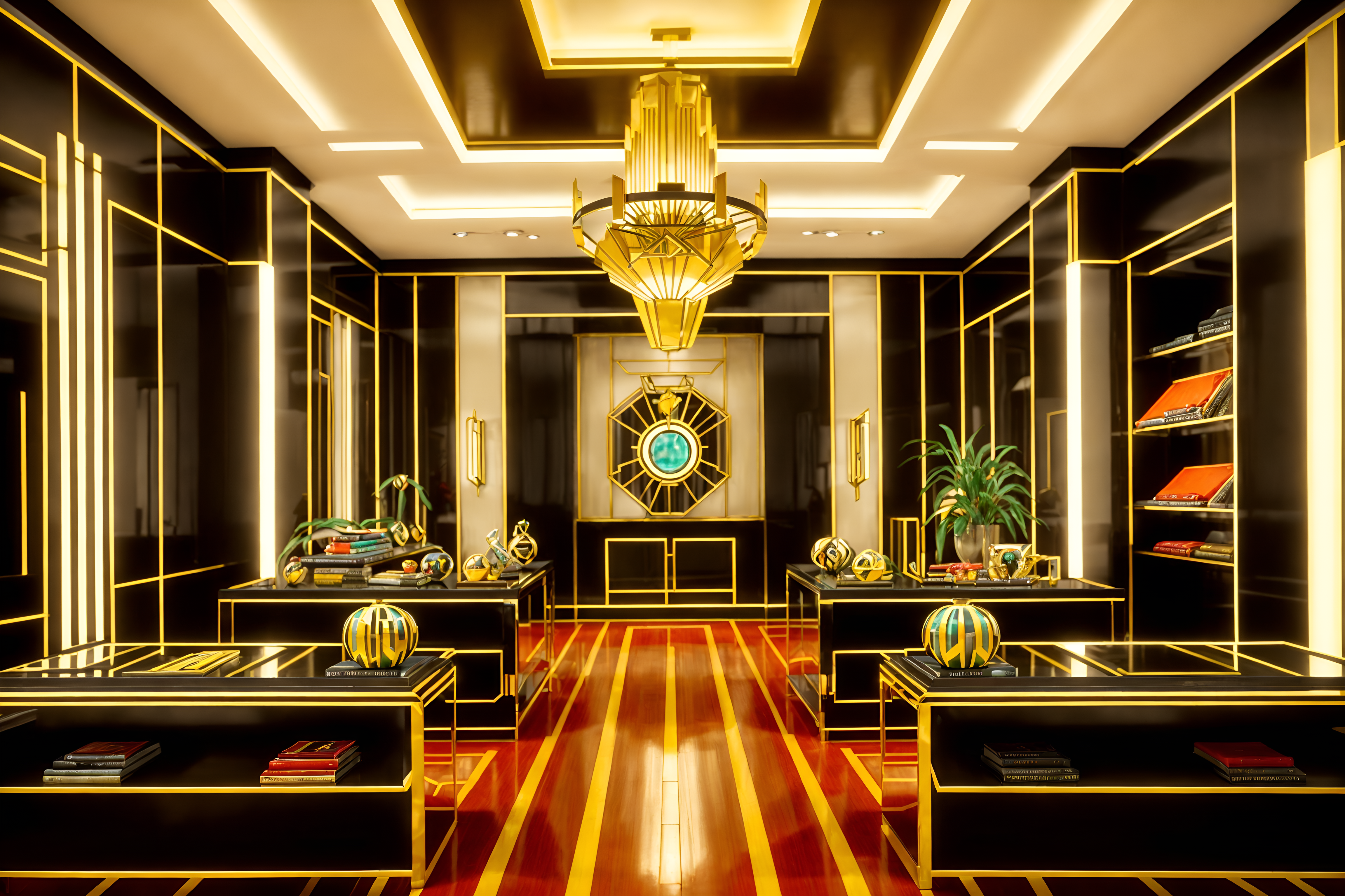 photo from pinterest of art deco-style interior designed (clothing store interior) . with angular shapes and rich colors and symmetrical designs and stream-lined forms and exuberant shapes and bright and cheerful colors and glamour and smooth lines. . cinematic photo, highly detailed, cinematic lighting, ultra-detailed, ultrarealistic, photorealism, 8k. trending on pinterest. art deco interior design style. masterpiece, cinematic light, ultrarealistic+, photorealistic+, 8k, raw photo, realistic, sharp focus on eyes, (symmetrical eyes), (intact eyes), hyperrealistic, highest quality, best quality, , highly detailed, masterpiece, best quality, extremely detailed 8k wallpaper, masterpiece, best quality, ultra-detailed, best shadow, detailed background, detailed face, detailed eyes, high contrast, best illumination, detailed face, dulux, caustic, dynamic angle, detailed glow. dramatic lighting. highly detailed, insanely detailed hair, symmetrical, intricate details, professionally retouched, 8k high definition. strong bokeh. award winning photo.