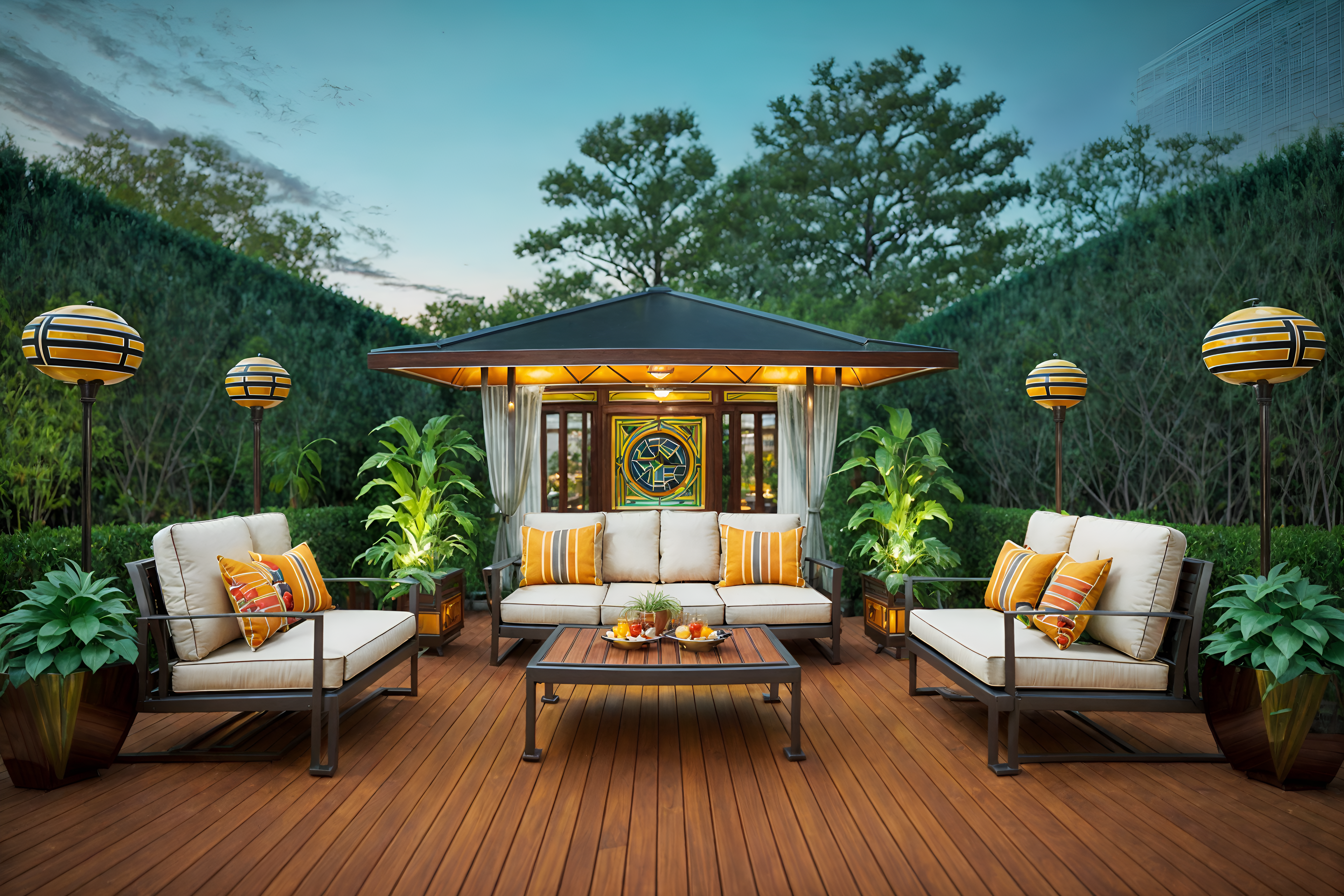 photo from pinterest of art deco-style designed (outdoor patio ) with deck with deck chairs and barbeque or grill and grass and plant and patio couch with pillows and deck with deck chairs. . with decadent detail and bright and cheerful colors and luxury and exuberant shapes and symmetrical designs and bold geometry and geometric lines and angular shapes. . cinematic photo, highly detailed, cinematic lighting, ultra-detailed, ultrarealistic, photorealism, 8k. trending on pinterest. art deco design style. masterpiece, cinematic light, ultrarealistic+, photorealistic+, 8k, raw photo, realistic, sharp focus on eyes, (symmetrical eyes), (intact eyes), hyperrealistic, highest quality, best quality, , highly detailed, masterpiece, best quality, extremely detailed 8k wallpaper, masterpiece, best quality, ultra-detailed, best shadow, detailed background, detailed face, detailed eyes, high contrast, best illumination, detailed face, dulux, caustic, dynamic angle, detailed glow. dramatic lighting. highly detailed, insanely detailed hair, symmetrical, intricate details, professionally retouched, 8k high definition. strong bokeh. award winning photo.