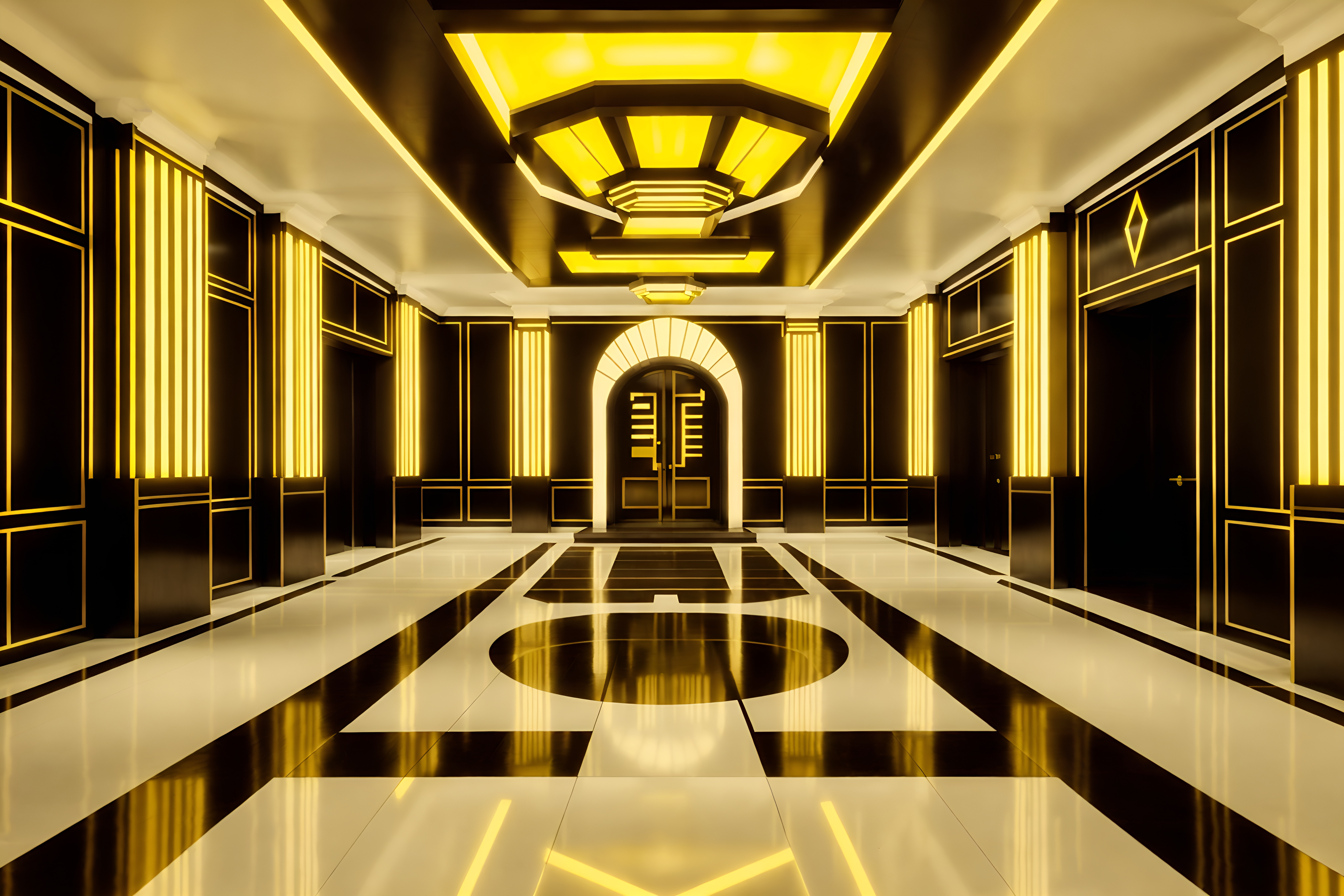 photo from pinterest of art deco-style interior designed (exhibition space interior) . with geometric shapes and bold geometry and smooth lines and bright and cheerful colors and rich colors and symmetrical designs and glamour and decadent detail. . cinematic photo, highly detailed, cinematic lighting, ultra-detailed, ultrarealistic, photorealism, 8k. trending on pinterest. art deco interior design style. masterpiece, cinematic light, ultrarealistic+, photorealistic+, 8k, raw photo, realistic, sharp focus on eyes, (symmetrical eyes), (intact eyes), hyperrealistic, highest quality, best quality, , highly detailed, masterpiece, best quality, extremely detailed 8k wallpaper, masterpiece, best quality, ultra-detailed, best shadow, detailed background, detailed face, detailed eyes, high contrast, best illumination, detailed face, dulux, caustic, dynamic angle, detailed glow. dramatic lighting. highly detailed, insanely detailed hair, symmetrical, intricate details, professionally retouched, 8k high definition. strong bokeh. award winning photo.