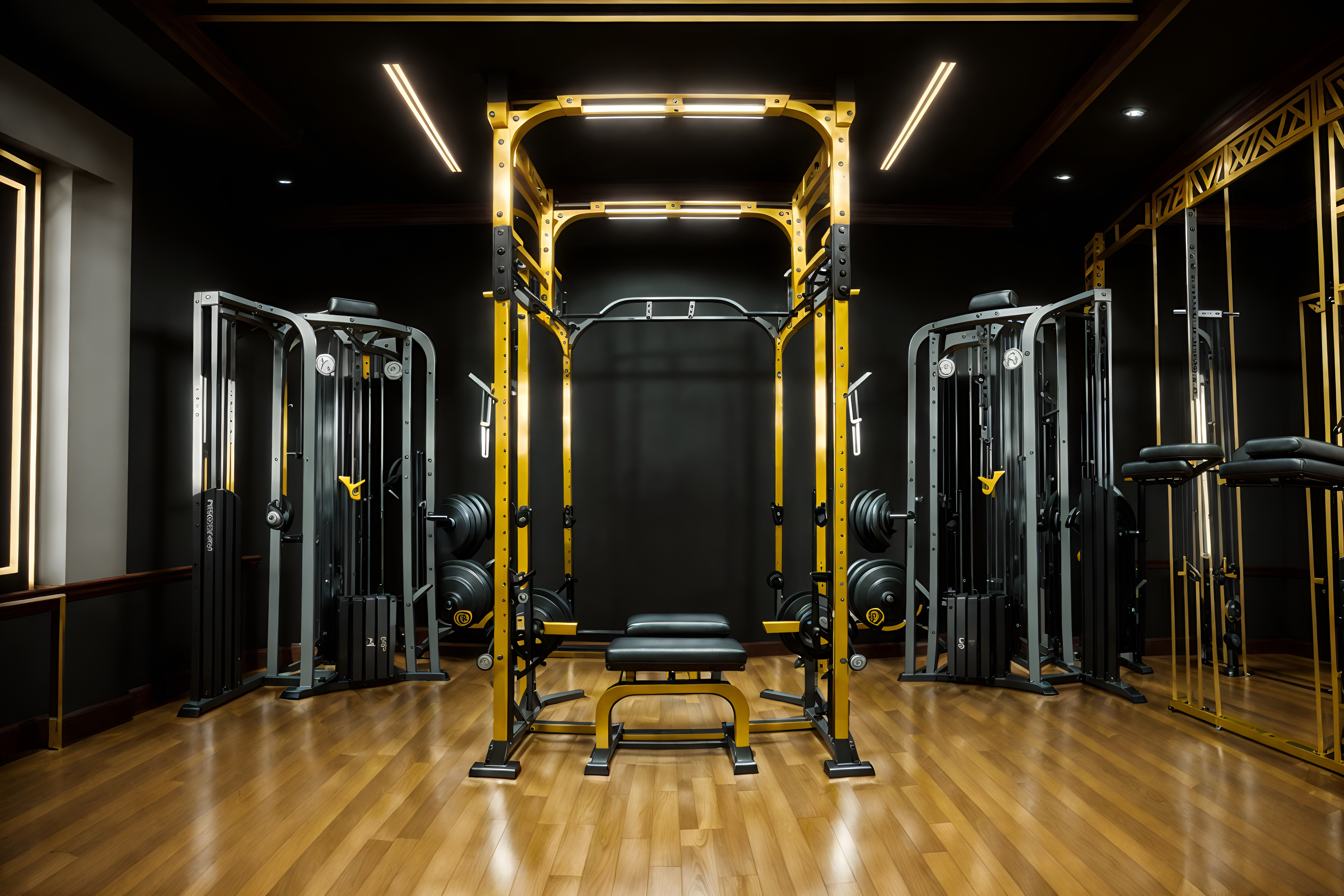 photo from pinterest of art deco-style interior designed (fitness gym interior) with squat rack and crosstrainer and dumbbell stand and bench press and exercise bicycle and squat rack. . with decadent detail and glamour and stream-lined forms and smooth lines and bold geometry and luxury and geometric lines and angular shapes. . cinematic photo, highly detailed, cinematic lighting, ultra-detailed, ultrarealistic, photorealism, 8k. trending on pinterest. art deco interior design style. masterpiece, cinematic light, ultrarealistic+, photorealistic+, 8k, raw photo, realistic, sharp focus on eyes, (symmetrical eyes), (intact eyes), hyperrealistic, highest quality, best quality, , highly detailed, masterpiece, best quality, extremely detailed 8k wallpaper, masterpiece, best quality, ultra-detailed, best shadow, detailed background, detailed face, detailed eyes, high contrast, best illumination, detailed face, dulux, caustic, dynamic angle, detailed glow. dramatic lighting. highly detailed, insanely detailed hair, symmetrical, intricate details, professionally retouched, 8k high definition. strong bokeh. award winning photo.