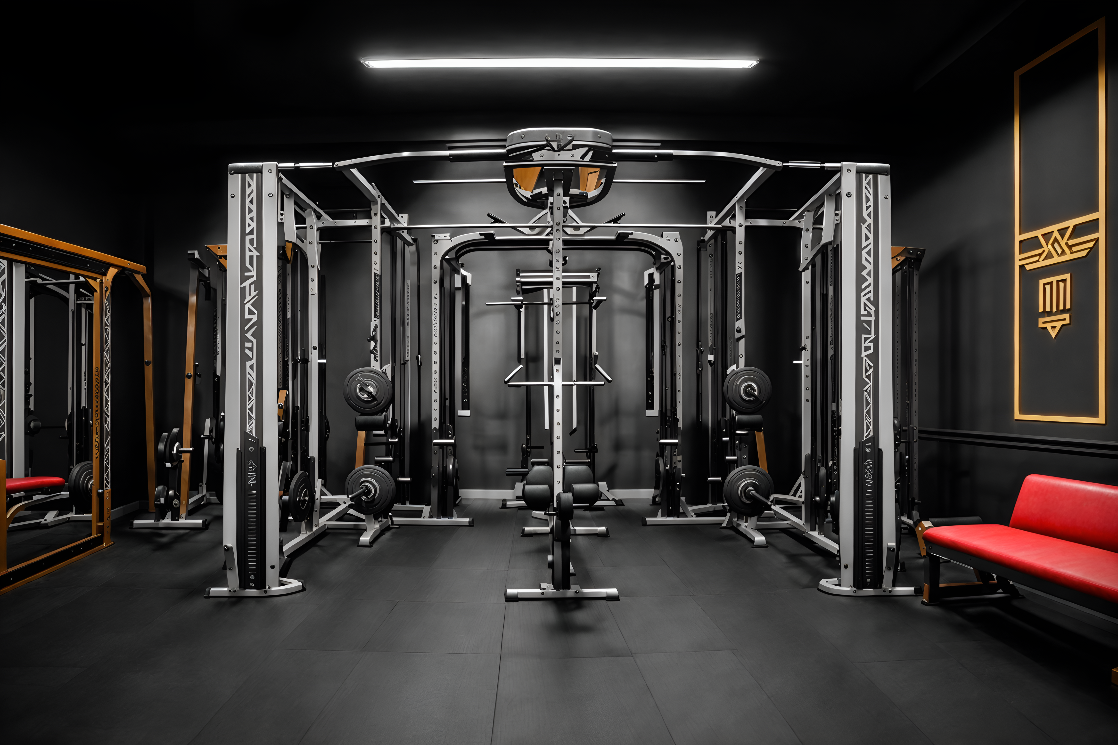 photo from pinterest of art deco-style interior designed (fitness gym interior) with squat rack and crosstrainer and dumbbell stand and bench press and exercise bicycle and squat rack. . with decadent detail and glamour and stream-lined forms and smooth lines and bold geometry and luxury and geometric lines and angular shapes. . cinematic photo, highly detailed, cinematic lighting, ultra-detailed, ultrarealistic, photorealism, 8k. trending on pinterest. art deco interior design style. masterpiece, cinematic light, ultrarealistic+, photorealistic+, 8k, raw photo, realistic, sharp focus on eyes, (symmetrical eyes), (intact eyes), hyperrealistic, highest quality, best quality, , highly detailed, masterpiece, best quality, extremely detailed 8k wallpaper, masterpiece, best quality, ultra-detailed, best shadow, detailed background, detailed face, detailed eyes, high contrast, best illumination, detailed face, dulux, caustic, dynamic angle, detailed glow. dramatic lighting. highly detailed, insanely detailed hair, symmetrical, intricate details, professionally retouched, 8k high definition. strong bokeh. award winning photo.