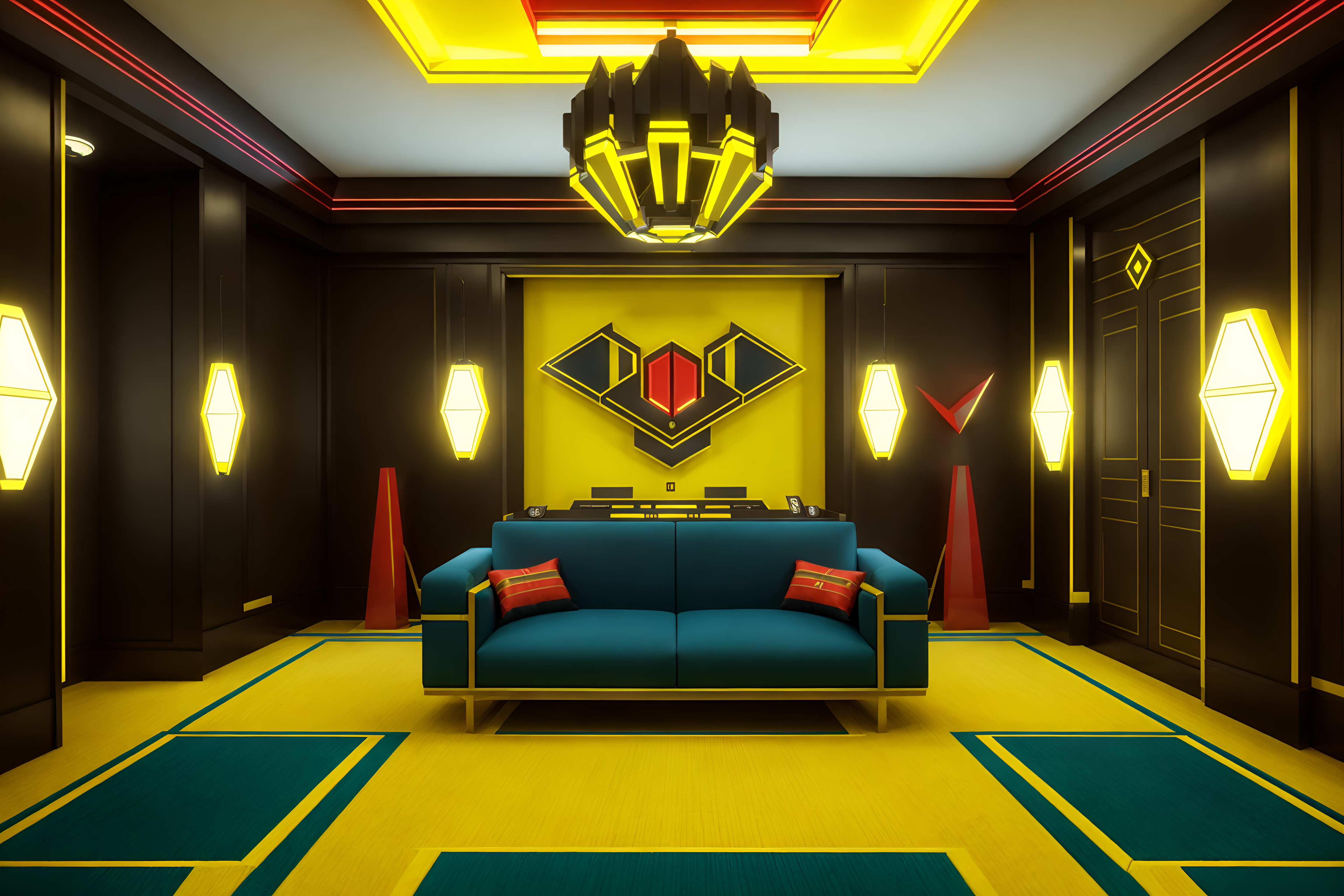 photo from pinterest of art deco-style interior designed (gaming room interior) . with bright and cheerful colors and angular shapes and bold geometry and symmetrical designs and glamour and decadent detail and rich colors and smooth lines. . cinematic photo, highly detailed, cinematic lighting, ultra-detailed, ultrarealistic, photorealism, 8k. trending on pinterest. art deco interior design style. masterpiece, cinematic light, ultrarealistic+, photorealistic+, 8k, raw photo, realistic, sharp focus on eyes, (symmetrical eyes), (intact eyes), hyperrealistic, highest quality, best quality, , highly detailed, masterpiece, best quality, extremely detailed 8k wallpaper, masterpiece, best quality, ultra-detailed, best shadow, detailed background, detailed face, detailed eyes, high contrast, best illumination, detailed face, dulux, caustic, dynamic angle, detailed glow. dramatic lighting. highly detailed, insanely detailed hair, symmetrical, intricate details, professionally retouched, 8k high definition. strong bokeh. award winning photo.