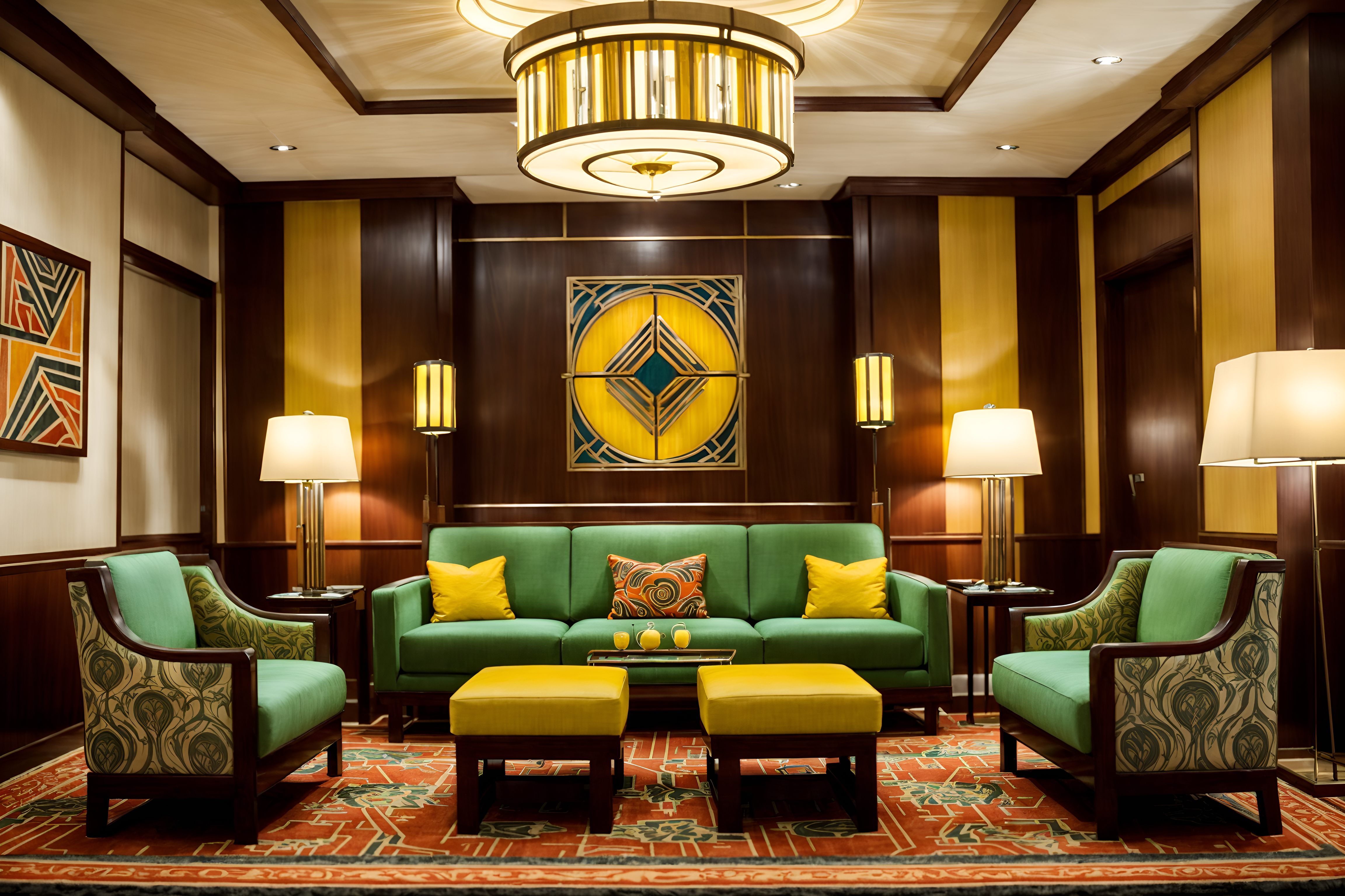 photo from pinterest of art deco-style interior designed (hotel lobby interior) with sofas and rug and lounge chairs and check in desk and plant and hanging lamps and coffee tables and furniture. . with stream-lined forms and bright and cheerful colors and abstract patterns and luxury and angular shapes and rich colors and smooth lines and symmetrical designs. . cinematic photo, highly detailed, cinematic lighting, ultra-detailed, ultrarealistic, photorealism, 8k. trending on pinterest. art deco interior design style. masterpiece, cinematic light, ultrarealistic+, photorealistic+, 8k, raw photo, realistic, sharp focus on eyes, (symmetrical eyes), (intact eyes), hyperrealistic, highest quality, best quality, , highly detailed, masterpiece, best quality, extremely detailed 8k wallpaper, masterpiece, best quality, ultra-detailed, best shadow, detailed background, detailed face, detailed eyes, high contrast, best illumination, detailed face, dulux, caustic, dynamic angle, detailed glow. dramatic lighting. highly detailed, insanely detailed hair, symmetrical, intricate details, professionally retouched, 8k high definition. strong bokeh. award winning photo.