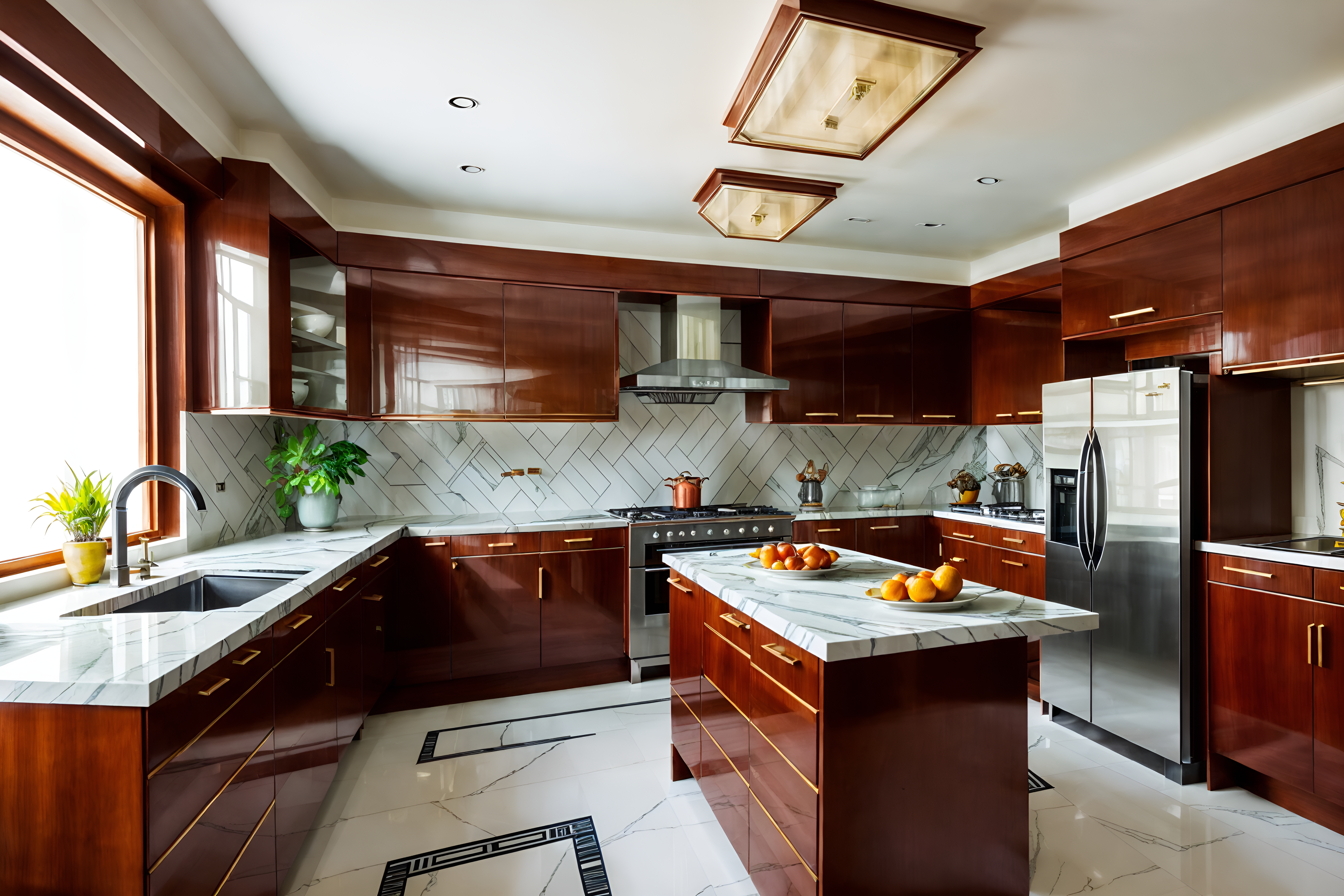 photo from pinterest of art deco-style interior designed (kitchen interior) with worktops and plant and sink and refrigerator and stove and kitchen cabinets and worktops. . with decadent detail and angular shapes and geometric lines and stream-lined forms and rich colors and luxury and symmetrical designs and bright and cheerful colors. . cinematic photo, highly detailed, cinematic lighting, ultra-detailed, ultrarealistic, photorealism, 8k. trending on pinterest. art deco interior design style. masterpiece, cinematic light, ultrarealistic+, photorealistic+, 8k, raw photo, realistic, sharp focus on eyes, (symmetrical eyes), (intact eyes), hyperrealistic, highest quality, best quality, , highly detailed, masterpiece, best quality, extremely detailed 8k wallpaper, masterpiece, best quality, ultra-detailed, best shadow, detailed background, detailed face, detailed eyes, high contrast, best illumination, detailed face, dulux, caustic, dynamic angle, detailed glow. dramatic lighting. highly detailed, insanely detailed hair, symmetrical, intricate details, professionally retouched, 8k high definition. strong bokeh. award winning photo.