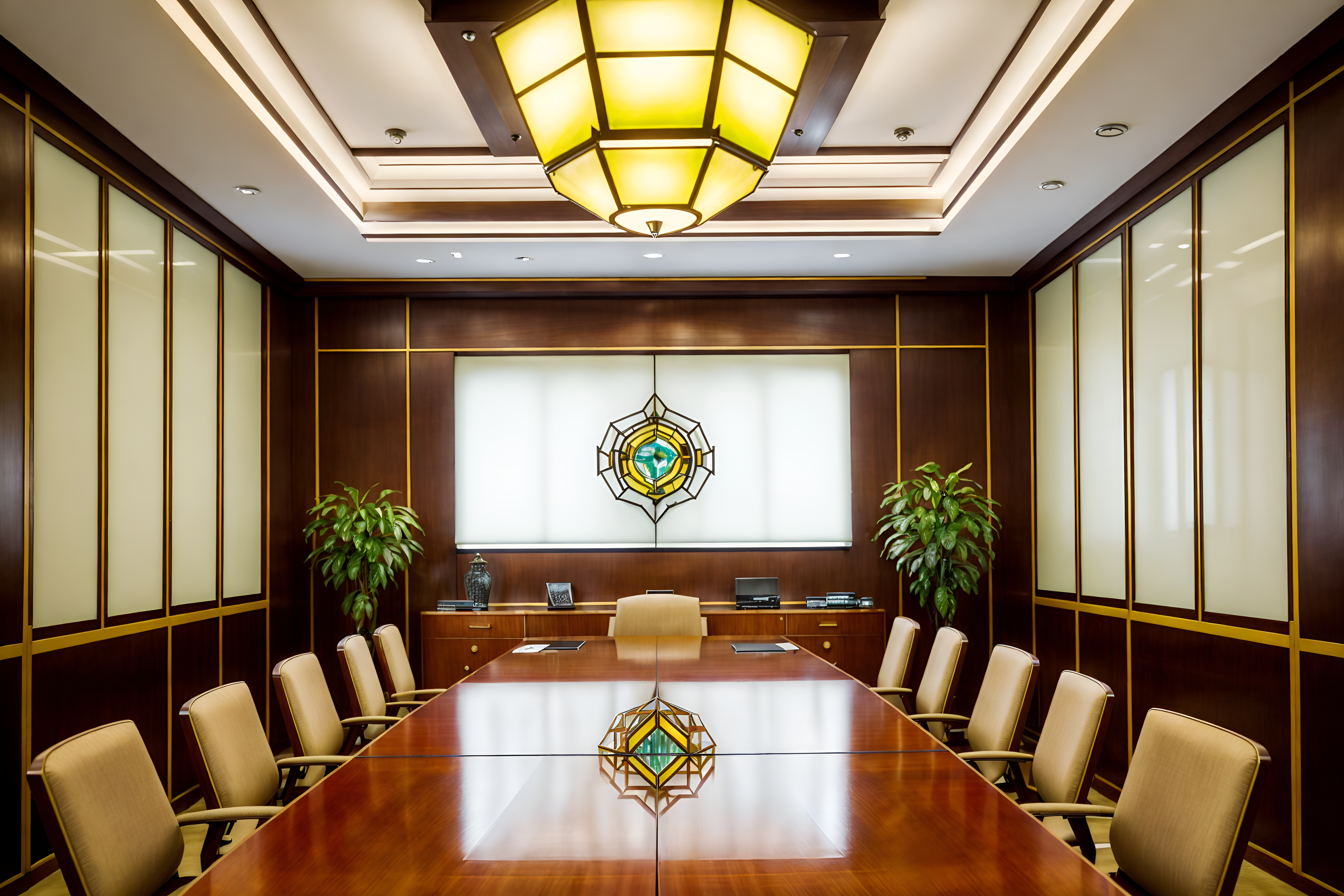 photo from pinterest of art deco-style interior designed (meeting room interior) with boardroom table and plant and office chairs and cabinets and glass doors and painting or photo on wall and glass walls and vase. . with symmetrical designs and luxury and bold geometry and geometric shapes and smooth lines and bright and cheerful colors and geometric lines and decadent detail. . cinematic photo, highly detailed, cinematic lighting, ultra-detailed, ultrarealistic, photorealism, 8k. trending on pinterest. art deco interior design style. masterpiece, cinematic light, ultrarealistic+, photorealistic+, 8k, raw photo, realistic, sharp focus on eyes, (symmetrical eyes), (intact eyes), hyperrealistic, highest quality, best quality, , highly detailed, masterpiece, best quality, extremely detailed 8k wallpaper, masterpiece, best quality, ultra-detailed, best shadow, detailed background, detailed face, detailed eyes, high contrast, best illumination, detailed face, dulux, caustic, dynamic angle, detailed glow. dramatic lighting. highly detailed, insanely detailed hair, symmetrical, intricate details, professionally retouched, 8k high definition. strong bokeh. award winning photo.