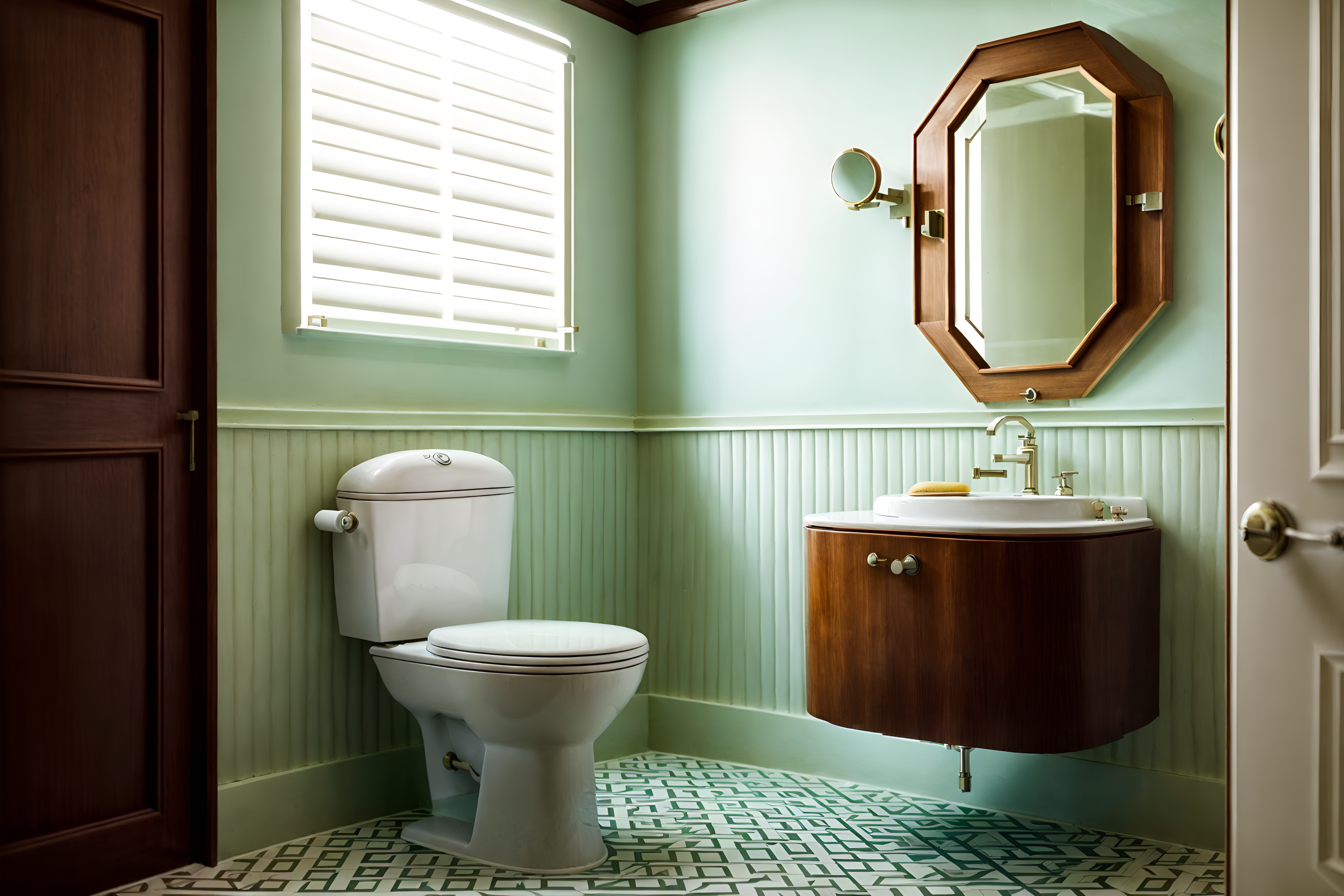 photo from pinterest of art deco-style interior designed (toilet interior) with toilet with toilet seat up and sink with tap and toilet paper hanger and toilet with toilet seat up. . with smooth lines and bold geometry and geometric lines and bright and cheerful colors and luxury and glamour and stream-lined forms and decadent detail. . cinematic photo, highly detailed, cinematic lighting, ultra-detailed, ultrarealistic, photorealism, 8k. trending on pinterest. art deco interior design style. masterpiece, cinematic light, ultrarealistic+, photorealistic+, 8k, raw photo, realistic, sharp focus on eyes, (symmetrical eyes), (intact eyes), hyperrealistic, highest quality, best quality, , highly detailed, masterpiece, best quality, extremely detailed 8k wallpaper, masterpiece, best quality, ultra-detailed, best shadow, detailed background, detailed face, detailed eyes, high contrast, best illumination, detailed face, dulux, caustic, dynamic angle, detailed glow. dramatic lighting. highly detailed, insanely detailed hair, symmetrical, intricate details, professionally retouched, 8k high definition. strong bokeh. award winning photo.