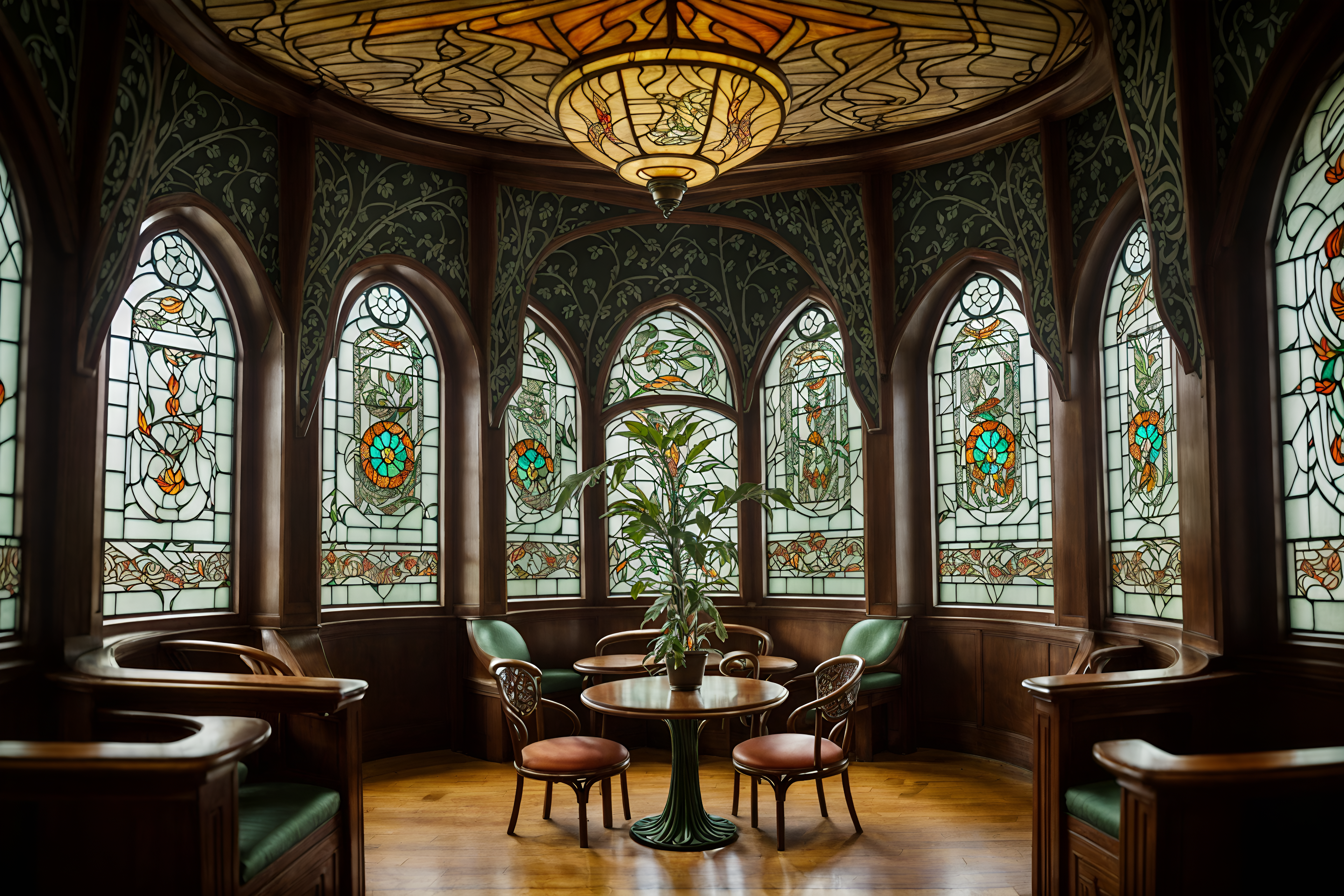 photo from pinterest of art nouveau-style interior designed (coffee shop interior) . with curving, plant-like embellishments and arches and curved forms and soft, rounded lines and asymmetrical shapes and wallpaper patterns of feathers and japanese motifs and stained glass and wallpaper pattners of spider webs. . cinematic photo, highly detailed, cinematic lighting, ultra-detailed, ultrarealistic, photorealism, 8k. trending on pinterest. art nouveau interior design style. masterpiece, cinematic light, ultrarealistic+, photorealistic+, 8k, raw photo, realistic, sharp focus on eyes, (symmetrical eyes), (intact eyes), hyperrealistic, highest quality, best quality, , highly detailed, masterpiece, best quality, extremely detailed 8k wallpaper, masterpiece, best quality, ultra-detailed, best shadow, detailed background, detailed face, detailed eyes, high contrast, best illumination, detailed face, dulux, caustic, dynamic angle, detailed glow. dramatic lighting. highly detailed, insanely detailed hair, symmetrical, intricate details, professionally retouched, 8k high definition. strong bokeh. award winning photo.