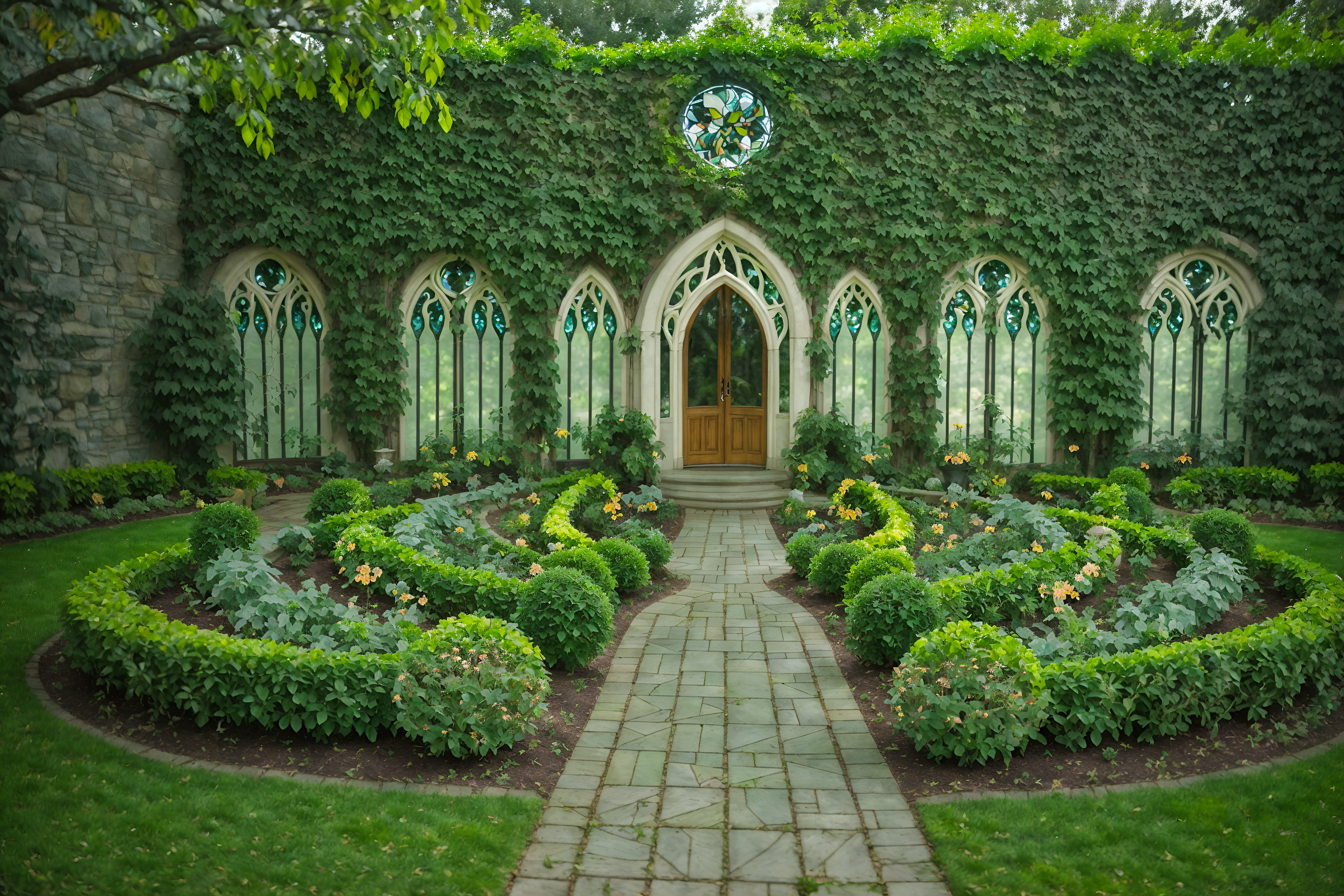 photo from pinterest of art nouveau-style designed (outdoor garden ) with garden tree and grass and garden plants and garden tree. . with asymmetrical shapes and curved glass and arches and curved forms and stained glass and stained glass and soft, rounded lines and curving, plant-like embellishments and natural materials. . cinematic photo, highly detailed, cinematic lighting, ultra-detailed, ultrarealistic, photorealism, 8k. trending on pinterest. art nouveau design style. masterpiece, cinematic light, ultrarealistic+, photorealistic+, 8k, raw photo, realistic, sharp focus on eyes, (symmetrical eyes), (intact eyes), hyperrealistic, highest quality, best quality, , highly detailed, masterpiece, best quality, extremely detailed 8k wallpaper, masterpiece, best quality, ultra-detailed, best shadow, detailed background, detailed face, detailed eyes, high contrast, best illumination, detailed face, dulux, caustic, dynamic angle, detailed glow. dramatic lighting. highly detailed, insanely detailed hair, symmetrical, intricate details, professionally retouched, 8k high definition. strong bokeh. award winning photo.