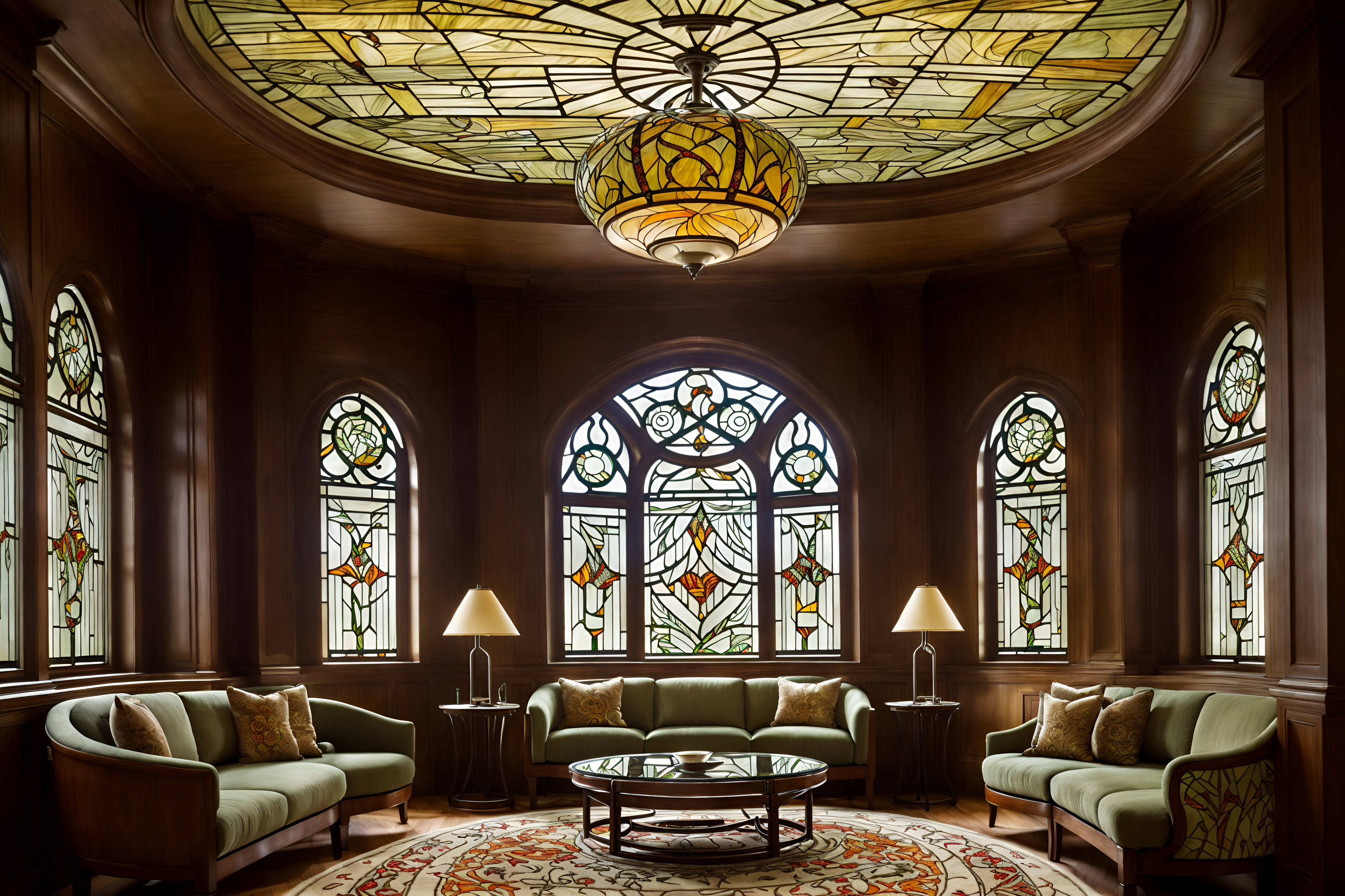 photo from pinterest of art nouveau-style interior designed (hotel lobby interior) with plant and sofas and hanging lamps and furniture and lounge chairs and coffee tables and rug and check in desk. . with soft, rounded lines and stained glass and asymmetrical shapes and wallpaper pattners of spider webs and wallpaper patterns of feathers and natural materials and mosaics and arches and curved forms. . cinematic photo, highly detailed, cinematic lighting, ultra-detailed, ultrarealistic, photorealism, 8k. trending on pinterest. art nouveau interior design style. masterpiece, cinematic light, ultrarealistic+, photorealistic+, 8k, raw photo, realistic, sharp focus on eyes, (symmetrical eyes), (intact eyes), hyperrealistic, highest quality, best quality, , highly detailed, masterpiece, best quality, extremely detailed 8k wallpaper, masterpiece, best quality, ultra-detailed, best shadow, detailed background, detailed face, detailed eyes, high contrast, best illumination, detailed face, dulux, caustic, dynamic angle, detailed glow. dramatic lighting. highly detailed, insanely detailed hair, symmetrical, intricate details, professionally retouched, 8k high definition. strong bokeh. award winning photo.