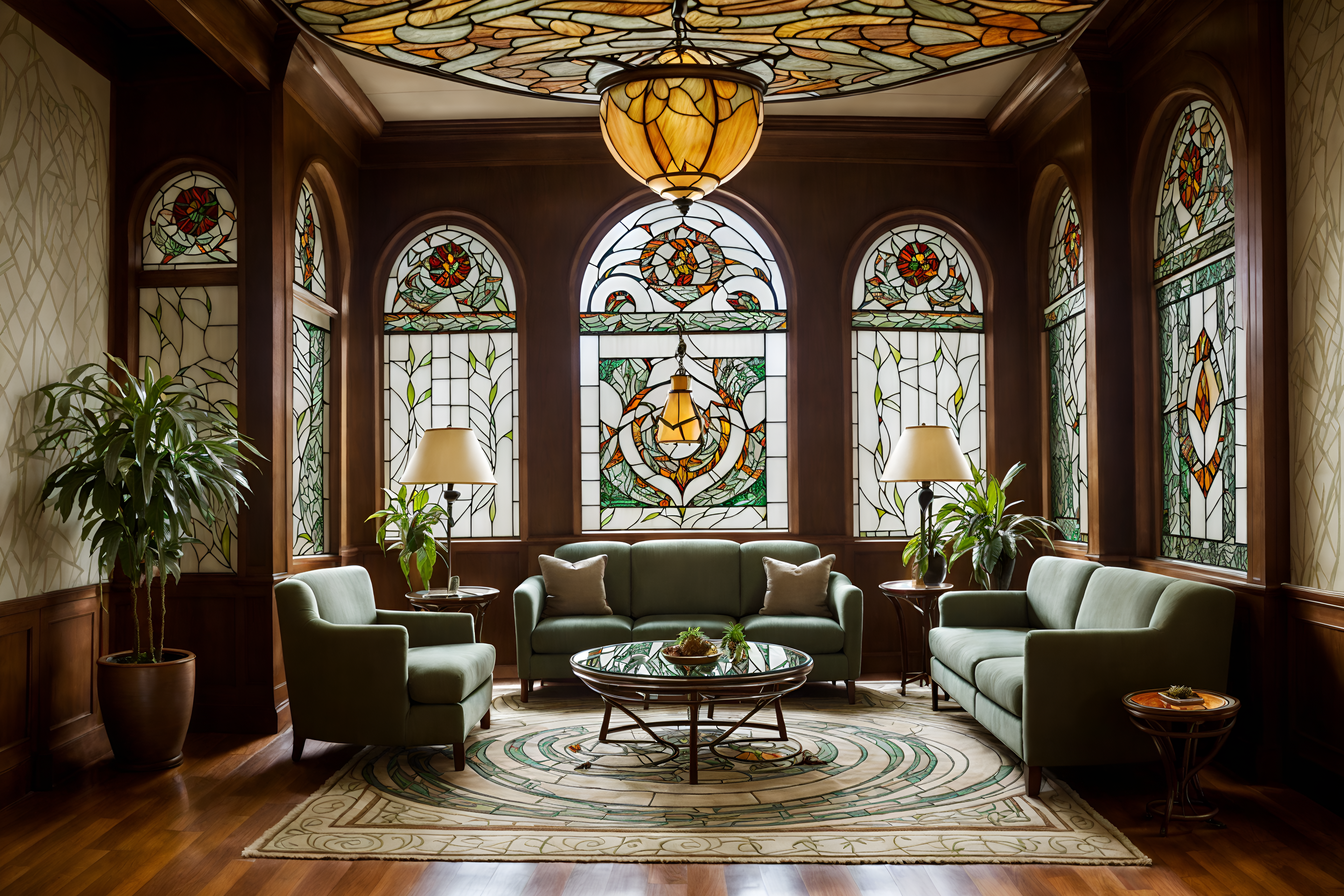 photo from pinterest of art nouveau-style interior designed (hotel lobby interior) with plant and sofas and hanging lamps and furniture and lounge chairs and coffee tables and rug and check in desk. . with soft, rounded lines and stained glass and asymmetrical shapes and wallpaper pattners of spider webs and wallpaper patterns of feathers and natural materials and mosaics and arches and curved forms. . cinematic photo, highly detailed, cinematic lighting, ultra-detailed, ultrarealistic, photorealism, 8k. trending on pinterest. art nouveau interior design style. masterpiece, cinematic light, ultrarealistic+, photorealistic+, 8k, raw photo, realistic, sharp focus on eyes, (symmetrical eyes), (intact eyes), hyperrealistic, highest quality, best quality, , highly detailed, masterpiece, best quality, extremely detailed 8k wallpaper, masterpiece, best quality, ultra-detailed, best shadow, detailed background, detailed face, detailed eyes, high contrast, best illumination, detailed face, dulux, caustic, dynamic angle, detailed glow. dramatic lighting. highly detailed, insanely detailed hair, symmetrical, intricate details, professionally retouched, 8k high definition. strong bokeh. award winning photo.
