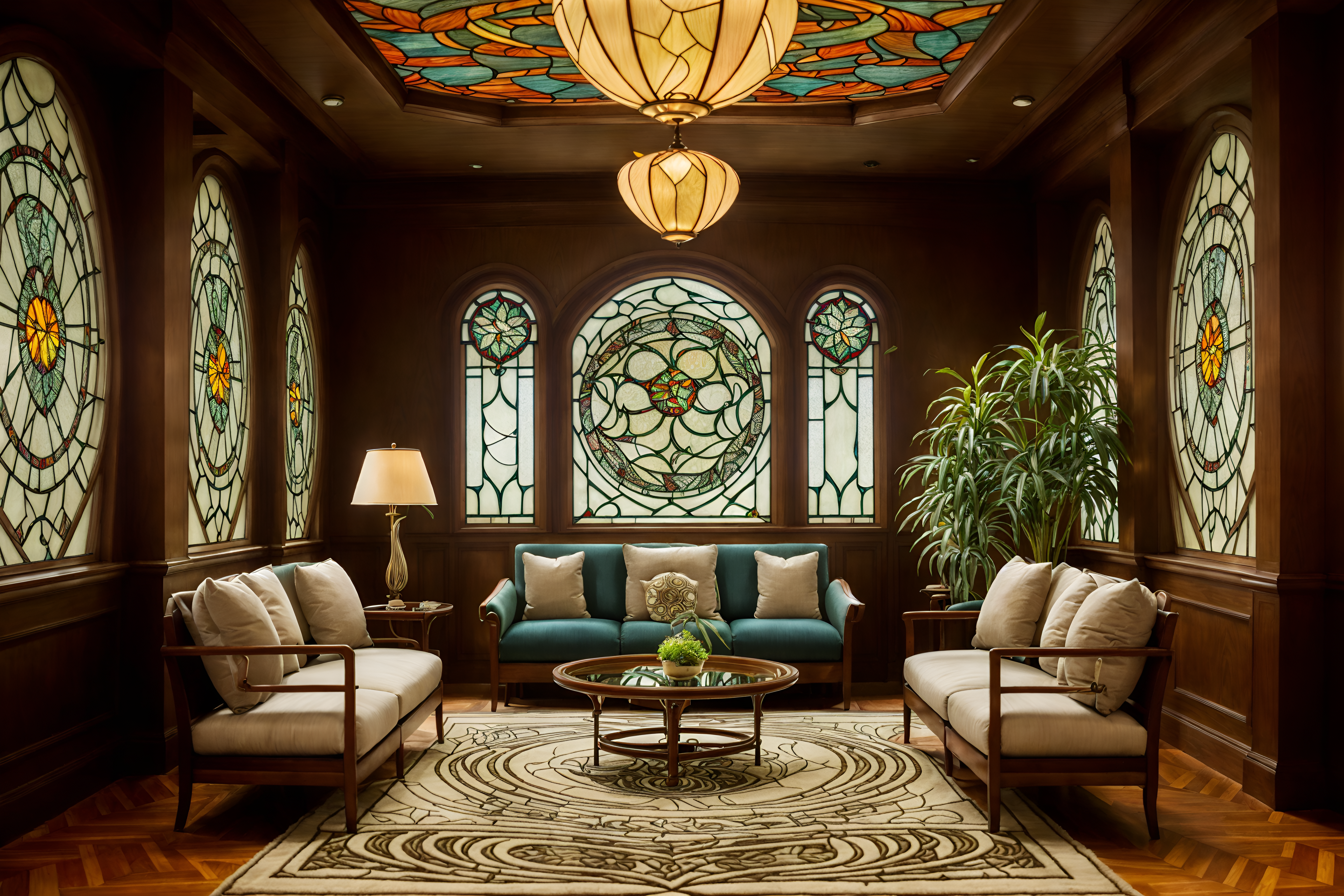 photo from pinterest of art nouveau-style interior designed (hotel lobby interior) with plant and sofas and hanging lamps and furniture and lounge chairs and coffee tables and rug and check in desk. . with soft, rounded lines and stained glass and asymmetrical shapes and wallpaper pattners of spider webs and wallpaper patterns of feathers and natural materials and mosaics and arches and curved forms. . cinematic photo, highly detailed, cinematic lighting, ultra-detailed, ultrarealistic, photorealism, 8k. trending on pinterest. art nouveau interior design style. masterpiece, cinematic light, ultrarealistic+, photorealistic+, 8k, raw photo, realistic, sharp focus on eyes, (symmetrical eyes), (intact eyes), hyperrealistic, highest quality, best quality, , highly detailed, masterpiece, best quality, extremely detailed 8k wallpaper, masterpiece, best quality, ultra-detailed, best shadow, detailed background, detailed face, detailed eyes, high contrast, best illumination, detailed face, dulux, caustic, dynamic angle, detailed glow. dramatic lighting. highly detailed, insanely detailed hair, symmetrical, intricate details, professionally retouched, 8k high definition. strong bokeh. award winning photo.