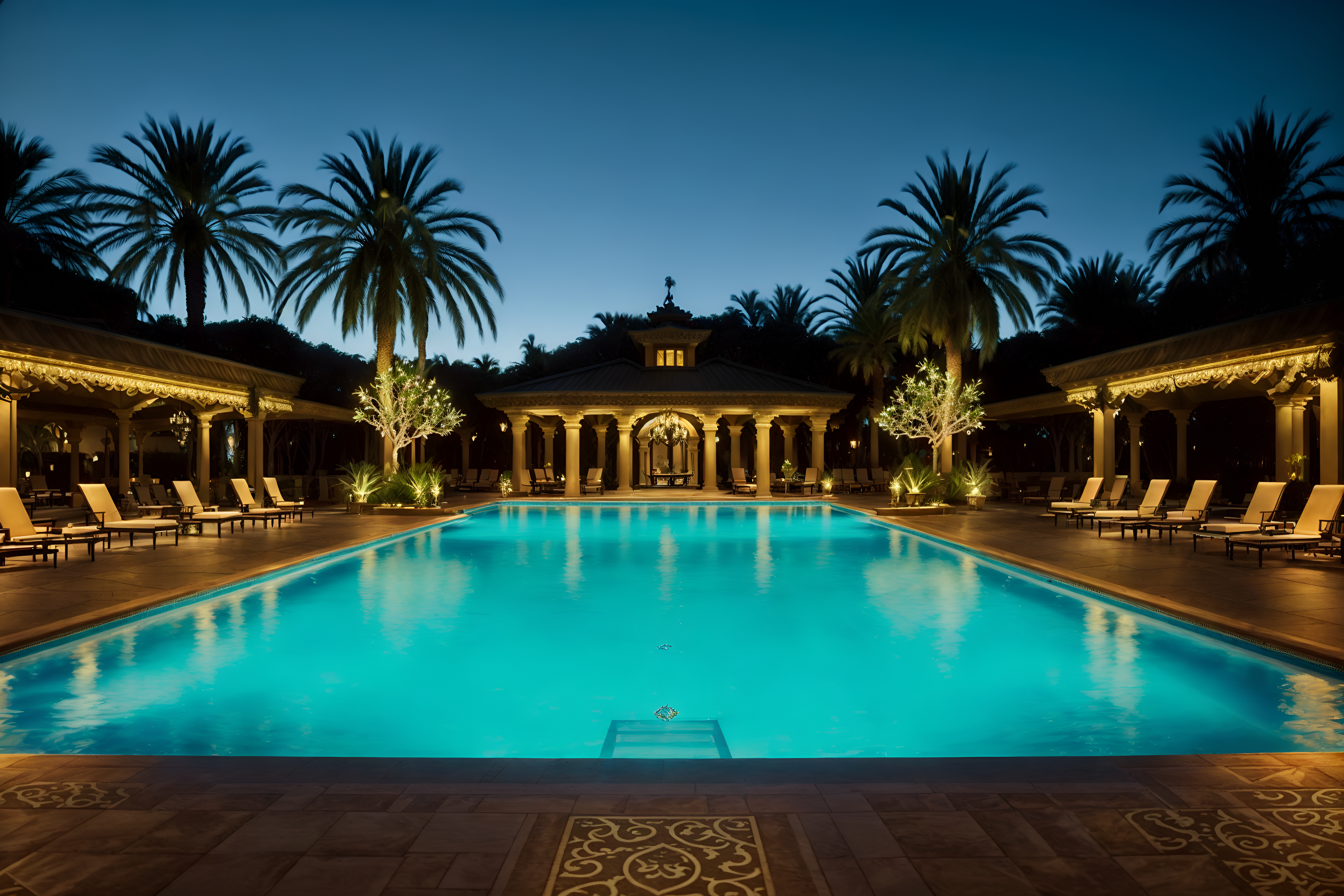 photo from pinterest of baroque-style designed (outdoor pool area ) with pool and pool lights and pool lounge chairs and pool. . with expensive and plush flooring and dynamism and tension and emotional exuberance and sensuous richness and opulent and colossal furniture and movement and crystal and glass accents. . cinematic photo, highly detailed, cinematic lighting, ultra-detailed, ultrarealistic, photorealism, 8k. trending on pinterest. baroque design style. masterpiece, cinematic light, ultrarealistic+, photorealistic+, 8k, raw photo, realistic, sharp focus on eyes, (symmetrical eyes), (intact eyes), hyperrealistic, highest quality, best quality, , highly detailed, masterpiece, best quality, extremely detailed 8k wallpaper, masterpiece, best quality, ultra-detailed, best shadow, detailed background, detailed face, detailed eyes, high contrast, best illumination, detailed face, dulux, caustic, dynamic angle, detailed glow. dramatic lighting. highly detailed, insanely detailed hair, symmetrical, intricate details, professionally retouched, 8k high definition. strong bokeh. award winning photo.