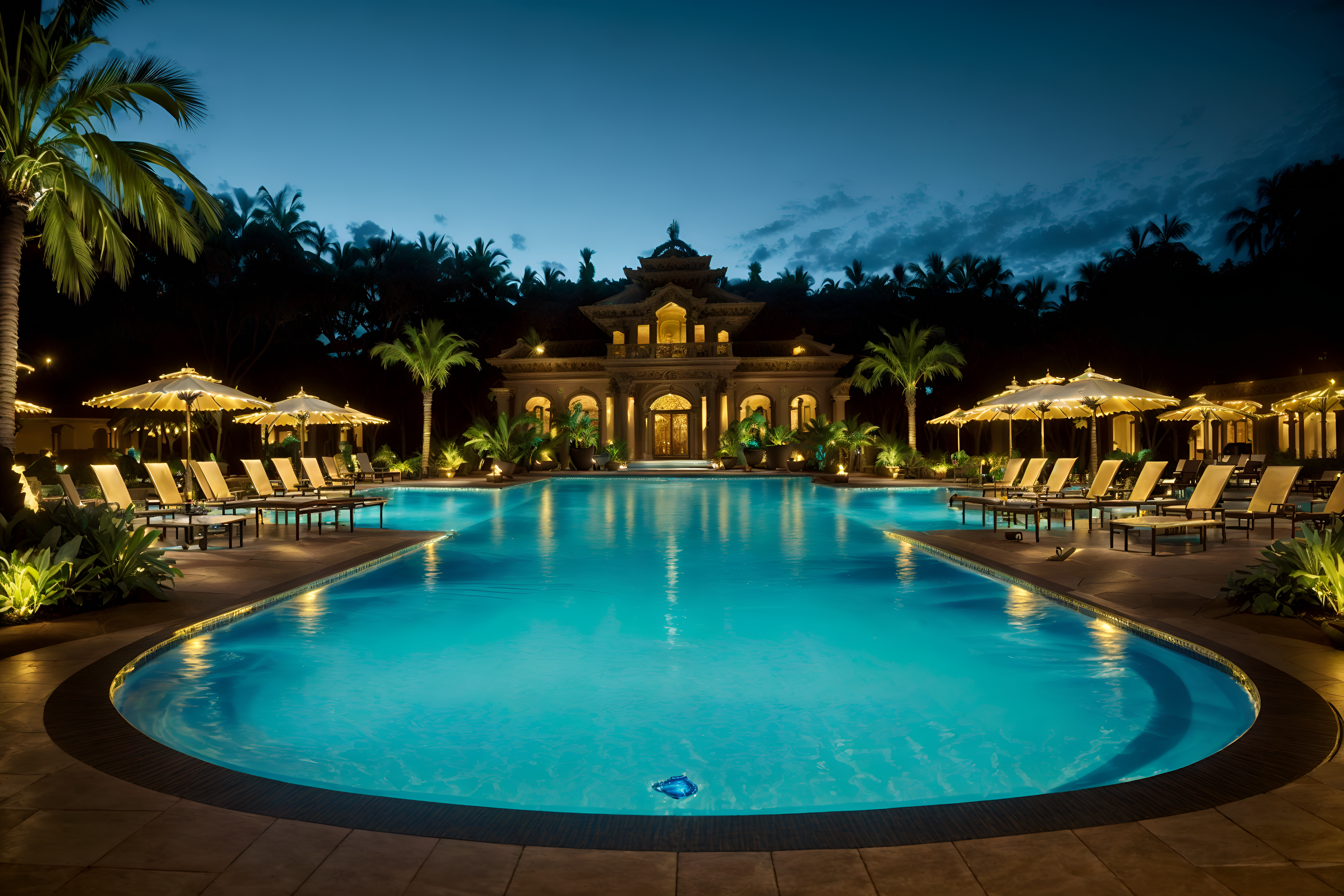photo from pinterest of baroque-style designed (outdoor pool area ) with pool and pool lights and pool lounge chairs and pool. . with expensive and plush flooring and dynamism and tension and emotional exuberance and sensuous richness and opulent and colossal furniture and movement and crystal and glass accents. . cinematic photo, highly detailed, cinematic lighting, ultra-detailed, ultrarealistic, photorealism, 8k. trending on pinterest. baroque design style. masterpiece, cinematic light, ultrarealistic+, photorealistic+, 8k, raw photo, realistic, sharp focus on eyes, (symmetrical eyes), (intact eyes), hyperrealistic, highest quality, best quality, , highly detailed, masterpiece, best quality, extremely detailed 8k wallpaper, masterpiece, best quality, ultra-detailed, best shadow, detailed background, detailed face, detailed eyes, high contrast, best illumination, detailed face, dulux, caustic, dynamic angle, detailed glow. dramatic lighting. highly detailed, insanely detailed hair, symmetrical, intricate details, professionally retouched, 8k high definition. strong bokeh. award winning photo.