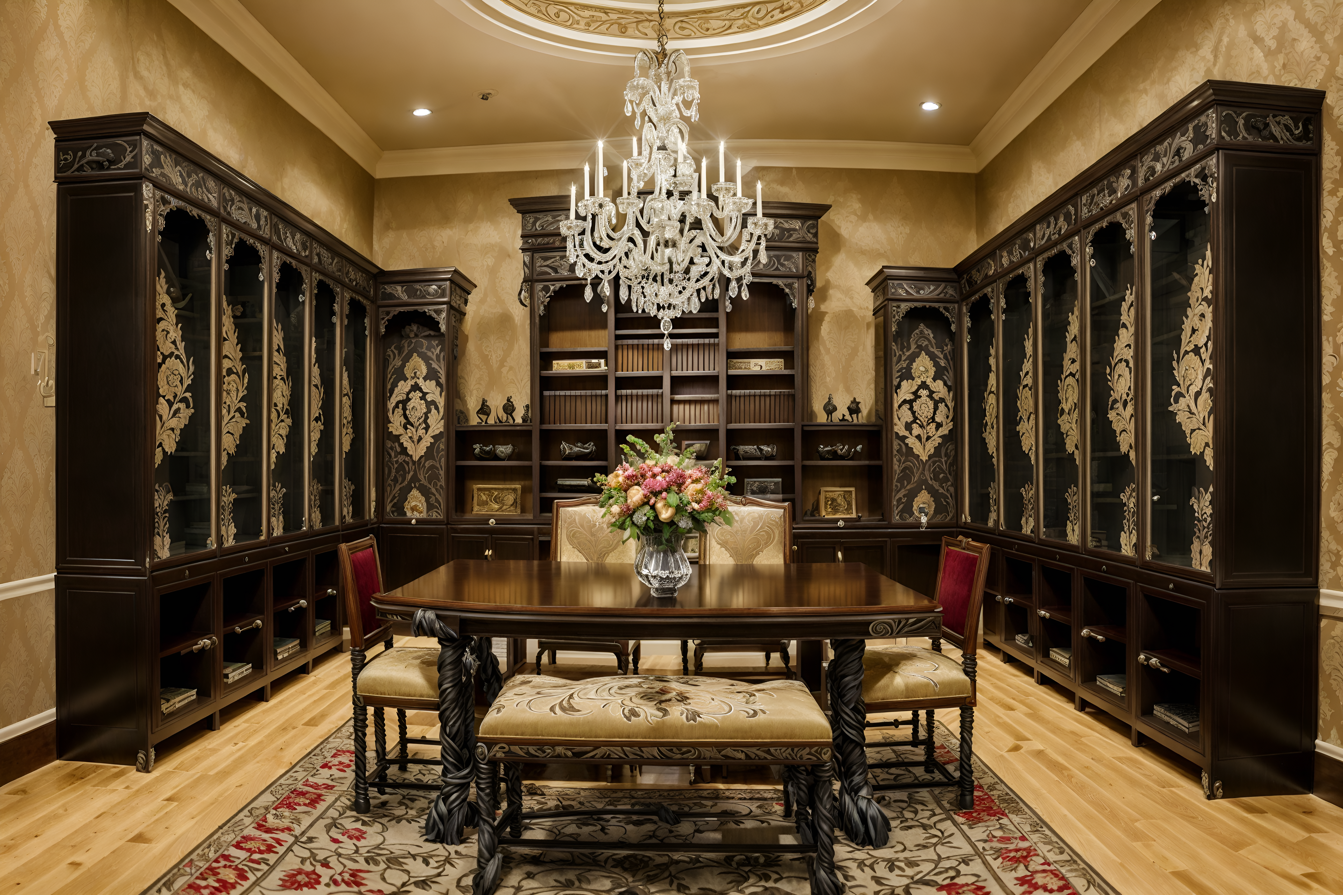 baroque interiorsinterior decorate this banquet hall with baroque style. . . with elegant decor and dance floor and chandeliers and tablecloths and round tables and buffet tables and centerpieces and floral arrangements. . with expensive and plush flooring and twisted columns and dynamism and pedestal feet and grandeur and tension and crystal and glass accents and heavy moldings. . .interior decorate this bedroom with baroque style. . . with bed and accent chair and bedside table or night stand and night light and mirror and dresser closet and headboard and storage bench or ottoman. . with pedestal feet and intricate carvings and ornaments and expensive and plush flooring and grandeur and emotional exuberance and tension and sensuous richness and twisted columns. . .interior decorate this hotel lobby with baroque style. . . with coffee tables and hanging lamps and lounge chairs and plant and furniture and sofas and check in desk and rug. . with heavy moldings and tension and movement and drama and pedestal feet and emotional exuberance and crystal and glass accents and dynamism. . .interior decorate this outdoor garden with baroque style. . . with grass and garden plants and garden tree and grass. . with movement and pedestal feet and expensive and plush flooring and twisted columns and opulent and colossal furniture and crystal and glass accents and dynamism and luxurious floral and damask fabrics. . .interior decorate this outdoor pool area with baroque style. . . with pool lounge chairs and pool lights and pool and pool lounge chairs. . with expensive and plush flooring and dynamism and drama and movement and emotional exuberance and tension and pedestal feet and elaborate ornamentation. . .interior decorate this ballroom with baroque style. . . with chandeliers and grand piano and elegant seating and marble floors and gilded decor and ornate columns and crystal fixtures and dance floor. . with opulent and colossal furniture and drama and twisted columns and expensive and plush flooring and luxurious floral and damask fabrics and heavy moldings and intricate carvings and ornaments and movement. . .interior decorate this airport lounge with baroque style. . . with magazines and television screens and flight information displays and newspapers and coffee tables and luggage storage and comfortable seating and charging stations. . with grandeur and movement and twisted columns and opulent and colossal furniture and tension and expensive and plush flooring and elaborate ornamentation and intricate carvings and ornaments. . .interior decorate this restaurant with baroque style. . . with restaurant decor and restaurant chairs and restaurant bar and restaurant dining tables and restaurant decor. . with intricate carvings and ornaments and movement and emotional exuberance and twisted columns and heavy moldings and dynamism and crystal and glass accents and grandeur. . .interior decorate this kitchen with baroque style. . . with sink and stove and refrigerator and plant and worktops and kitchen cabinets and sink. . with grandeur and movement and opulent and colossal furniture and twisted columns and sensuous richness and heavy moldings and crystal and glass accents and drama. . .