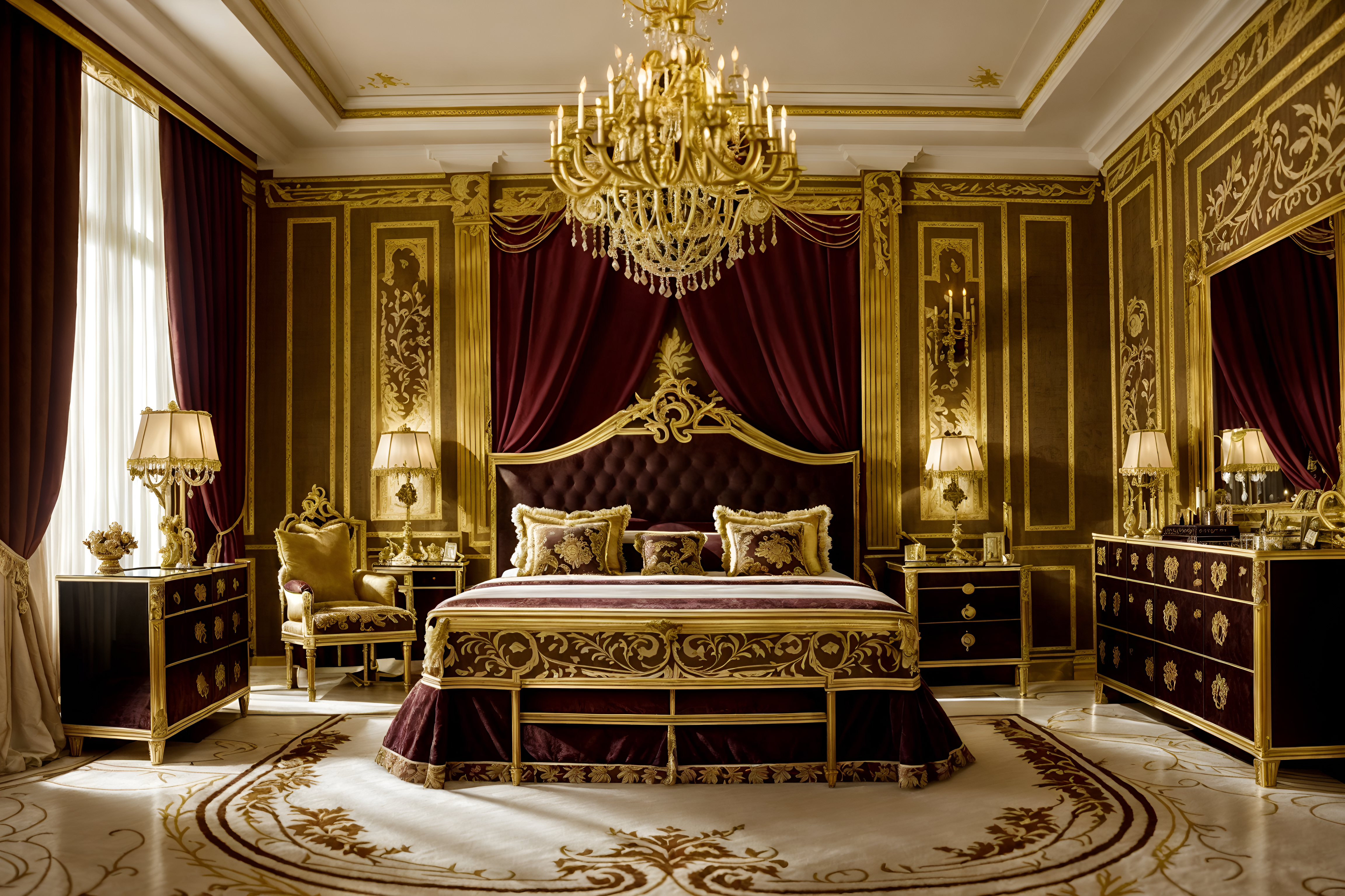 photo from pinterest of baroque-style interior designed (hotel room interior) with night light and hotel bathroom and plant and bedside table or night stand and working desk with desk chair and headboard and mirror and bed. . with grandeur and expensive and plush flooring and luxurious floral and damask fabrics and dynamism and drama and opulent and colossal furniture and emotional exuberance and tension. . cinematic photo, highly detailed, cinematic lighting, ultra-detailed, ultrarealistic, photorealism, 8k. trending on pinterest. baroque interior design style. masterpiece, cinematic light, ultrarealistic+, photorealistic+, 8k, raw photo, realistic, sharp focus on eyes, (symmetrical eyes), (intact eyes), hyperrealistic, highest quality, best quality, , highly detailed, masterpiece, best quality, extremely detailed 8k wallpaper, masterpiece, best quality, ultra-detailed, best shadow, detailed background, detailed face, detailed eyes, high contrast, best illumination, detailed face, dulux, caustic, dynamic angle, detailed glow. dramatic lighting. highly detailed, insanely detailed hair, symmetrical, intricate details, professionally retouched, 8k high definition. strong bokeh. award winning photo.