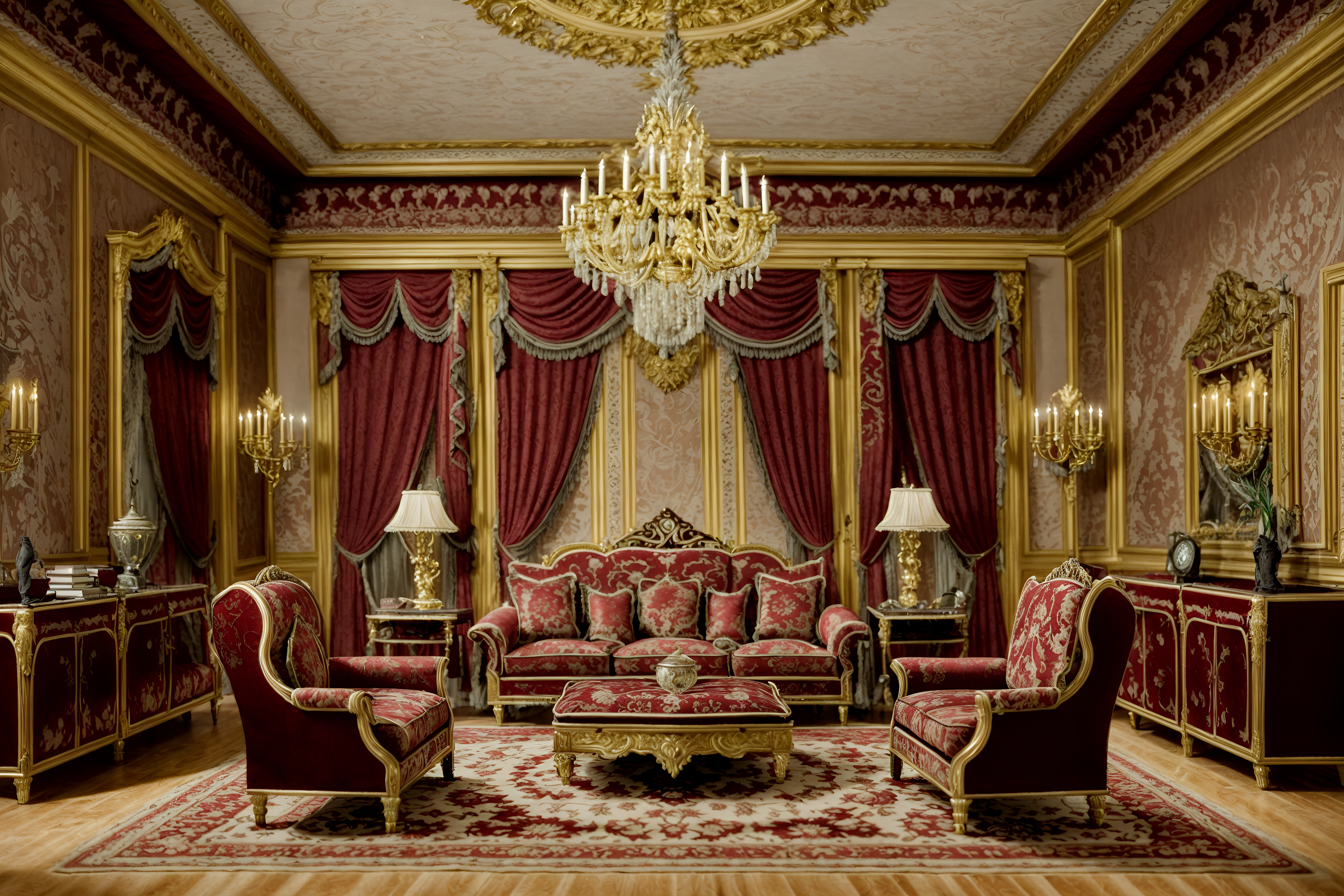 photo from pinterest of baroque-style interior designed (living room interior) with rug and chairs and electric lamps and furniture and televisions and occasional tables and sofa and plant. . with grandeur and luxurious floral and damask fabrics and tension and elaborate ornamentation and drama and opulent and colossal furniture and heavy moldings and emotional exuberance. . cinematic photo, highly detailed, cinematic lighting, ultra-detailed, ultrarealistic, photorealism, 8k. trending on pinterest. baroque interior design style. masterpiece, cinematic light, ultrarealistic+, photorealistic+, 8k, raw photo, realistic, sharp focus on eyes, (symmetrical eyes), (intact eyes), hyperrealistic, highest quality, best quality, , highly detailed, masterpiece, best quality, extremely detailed 8k wallpaper, masterpiece, best quality, ultra-detailed, best shadow, detailed background, detailed face, detailed eyes, high contrast, best illumination, detailed face, dulux, caustic, dynamic angle, detailed glow. dramatic lighting. highly detailed, insanely detailed hair, symmetrical, intricate details, professionally retouched, 8k high definition. strong bokeh. award winning photo.