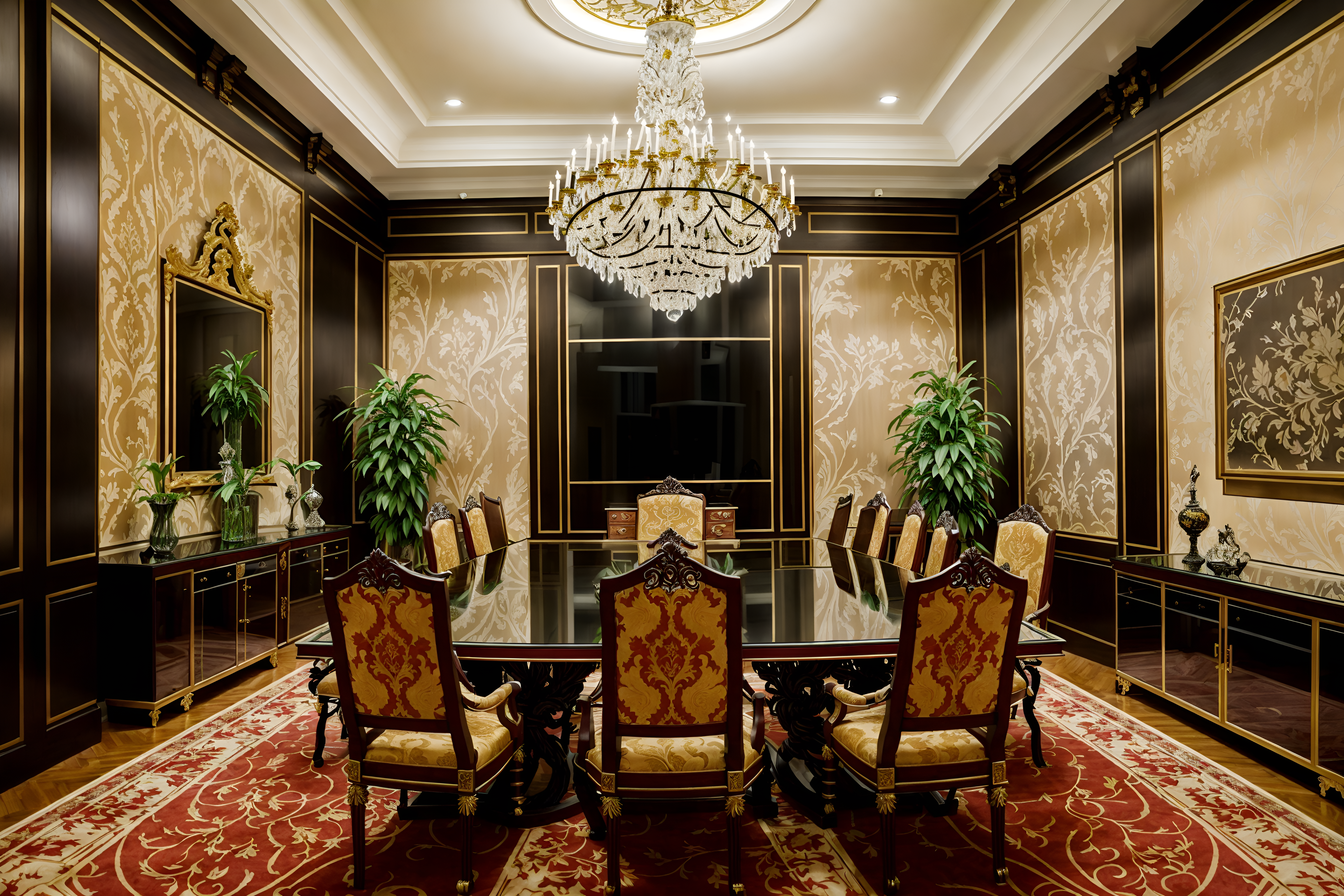 photo from pinterest of baroque-style interior designed (meeting room interior) with glass walls and boardroom table and cabinets and painting or photo on wall and vase and office chairs and plant and glass doors. . with dynamism and sensuous richness and heavy moldings and twisted columns and opulent and colossal furniture and luxurious floral and damask fabrics and crystal and glass accents and emotional exuberance. . cinematic photo, highly detailed, cinematic lighting, ultra-detailed, ultrarealistic, photorealism, 8k. trending on pinterest. baroque interior design style. masterpiece, cinematic light, ultrarealistic+, photorealistic+, 8k, raw photo, realistic, sharp focus on eyes, (symmetrical eyes), (intact eyes), hyperrealistic, highest quality, best quality, , highly detailed, masterpiece, best quality, extremely detailed 8k wallpaper, masterpiece, best quality, ultra-detailed, best shadow, detailed background, detailed face, detailed eyes, high contrast, best illumination, detailed face, dulux, caustic, dynamic angle, detailed glow. dramatic lighting. highly detailed, insanely detailed hair, symmetrical, intricate details, professionally retouched, 8k high definition. strong bokeh. award winning photo.