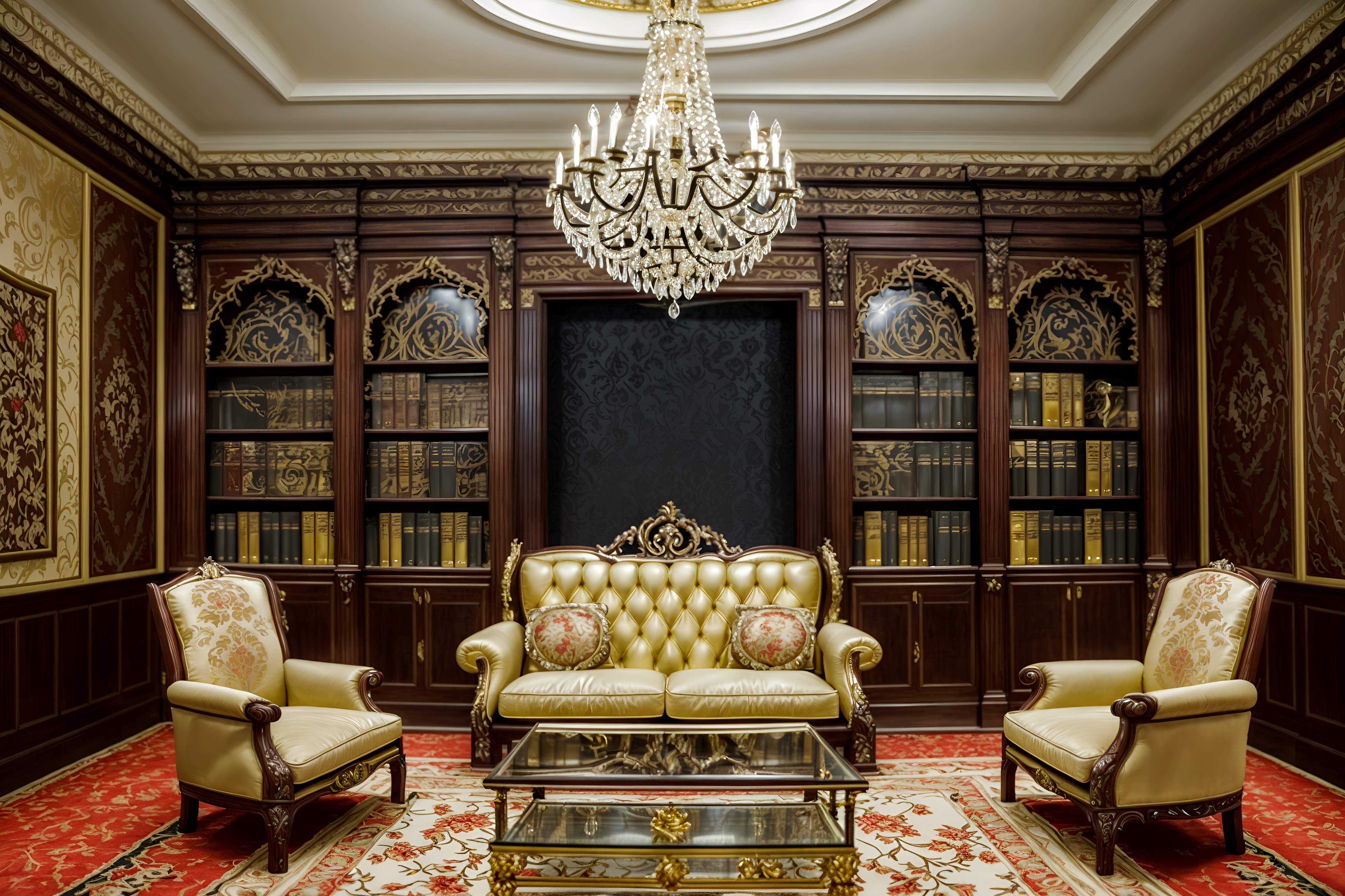 photo from pinterest of baroque-style interior designed (study room interior) with lounge chair and office chair and bookshelves and desk lamp and plant and cabinets and writing desk and lounge chair. . with sensuous richness and grandeur and crystal and glass accents and luxurious floral and damask fabrics and drama and intricate carvings and ornaments and expensive and plush flooring and movement. . cinematic photo, highly detailed, cinematic lighting, ultra-detailed, ultrarealistic, photorealism, 8k. trending on pinterest. baroque interior design style. masterpiece, cinematic light, ultrarealistic+, photorealistic+, 8k, raw photo, realistic, sharp focus on eyes, (symmetrical eyes), (intact eyes), hyperrealistic, highest quality, best quality, , highly detailed, masterpiece, best quality, extremely detailed 8k wallpaper, masterpiece, best quality, ultra-detailed, best shadow, detailed background, detailed face, detailed eyes, high contrast, best illumination, detailed face, dulux, caustic, dynamic angle, detailed glow. dramatic lighting. highly detailed, insanely detailed hair, symmetrical, intricate details, professionally retouched, 8k high definition. strong bokeh. award winning photo.