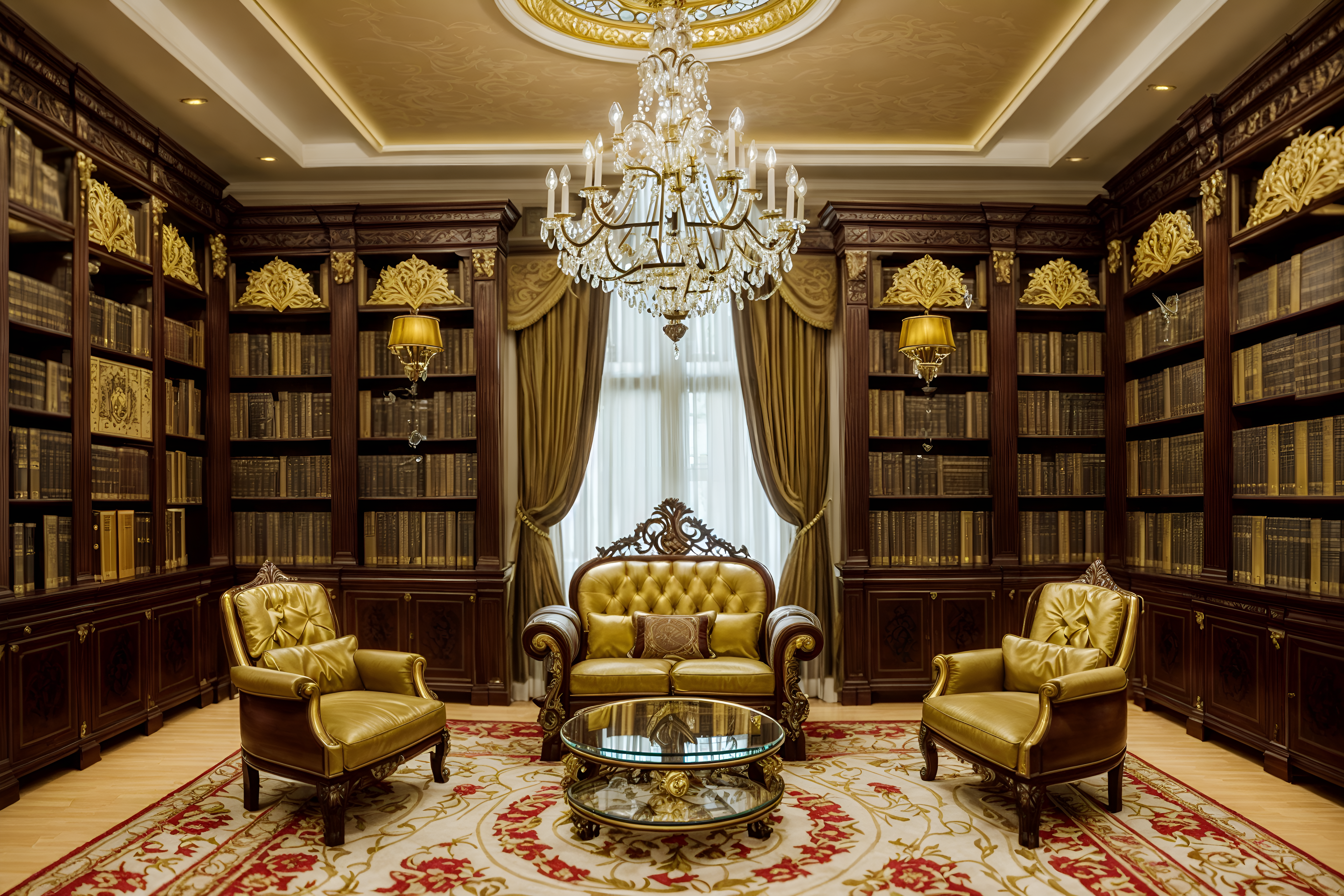 photo from pinterest of baroque-style interior designed (study room interior) with lounge chair and office chair and bookshelves and desk lamp and plant and cabinets and writing desk and lounge chair. . with sensuous richness and grandeur and crystal and glass accents and luxurious floral and damask fabrics and drama and intricate carvings and ornaments and expensive and plush flooring and movement. . cinematic photo, highly detailed, cinematic lighting, ultra-detailed, ultrarealistic, photorealism, 8k. trending on pinterest. baroque interior design style. masterpiece, cinematic light, ultrarealistic+, photorealistic+, 8k, raw photo, realistic, sharp focus on eyes, (symmetrical eyes), (intact eyes), hyperrealistic, highest quality, best quality, , highly detailed, masterpiece, best quality, extremely detailed 8k wallpaper, masterpiece, best quality, ultra-detailed, best shadow, detailed background, detailed face, detailed eyes, high contrast, best illumination, detailed face, dulux, caustic, dynamic angle, detailed glow. dramatic lighting. highly detailed, insanely detailed hair, symmetrical, intricate details, professionally retouched, 8k high definition. strong bokeh. award winning photo.