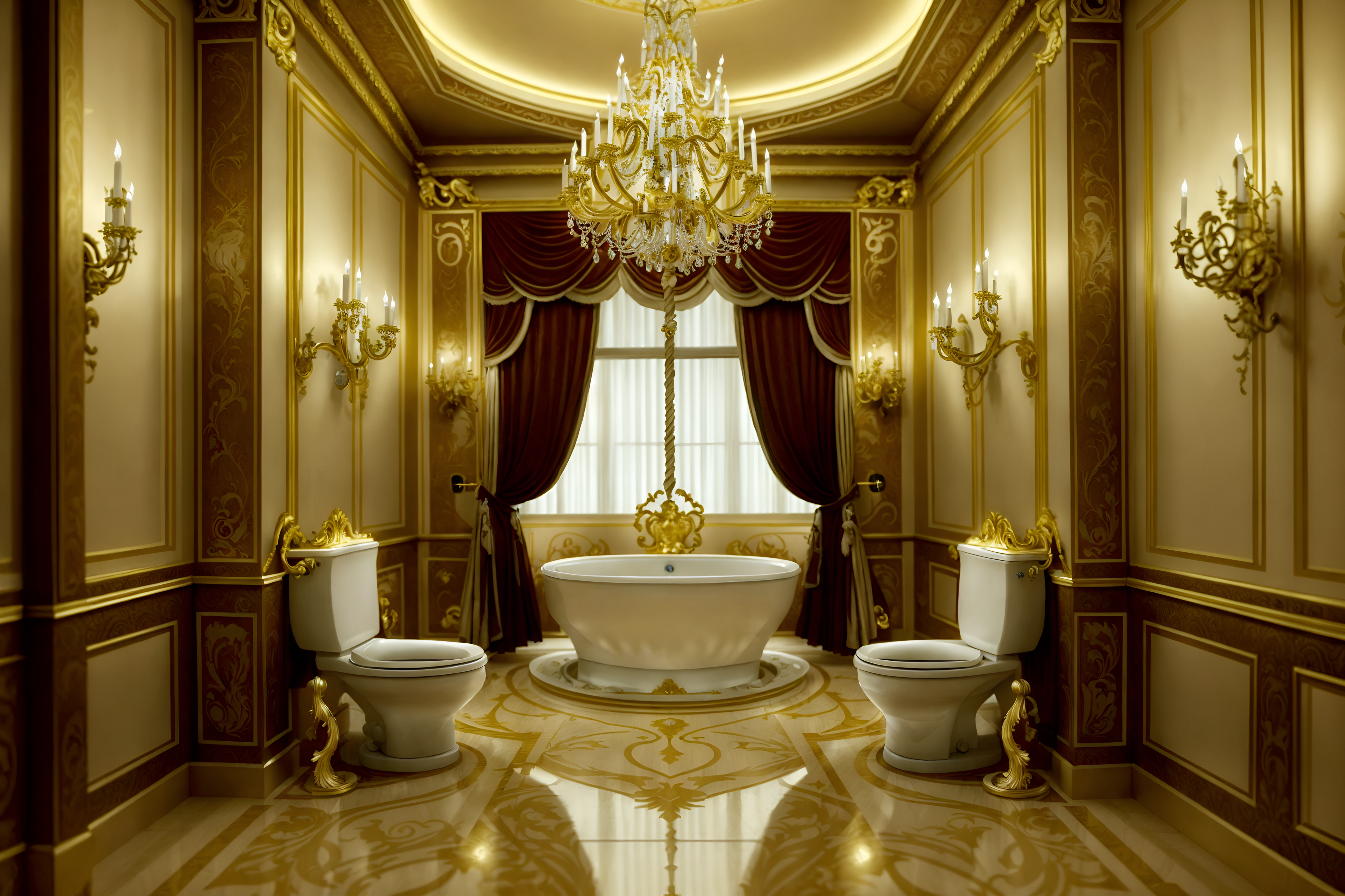 photo from pinterest of baroque-style interior designed (toilet interior) with toilet paper hanger and sink with tap and toilet with toilet seat up and toilet paper hanger. . with opulent and colossal furniture and emotional exuberance and pedestal feet and expensive and plush flooring and grandeur and tension and dynamism and twisted columns. . cinematic photo, highly detailed, cinematic lighting, ultra-detailed, ultrarealistic, photorealism, 8k. trending on pinterest. baroque interior design style. masterpiece, cinematic light, ultrarealistic+, photorealistic+, 8k, raw photo, realistic, sharp focus on eyes, (symmetrical eyes), (intact eyes), hyperrealistic, highest quality, best quality, , highly detailed, masterpiece, best quality, extremely detailed 8k wallpaper, masterpiece, best quality, ultra-detailed, best shadow, detailed background, detailed face, detailed eyes, high contrast, best illumination, detailed face, dulux, caustic, dynamic angle, detailed glow. dramatic lighting. highly detailed, insanely detailed hair, symmetrical, intricate details, professionally retouched, 8k high definition. strong bokeh. award winning photo.