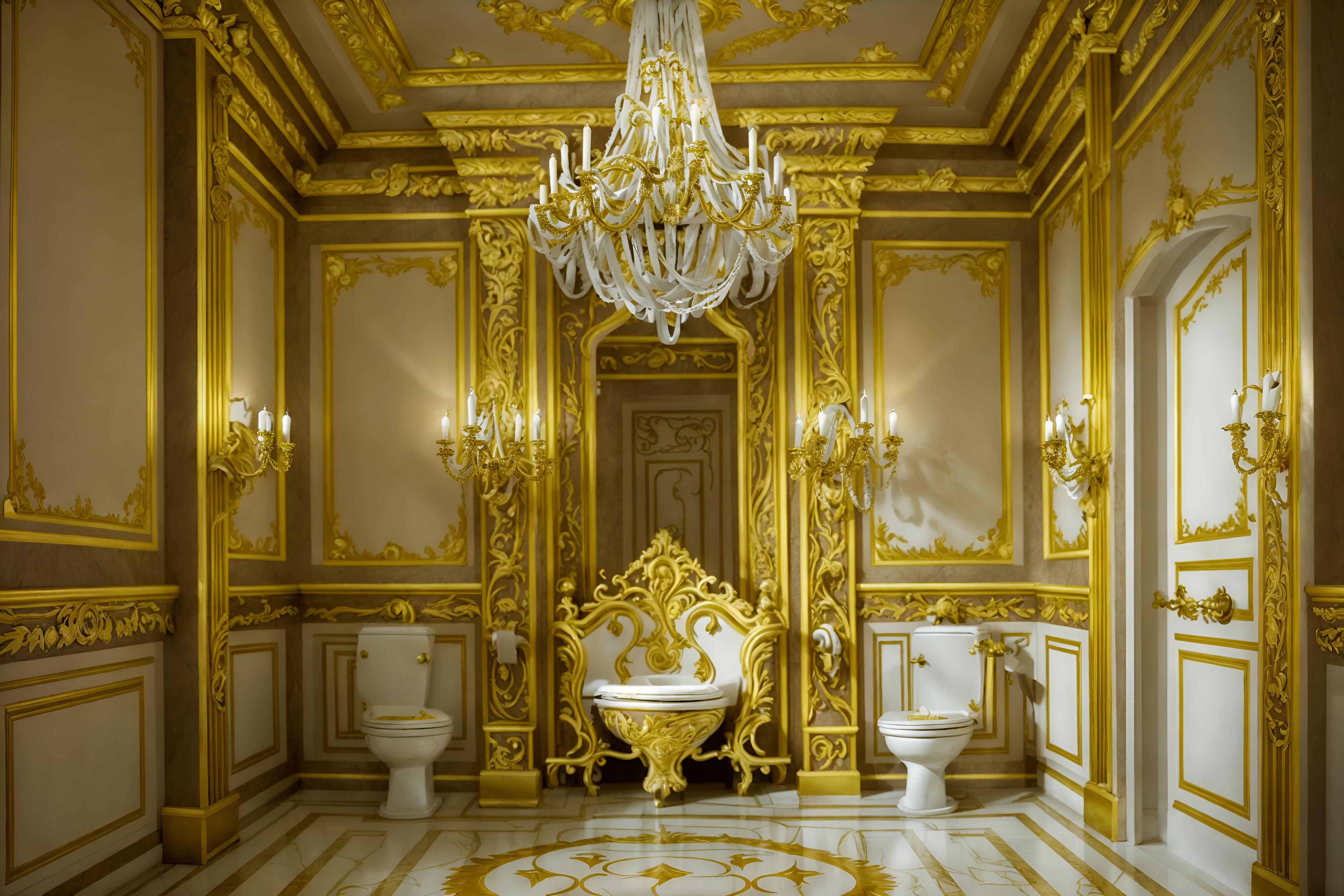 photo from pinterest of baroque-style interior designed (toilet interior) with toilet paper hanger and sink with tap and toilet with toilet seat up and toilet paper hanger. . with opulent and colossal furniture and emotional exuberance and pedestal feet and expensive and plush flooring and grandeur and tension and dynamism and twisted columns. . cinematic photo, highly detailed, cinematic lighting, ultra-detailed, ultrarealistic, photorealism, 8k. trending on pinterest. baroque interior design style. masterpiece, cinematic light, ultrarealistic+, photorealistic+, 8k, raw photo, realistic, sharp focus on eyes, (symmetrical eyes), (intact eyes), hyperrealistic, highest quality, best quality, , highly detailed, masterpiece, best quality, extremely detailed 8k wallpaper, masterpiece, best quality, ultra-detailed, best shadow, detailed background, detailed face, detailed eyes, high contrast, best illumination, detailed face, dulux, caustic, dynamic angle, detailed glow. dramatic lighting. highly detailed, insanely detailed hair, symmetrical, intricate details, professionally retouched, 8k high definition. strong bokeh. award winning photo.
