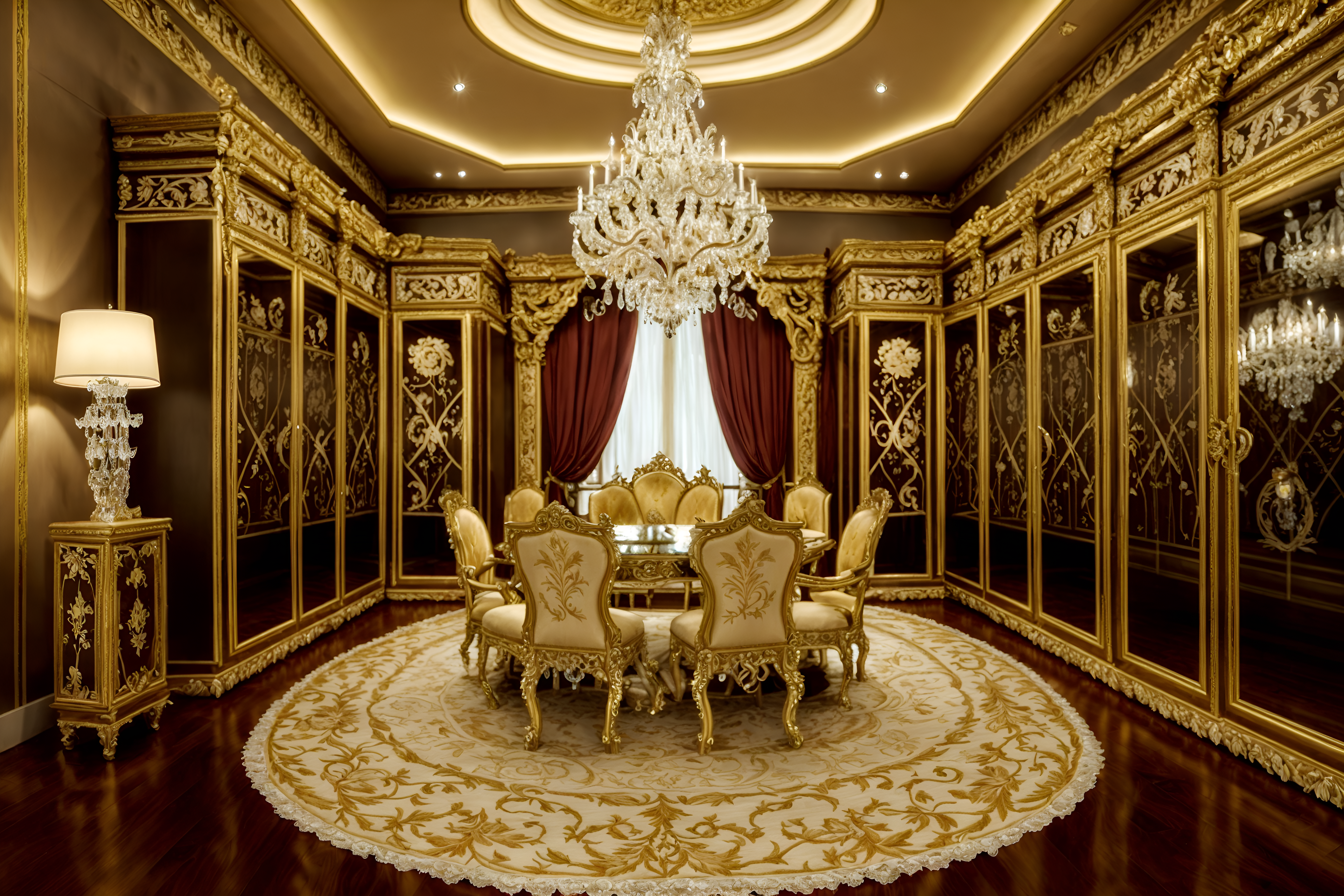 photo from pinterest of baroque-style interior designed (walk in closet interior) . with crystal and glass accents and heavy moldings and luxurious floral and damask fabrics and grandeur and intricate carvings and ornaments and opulent and colossal furniture and pedestal feet and movement. . cinematic photo, highly detailed, cinematic lighting, ultra-detailed, ultrarealistic, photorealism, 8k. trending on pinterest. baroque interior design style. masterpiece, cinematic light, ultrarealistic+, photorealistic+, 8k, raw photo, realistic, sharp focus on eyes, (symmetrical eyes), (intact eyes), hyperrealistic, highest quality, best quality, , highly detailed, masterpiece, best quality, extremely detailed 8k wallpaper, masterpiece, best quality, ultra-detailed, best shadow, detailed background, detailed face, detailed eyes, high contrast, best illumination, detailed face, dulux, caustic, dynamic angle, detailed glow. dramatic lighting. highly detailed, insanely detailed hair, symmetrical, intricate details, professionally retouched, 8k high definition. strong bokeh. award winning photo.
