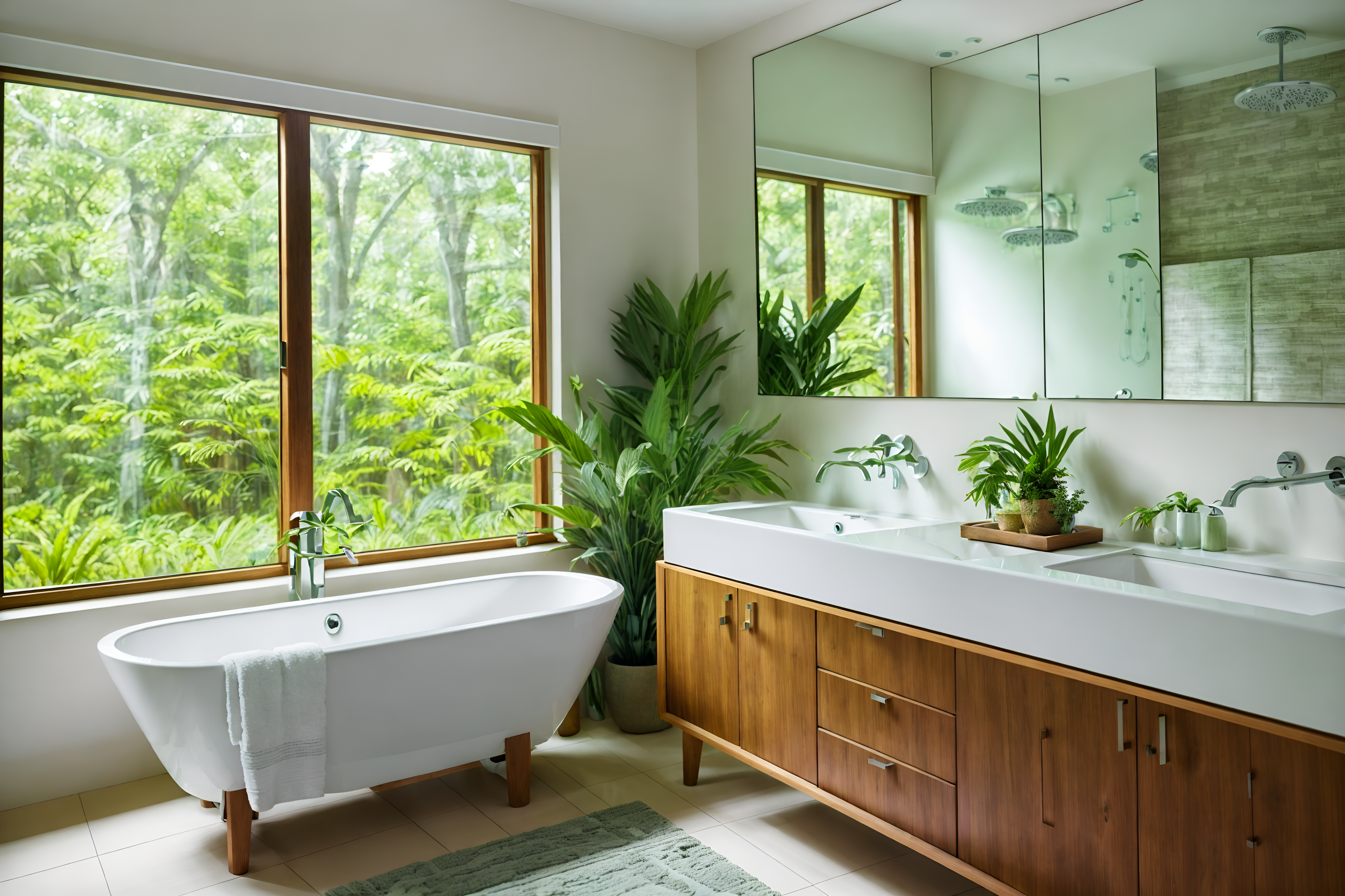 photo from pinterest of biophilic-style interior designed (bathroom interior) with bathroom cabinet and bath rail and mirror and toilet seat and bath towel and plant and bathroom sink with faucet and shower. . with features of the natural world and linen materials and images of animals and natural environment and earthy colors and natural elements and natural shapes and forms and calming style. . cinematic photo, highly detailed, cinematic lighting, ultra-detailed, ultrarealistic, photorealism, 8k. trending on pinterest. biophilic interior design style. masterpiece, cinematic light, ultrarealistic+, photorealistic+, 8k, raw photo, realistic, sharp focus on eyes, (symmetrical eyes), (intact eyes), hyperrealistic, highest quality, best quality, , highly detailed, masterpiece, best quality, extremely detailed 8k wallpaper, masterpiece, best quality, ultra-detailed, best shadow, detailed background, detailed face, detailed eyes, high contrast, best illumination, detailed face, dulux, caustic, dynamic angle, detailed glow. dramatic lighting. highly detailed, insanely detailed hair, symmetrical, intricate details, professionally retouched, 8k high definition. strong bokeh. award winning photo.