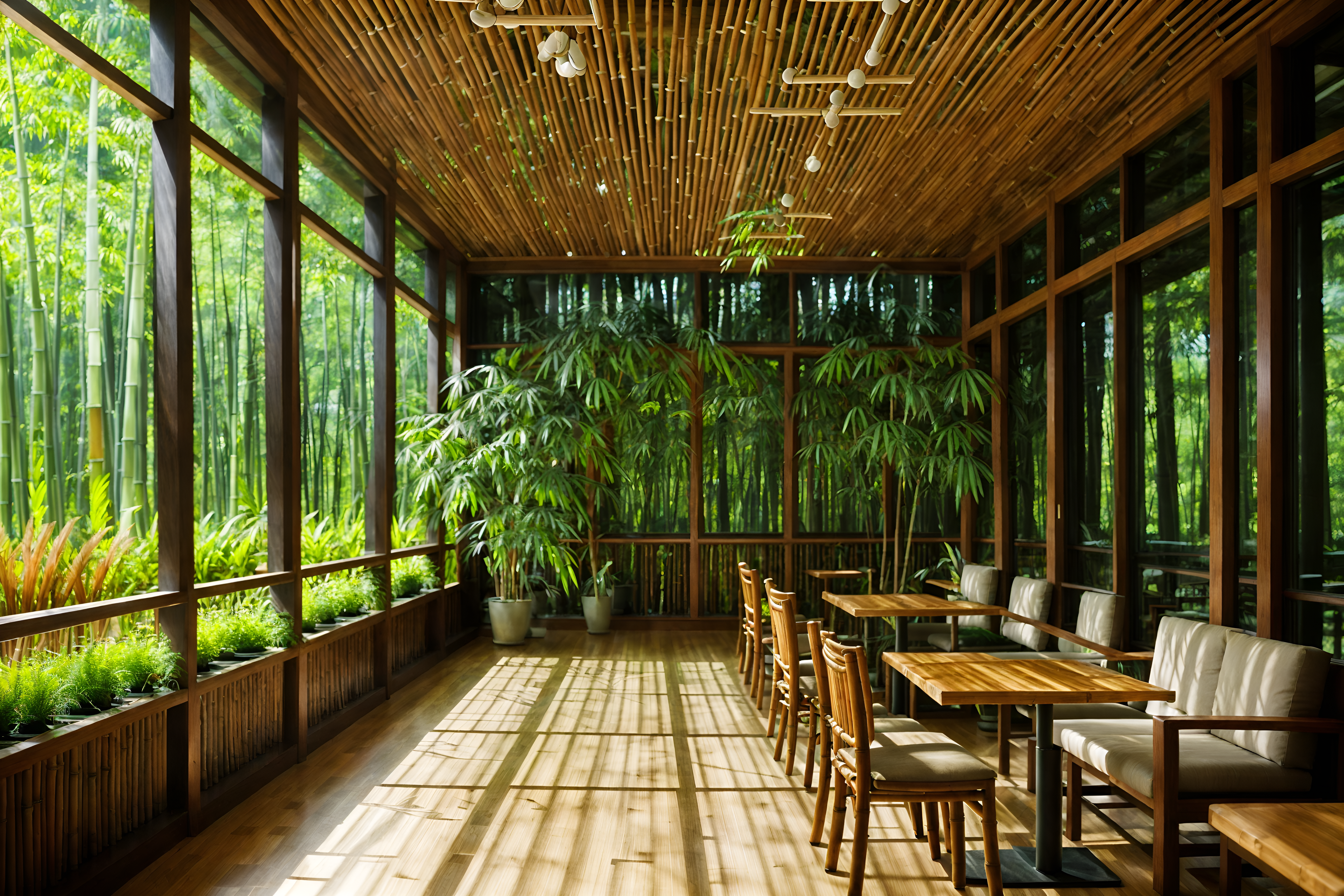 photo from pinterest of biophilic-style interior designed (coffee shop interior) . with features of nature and natural patterns and sunlight and bamboo materials and natural shapes and forms and fresh air and natural environment and plants. . cinematic photo, highly detailed, cinematic lighting, ultra-detailed, ultrarealistic, photorealism, 8k. trending on pinterest. biophilic interior design style. masterpiece, cinematic light, ultrarealistic+, photorealistic+, 8k, raw photo, realistic, sharp focus on eyes, (symmetrical eyes), (intact eyes), hyperrealistic, highest quality, best quality, , highly detailed, masterpiece, best quality, extremely detailed 8k wallpaper, masterpiece, best quality, ultra-detailed, best shadow, detailed background, detailed face, detailed eyes, high contrast, best illumination, detailed face, dulux, caustic, dynamic angle, detailed glow. dramatic lighting. highly detailed, insanely detailed hair, symmetrical, intricate details, professionally retouched, 8k high definition. strong bokeh. award winning photo.