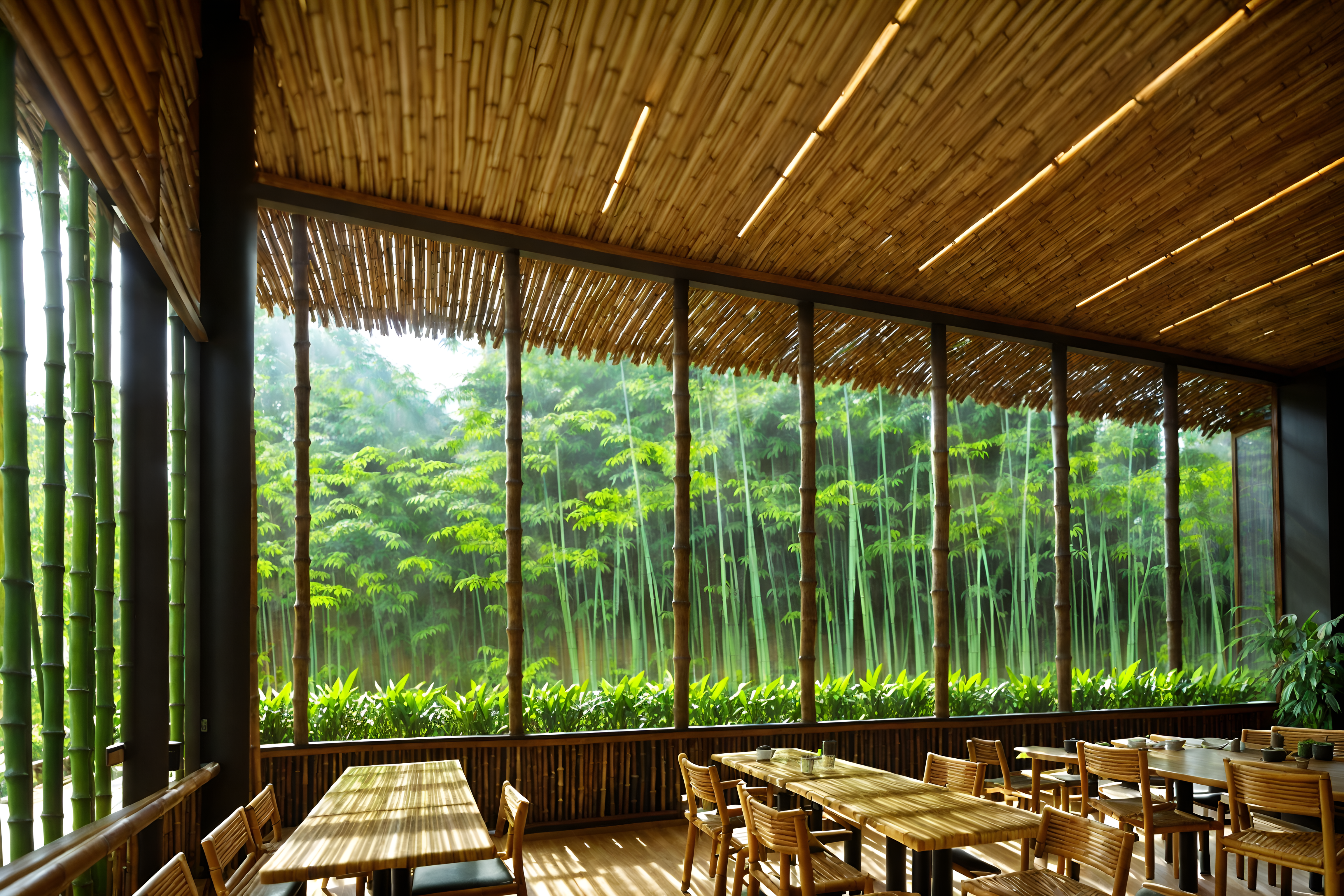 photo from pinterest of biophilic-style interior designed (coffee shop interior) . with features of nature and natural patterns and sunlight and bamboo materials and natural shapes and forms and fresh air and natural environment and plants. . cinematic photo, highly detailed, cinematic lighting, ultra-detailed, ultrarealistic, photorealism, 8k. trending on pinterest. biophilic interior design style. masterpiece, cinematic light, ultrarealistic+, photorealistic+, 8k, raw photo, realistic, sharp focus on eyes, (symmetrical eyes), (intact eyes), hyperrealistic, highest quality, best quality, , highly detailed, masterpiece, best quality, extremely detailed 8k wallpaper, masterpiece, best quality, ultra-detailed, best shadow, detailed background, detailed face, detailed eyes, high contrast, best illumination, detailed face, dulux, caustic, dynamic angle, detailed glow. dramatic lighting. highly detailed, insanely detailed hair, symmetrical, intricate details, professionally retouched, 8k high definition. strong bokeh. award winning photo.