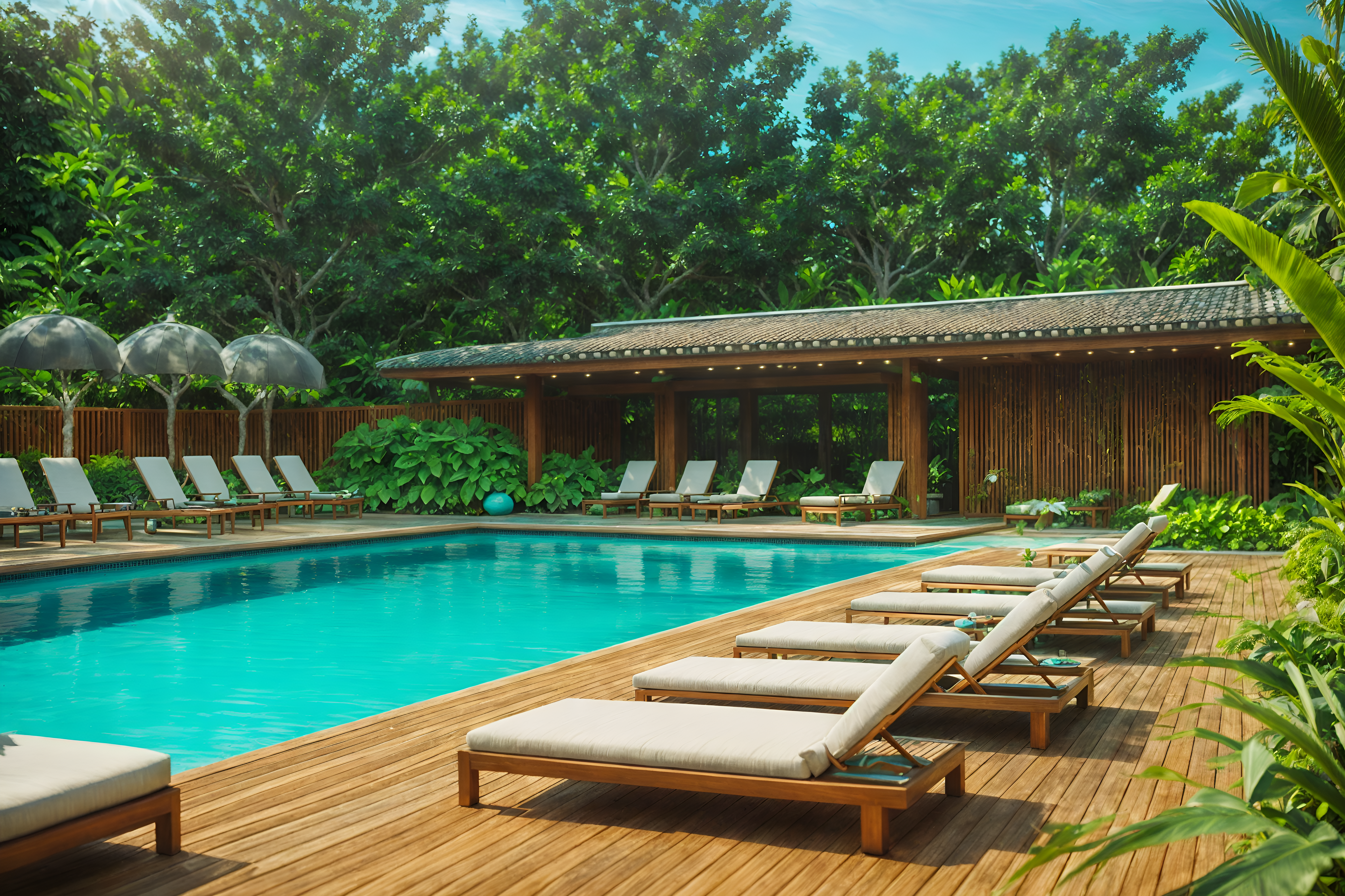 photo from pinterest of biophilic-style designed (outdoor pool area ) with pool lounge chairs and pool and pool lights and pool lounge chairs. . with natural patterns and environmental features and natural shapes and forms and natural elements and plants and sunlight and linen materials and wood materials. . cinematic photo, highly detailed, cinematic lighting, ultra-detailed, ultrarealistic, photorealism, 8k. trending on pinterest. biophilic design style. masterpiece, cinematic light, ultrarealistic+, photorealistic+, 8k, raw photo, realistic, sharp focus on eyes, (symmetrical eyes), (intact eyes), hyperrealistic, highest quality, best quality, , highly detailed, masterpiece, best quality, extremely detailed 8k wallpaper, masterpiece, best quality, ultra-detailed, best shadow, detailed background, detailed face, detailed eyes, high contrast, best illumination, detailed face, dulux, caustic, dynamic angle, detailed glow. dramatic lighting. highly detailed, insanely detailed hair, symmetrical, intricate details, professionally retouched, 8k high definition. strong bokeh. award winning photo.
