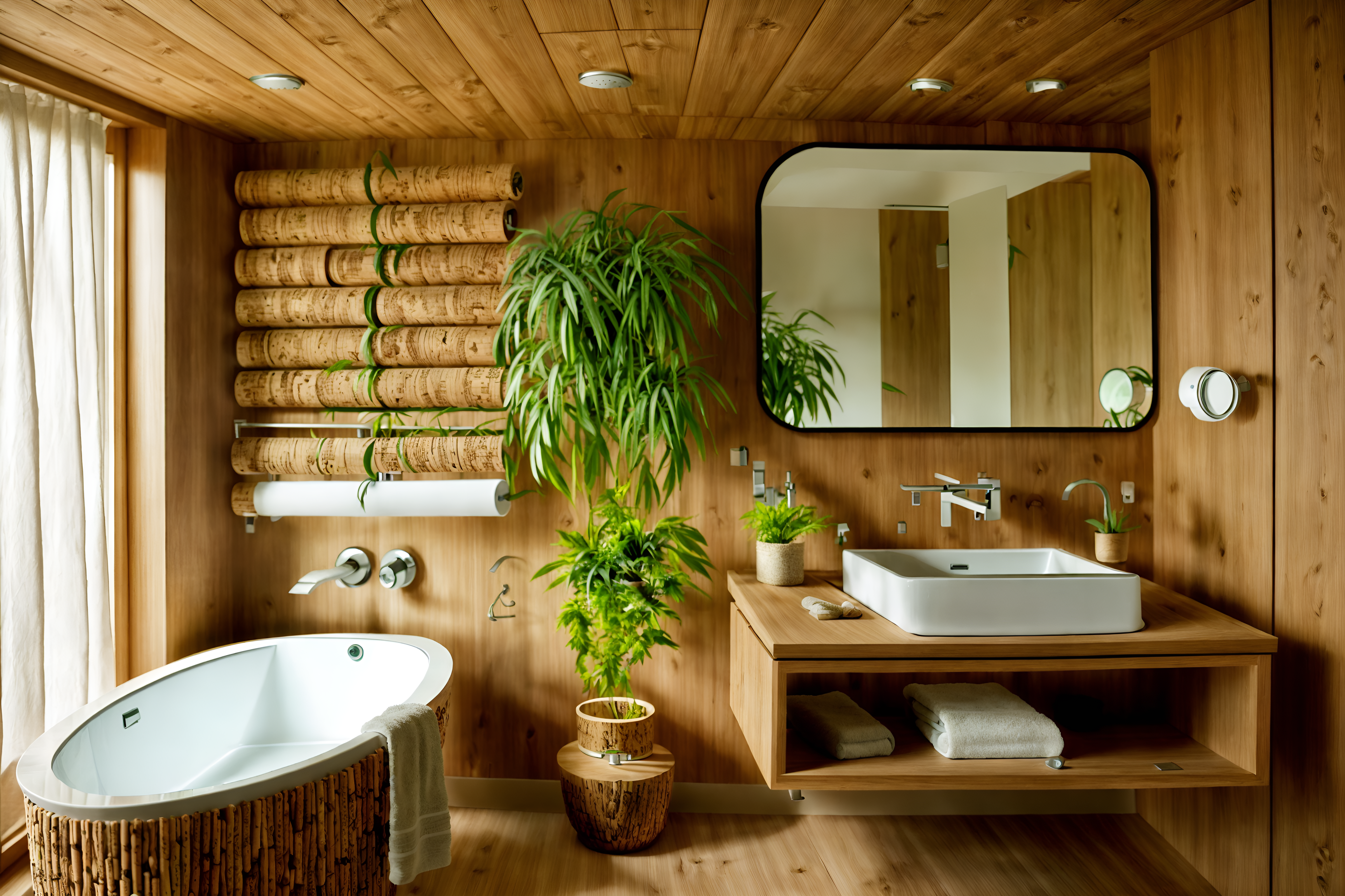 photo from pinterest of biophilic-style interior designed (hotel bathroom interior) with plant and waste basket and bathtub and bathroom cabinet and mirror and bath rail and toilet seat and shower. . with natural elements and wood materials and cork materials and linen materials and sunlight and natural shapes and forms and images of animals and natural environment. . cinematic photo, highly detailed, cinematic lighting, ultra-detailed, ultrarealistic, photorealism, 8k. trending on pinterest. biophilic interior design style. masterpiece, cinematic light, ultrarealistic+, photorealistic+, 8k, raw photo, realistic, sharp focus on eyes, (symmetrical eyes), (intact eyes), hyperrealistic, highest quality, best quality, , highly detailed, masterpiece, best quality, extremely detailed 8k wallpaper, masterpiece, best quality, ultra-detailed, best shadow, detailed background, detailed face, detailed eyes, high contrast, best illumination, detailed face, dulux, caustic, dynamic angle, detailed glow. dramatic lighting. highly detailed, insanely detailed hair, symmetrical, intricate details, professionally retouched, 8k high definition. strong bokeh. award winning photo.