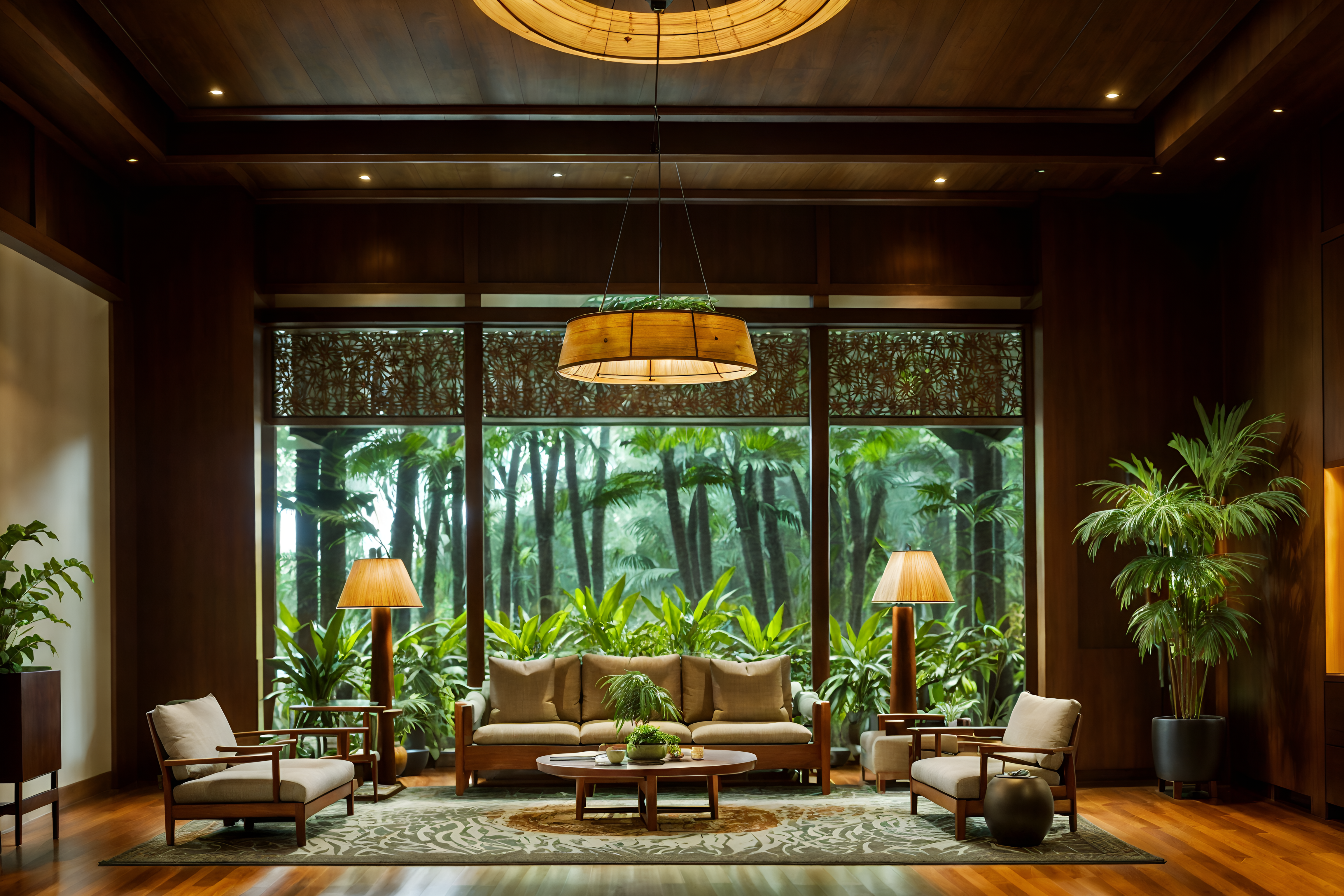photo from pinterest of biophilic-style interior designed (hotel lobby interior) with hanging lamps and lounge chairs and sofas and furniture and coffee tables and rug and plant and check in desk. . with natural patterns and features of nature and natural shapes and forms and plants and ceramic materials and wood materials and images of nature and calming style. . cinematic photo, highly detailed, cinematic lighting, ultra-detailed, ultrarealistic, photorealism, 8k. trending on pinterest. biophilic interior design style. masterpiece, cinematic light, ultrarealistic+, photorealistic+, 8k, raw photo, realistic, sharp focus on eyes, (symmetrical eyes), (intact eyes), hyperrealistic, highest quality, best quality, , highly detailed, masterpiece, best quality, extremely detailed 8k wallpaper, masterpiece, best quality, ultra-detailed, best shadow, detailed background, detailed face, detailed eyes, high contrast, best illumination, detailed face, dulux, caustic, dynamic angle, detailed glow. dramatic lighting. highly detailed, insanely detailed hair, symmetrical, intricate details, professionally retouched, 8k high definition. strong bokeh. award winning photo.