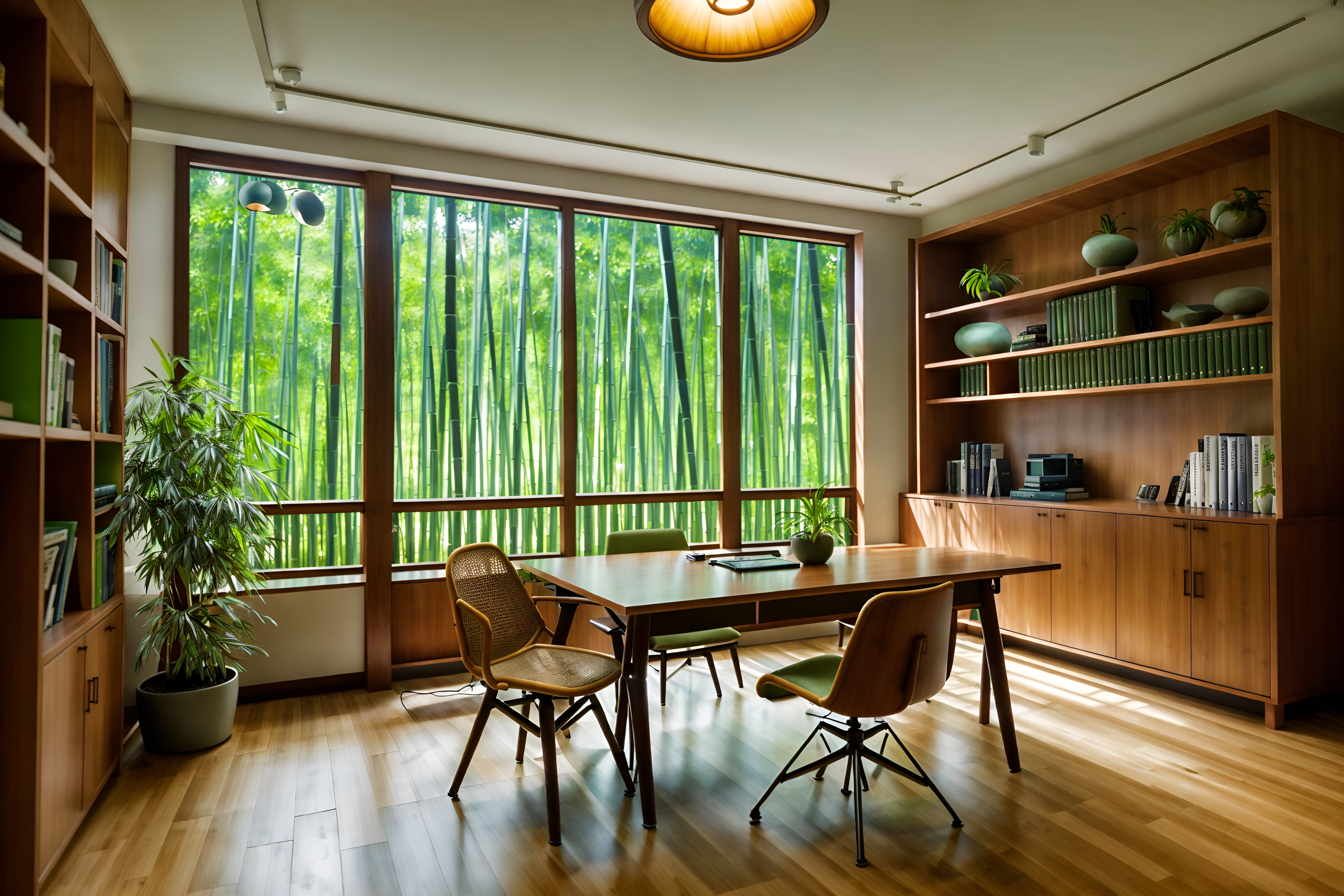 photo from pinterest of biophilic-style interior designed (study room interior) with lounge chair and plant and office chair and bookshelves and writing desk and desk lamp and cabinets and lounge chair. . with images of nature and features of nature and fresh air and bamboo materials and ceramic materials and natural shapes and forms and earthy colors and natural environment. . cinematic photo, highly detailed, cinematic lighting, ultra-detailed, ultrarealistic, photorealism, 8k. trending on pinterest. biophilic interior design style. masterpiece, cinematic light, ultrarealistic+, photorealistic+, 8k, raw photo, realistic, sharp focus on eyes, (symmetrical eyes), (intact eyes), hyperrealistic, highest quality, best quality, , highly detailed, masterpiece, best quality, extremely detailed 8k wallpaper, masterpiece, best quality, ultra-detailed, best shadow, detailed background, detailed face, detailed eyes, high contrast, best illumination, detailed face, dulux, caustic, dynamic angle, detailed glow. dramatic lighting. highly detailed, insanely detailed hair, symmetrical, intricate details, professionally retouched, 8k high definition. strong bokeh. award winning photo.