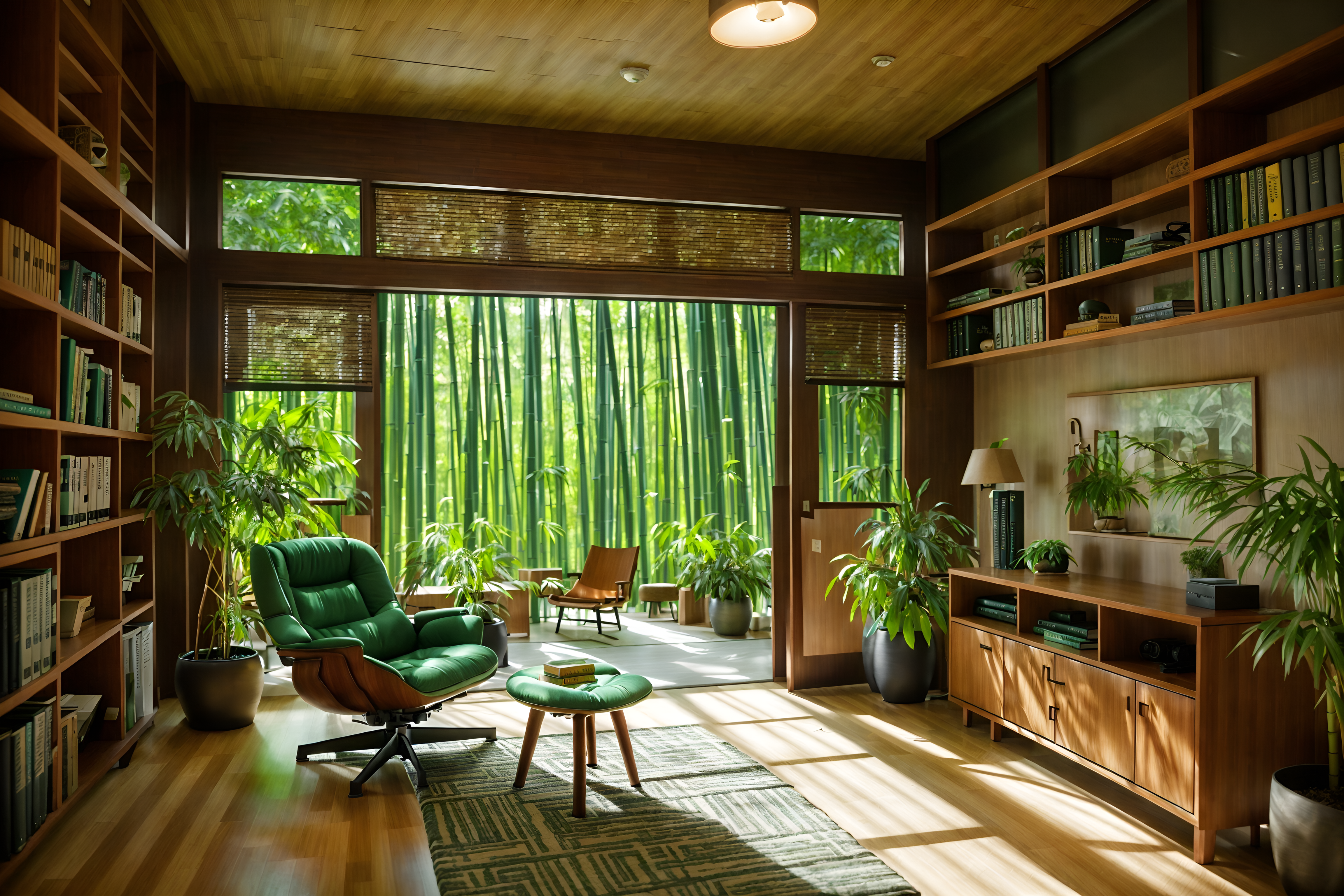 photo from pinterest of biophilic-style interior designed (study room interior) with lounge chair and plant and office chair and bookshelves and writing desk and desk lamp and cabinets and lounge chair. . with images of nature and features of nature and fresh air and bamboo materials and ceramic materials and natural shapes and forms and earthy colors and natural environment. . cinematic photo, highly detailed, cinematic lighting, ultra-detailed, ultrarealistic, photorealism, 8k. trending on pinterest. biophilic interior design style. masterpiece, cinematic light, ultrarealistic+, photorealistic+, 8k, raw photo, realistic, sharp focus on eyes, (symmetrical eyes), (intact eyes), hyperrealistic, highest quality, best quality, , highly detailed, masterpiece, best quality, extremely detailed 8k wallpaper, masterpiece, best quality, ultra-detailed, best shadow, detailed background, detailed face, detailed eyes, high contrast, best illumination, detailed face, dulux, caustic, dynamic angle, detailed glow. dramatic lighting. highly detailed, insanely detailed hair, symmetrical, intricate details, professionally retouched, 8k high definition. strong bokeh. award winning photo.