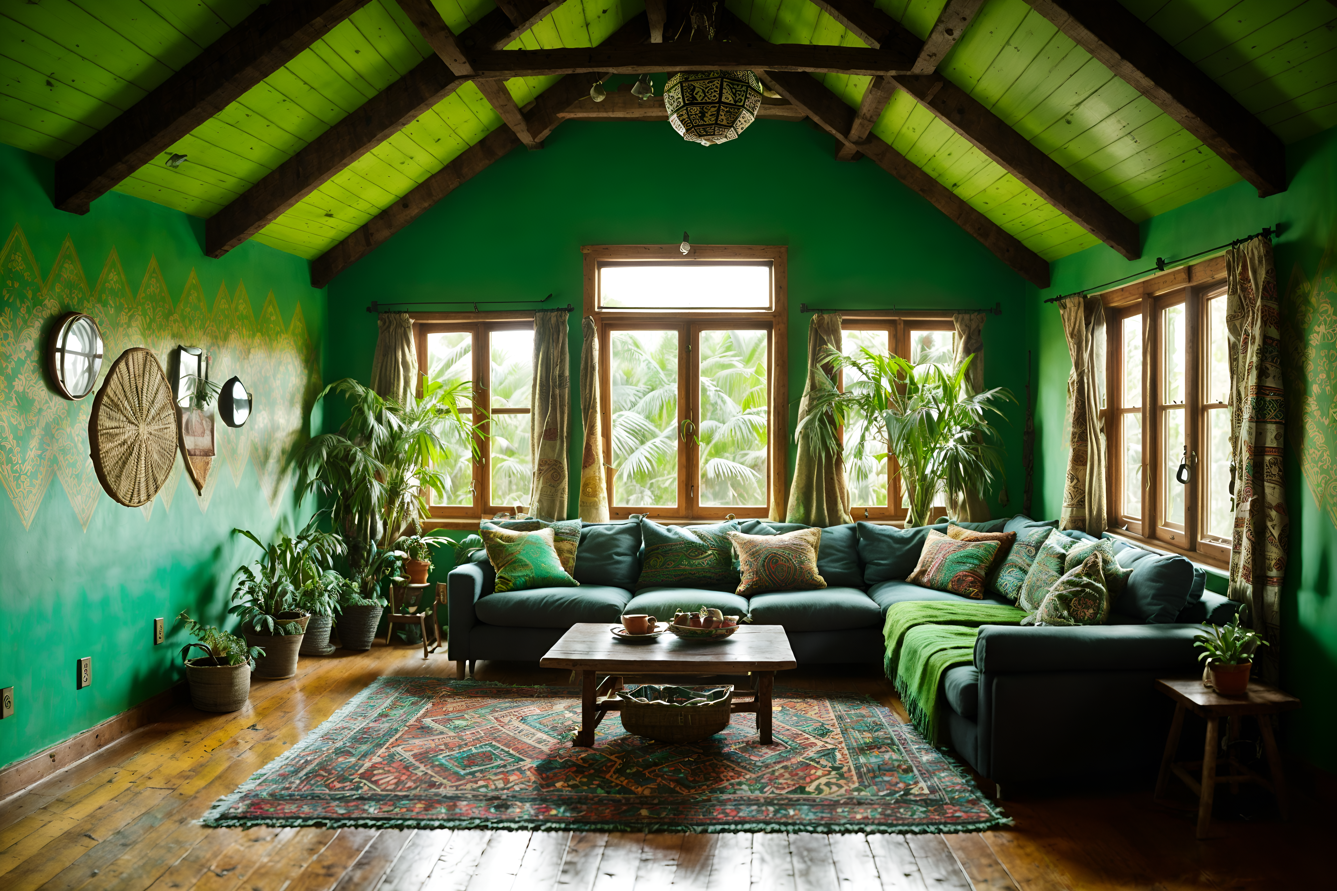 photo from pinterest of bohemian-style interior designed (attic interior) . with carefree layers of pattern, texture, and color and lush green nature and bold colors and a lack of structure and woods and playful colors and playful textures and playful patterns. . cinematic photo, highly detailed, cinematic lighting, ultra-detailed, ultrarealistic, photorealism, 8k. trending on pinterest. bohemian interior design style. masterpiece, cinematic light, ultrarealistic+, photorealistic+, 8k, raw photo, realistic, sharp focus on eyes, (symmetrical eyes), (intact eyes), hyperrealistic, highest quality, best quality, , highly detailed, masterpiece, best quality, extremely detailed 8k wallpaper, masterpiece, best quality, ultra-detailed, best shadow, detailed background, detailed face, detailed eyes, high contrast, best illumination, detailed face, dulux, caustic, dynamic angle, detailed glow. dramatic lighting. highly detailed, insanely detailed hair, symmetrical, intricate details, professionally retouched, 8k high definition. strong bokeh. award winning photo.