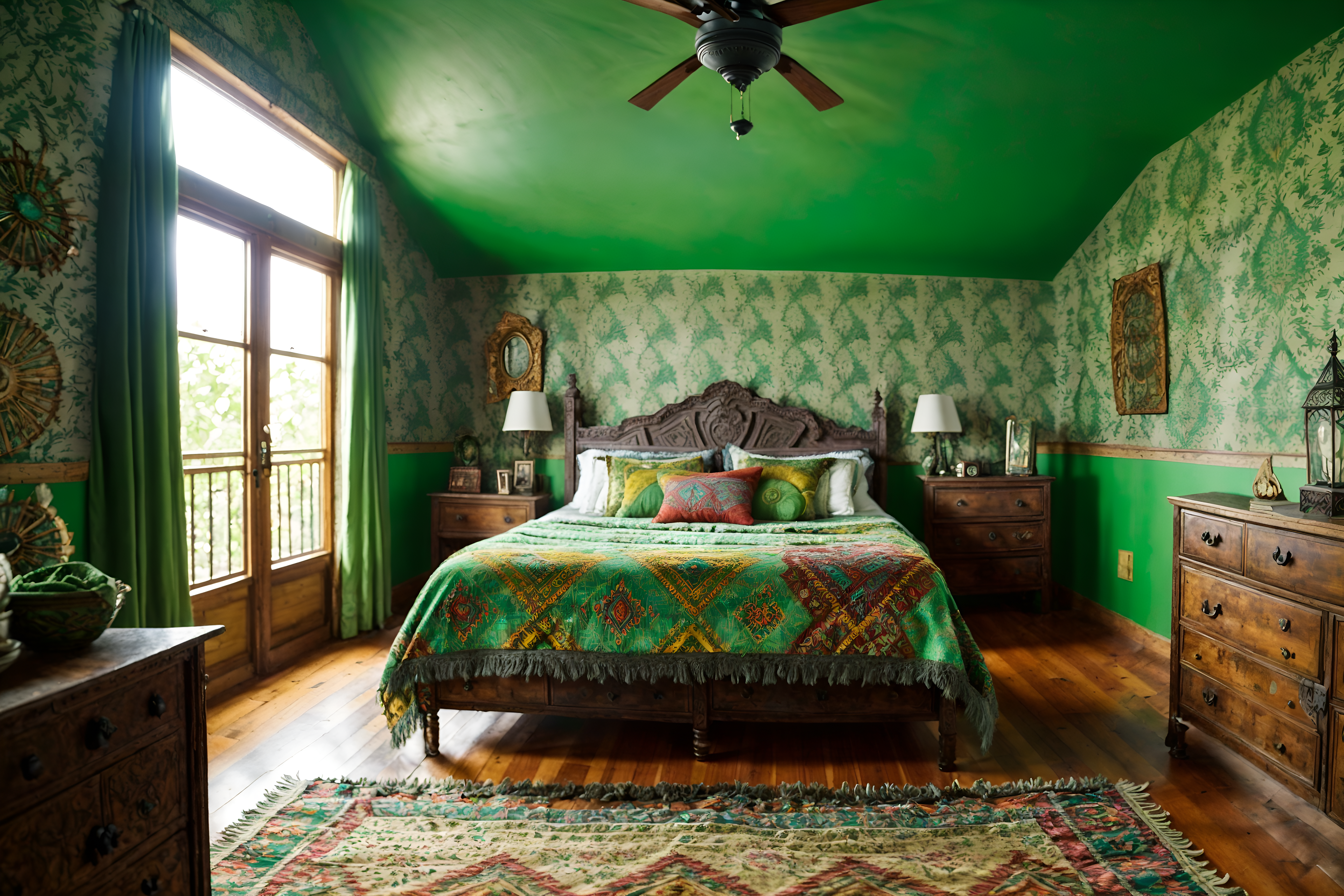 photo from pinterest of bohemian-style interior designed (attic interior) . with carefree layers of pattern, texture, and color and lush green nature and bold colors and a lack of structure and woods and playful colors and playful textures and playful patterns. . cinematic photo, highly detailed, cinematic lighting, ultra-detailed, ultrarealistic, photorealism, 8k. trending on pinterest. bohemian interior design style. masterpiece, cinematic light, ultrarealistic+, photorealistic+, 8k, raw photo, realistic, sharp focus on eyes, (symmetrical eyes), (intact eyes), hyperrealistic, highest quality, best quality, , highly detailed, masterpiece, best quality, extremely detailed 8k wallpaper, masterpiece, best quality, ultra-detailed, best shadow, detailed background, detailed face, detailed eyes, high contrast, best illumination, detailed face, dulux, caustic, dynamic angle, detailed glow. dramatic lighting. highly detailed, insanely detailed hair, symmetrical, intricate details, professionally retouched, 8k high definition. strong bokeh. award winning photo.