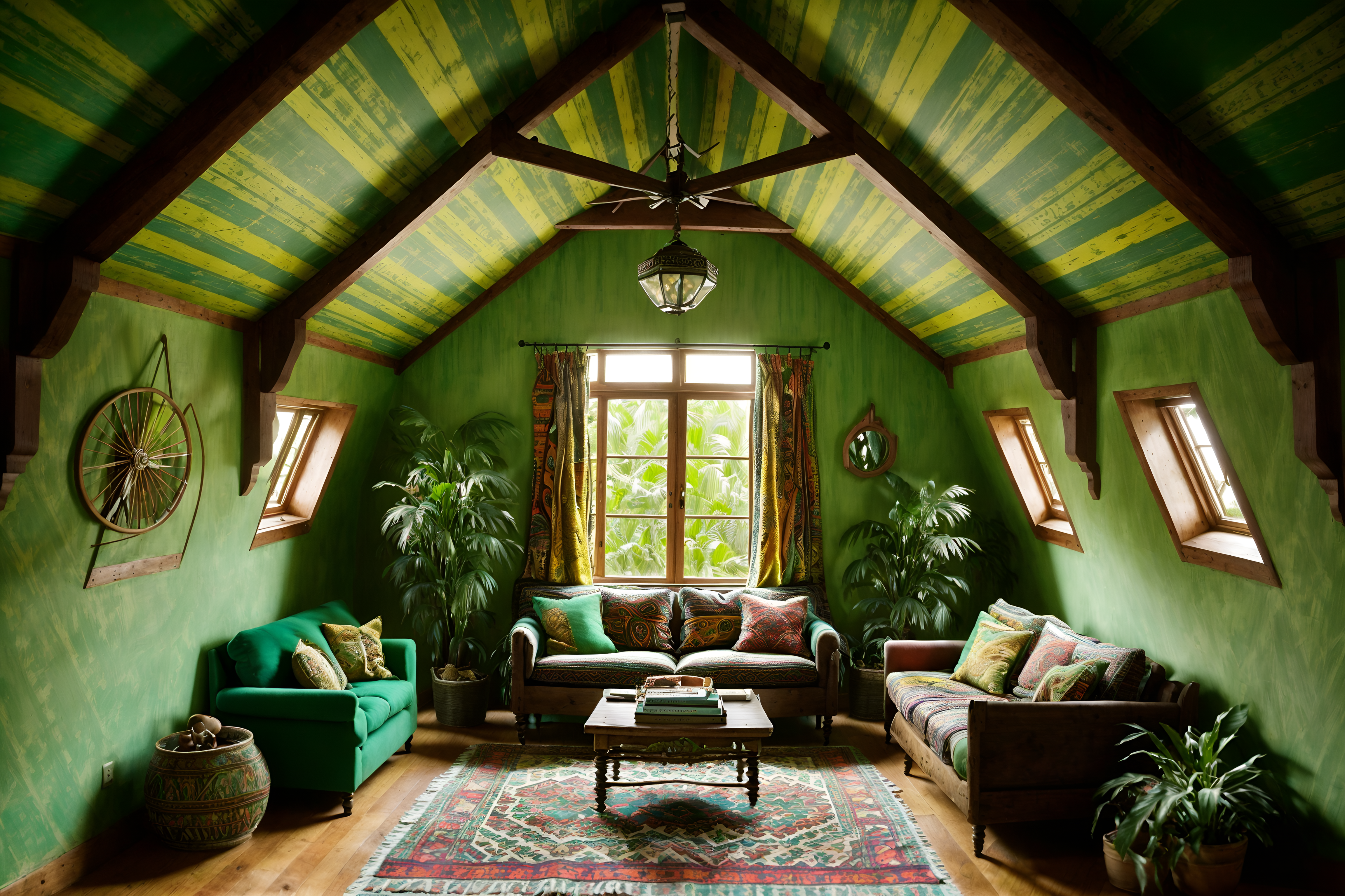 photo from pinterest of bohemian-style interior designed (attic interior) . with carefree layers of pattern, texture, and color and lush green nature and bold colors and a lack of structure and woods and playful colors and playful textures and playful patterns. . cinematic photo, highly detailed, cinematic lighting, ultra-detailed, ultrarealistic, photorealism, 8k. trending on pinterest. bohemian interior design style. masterpiece, cinematic light, ultrarealistic+, photorealistic+, 8k, raw photo, realistic, sharp focus on eyes, (symmetrical eyes), (intact eyes), hyperrealistic, highest quality, best quality, , highly detailed, masterpiece, best quality, extremely detailed 8k wallpaper, masterpiece, best quality, ultra-detailed, best shadow, detailed background, detailed face, detailed eyes, high contrast, best illumination, detailed face, dulux, caustic, dynamic angle, detailed glow. dramatic lighting. highly detailed, insanely detailed hair, symmetrical, intricate details, professionally retouched, 8k high definition. strong bokeh. award winning photo.